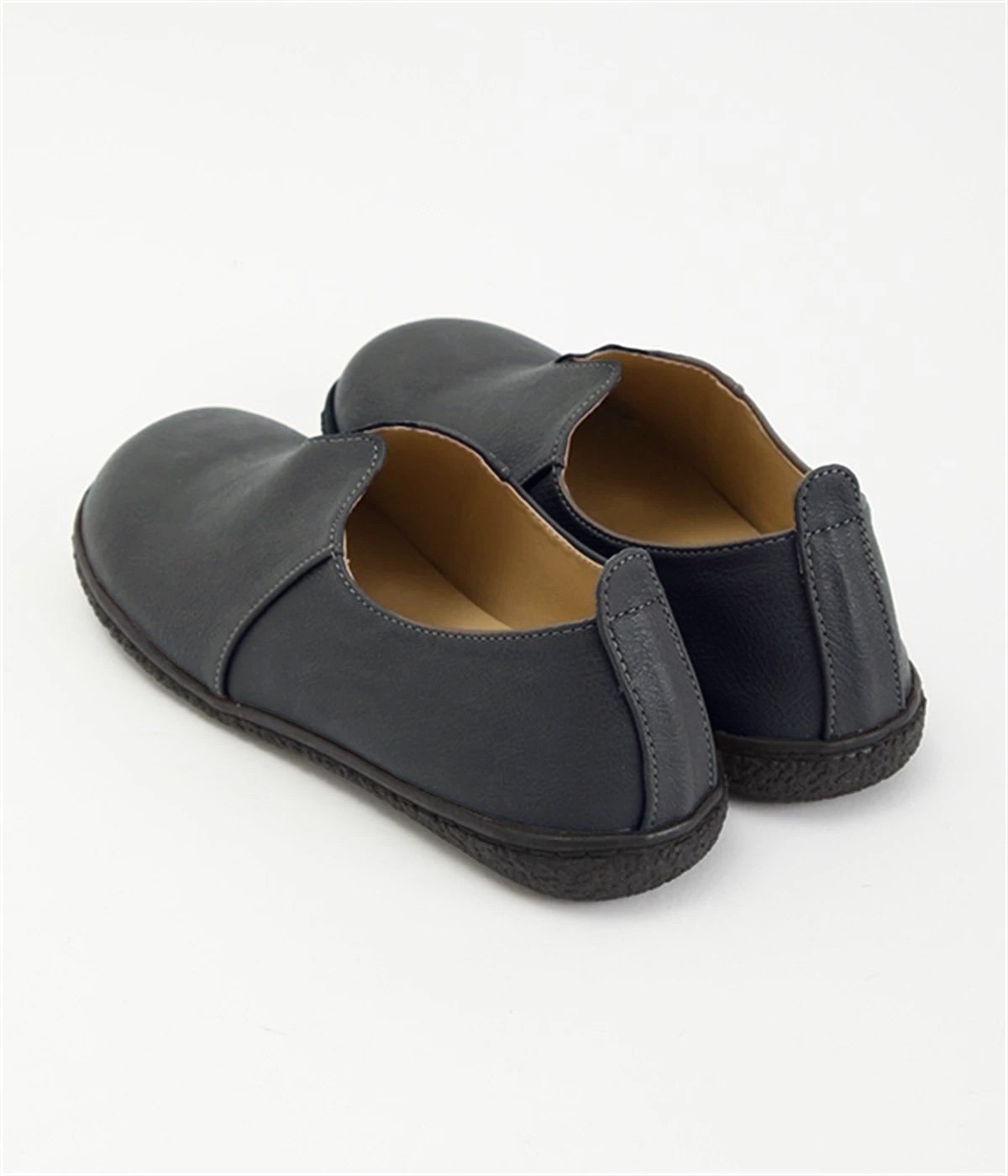 表面に細かなシボがあり、リアルレザーのような上品な見た目が魅力の合成皮革です。足の動きに合わせてやわらかくしなるので、歩きやすさも抜群。クッション性のあるインソールを使用しています。