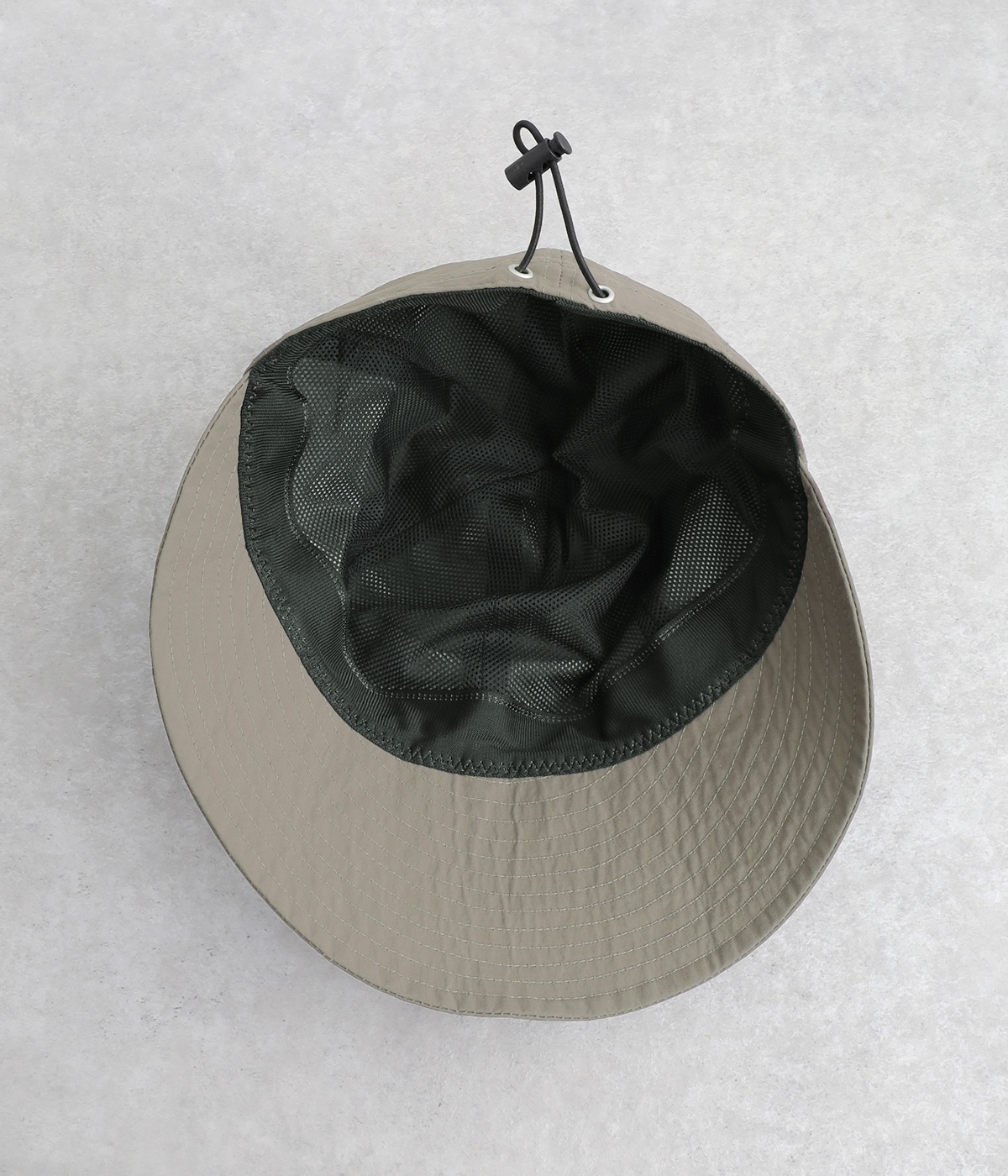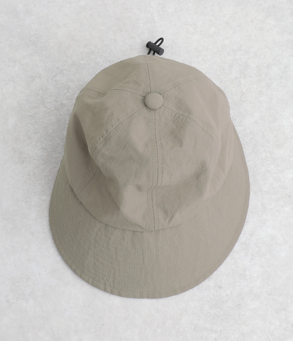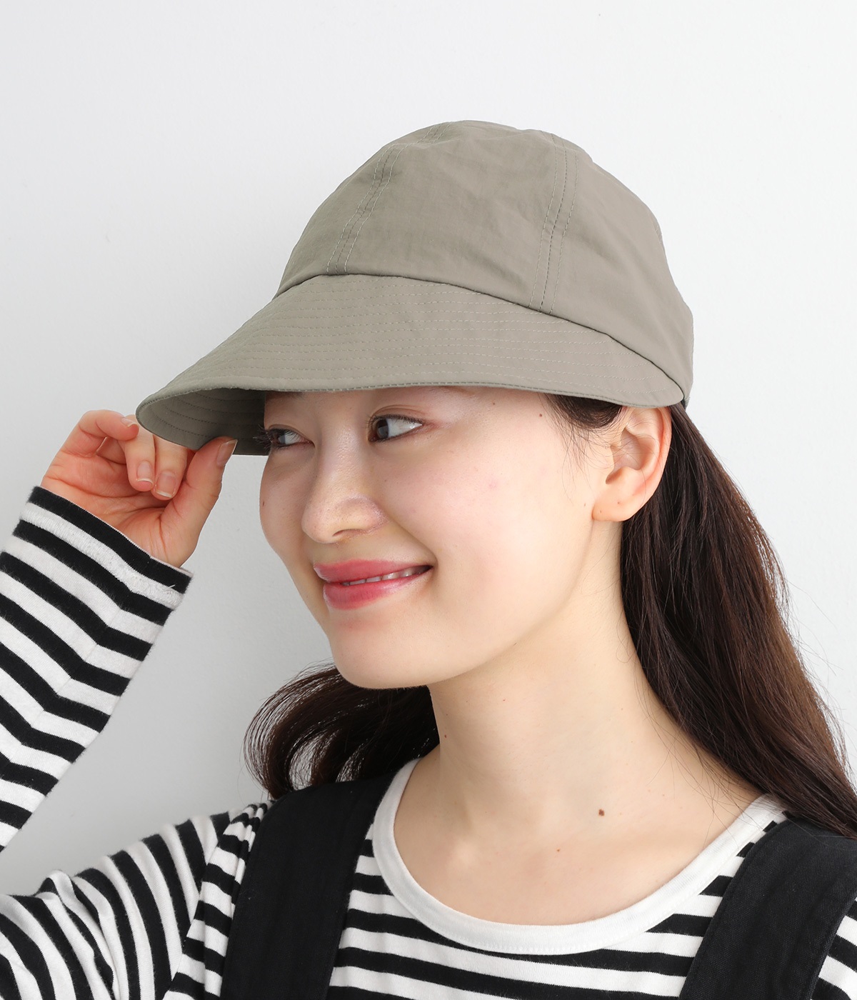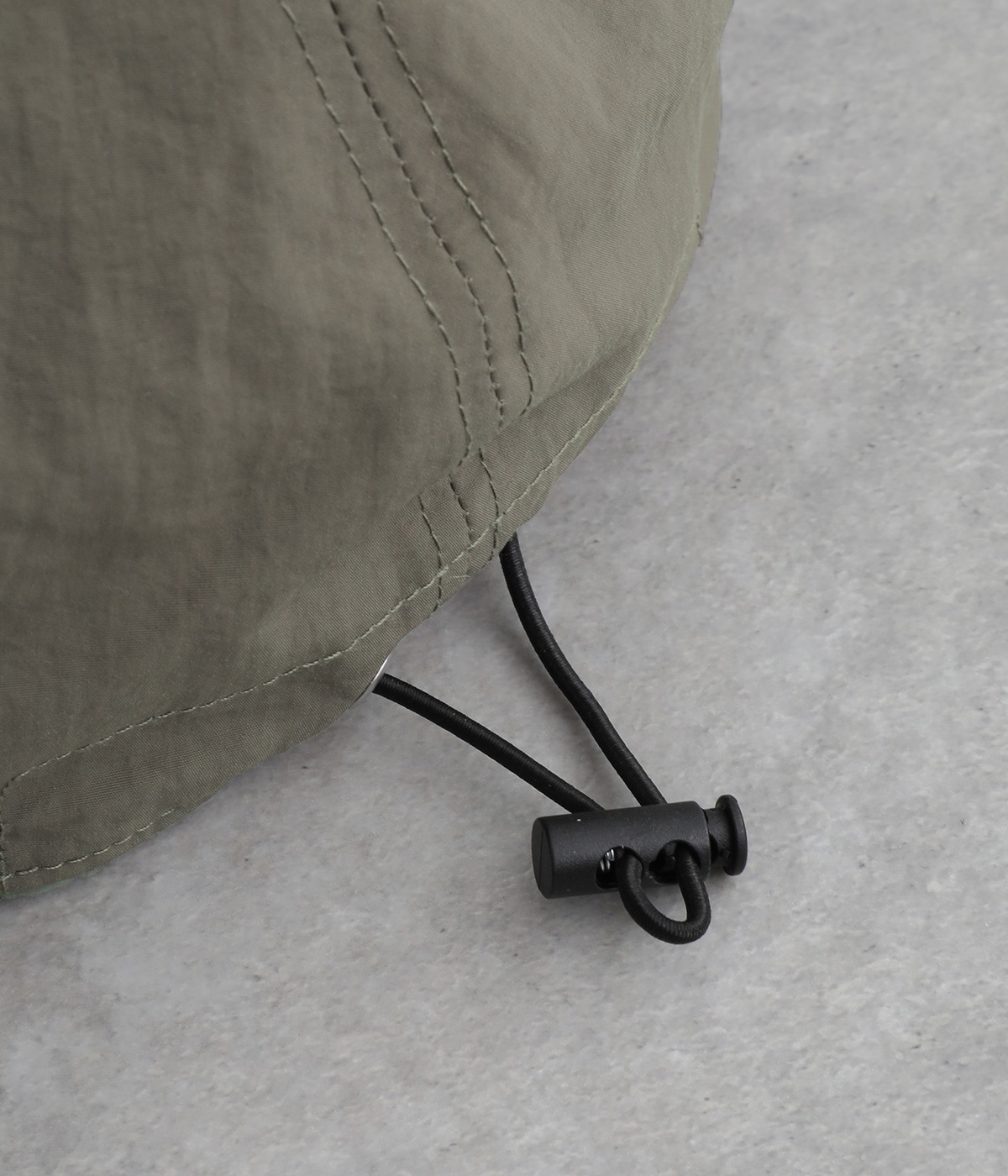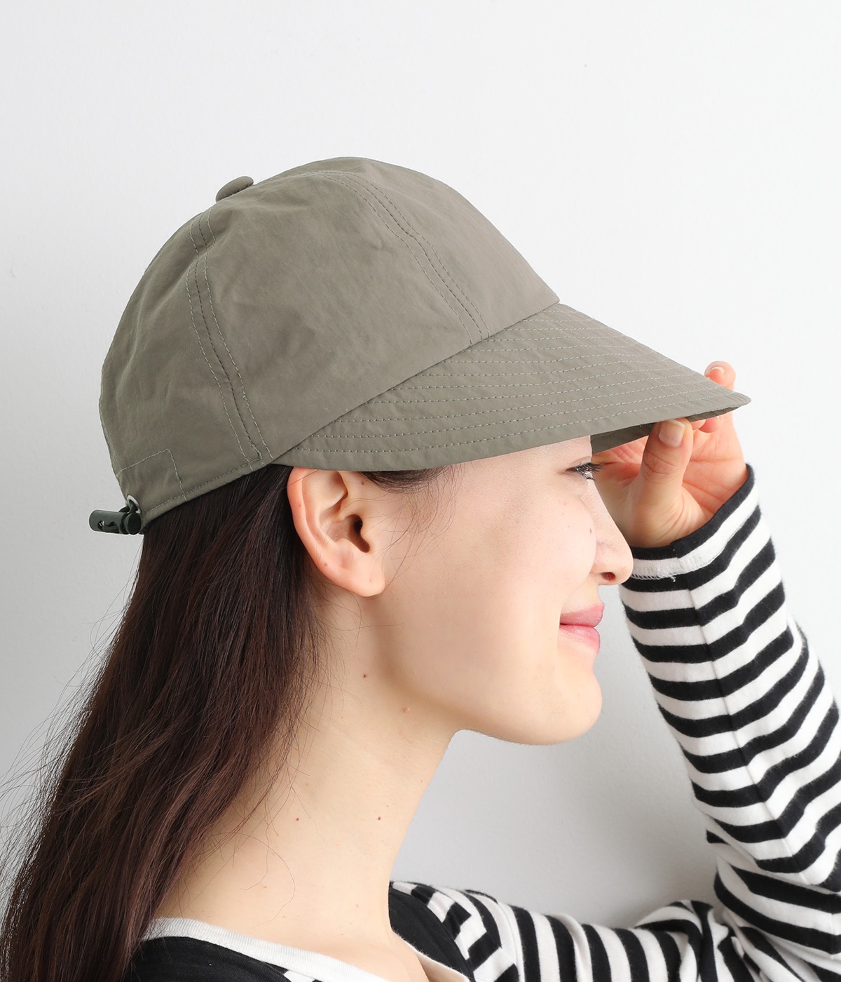 前ツバをワイドにとった、UVカット効果抜群のキャップ。強い日差しからしっかり守ってくれて、シワも気になりにくいので持ち歩き用にも最適。後ろはドローストリング仕様で、サイズ調整も可能。