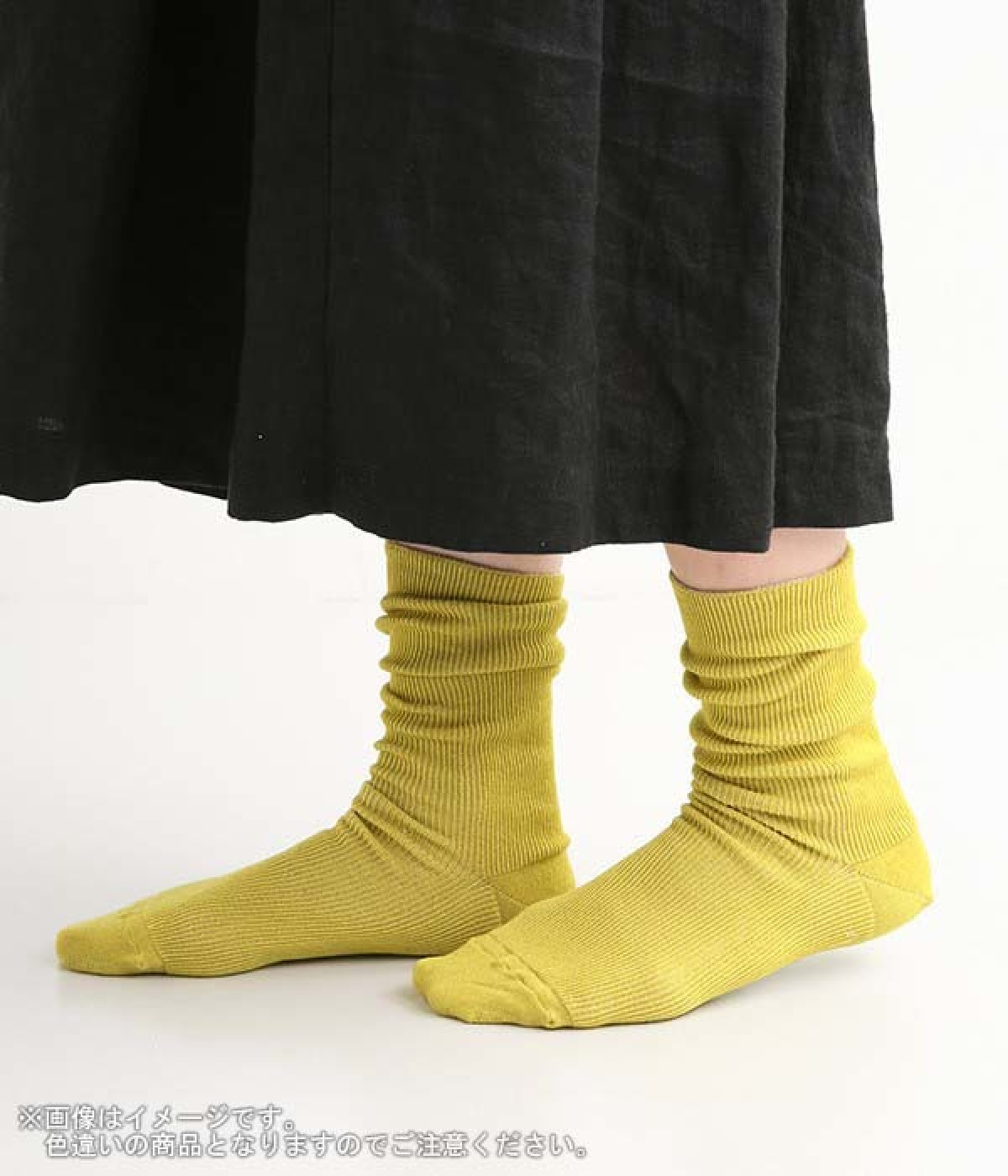 ゴムを使わずに編み立てた、つつみ込まれるようなはき心地が魅力のソックスです。幅広いサイズに対応するほどの伸縮性があるので、締めつけ感が少なく、重ね履きのコーディネートもおすすめ。長く愛せる、機能性にすぐれたアイテムです。