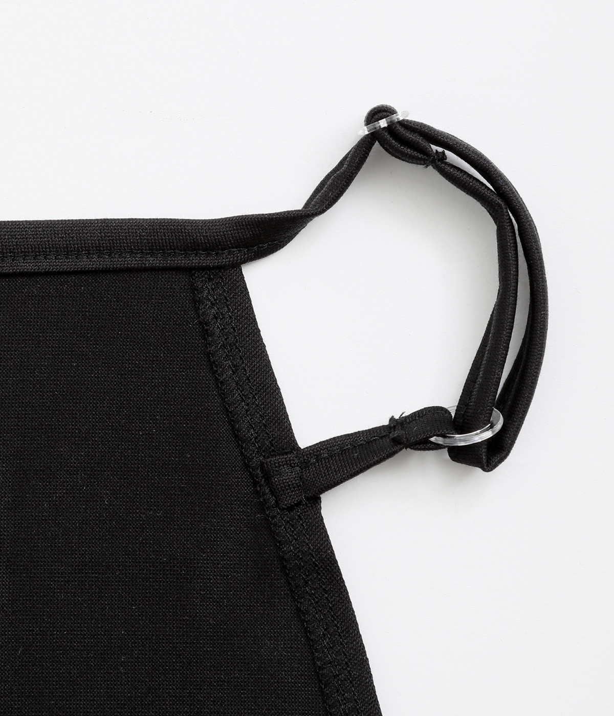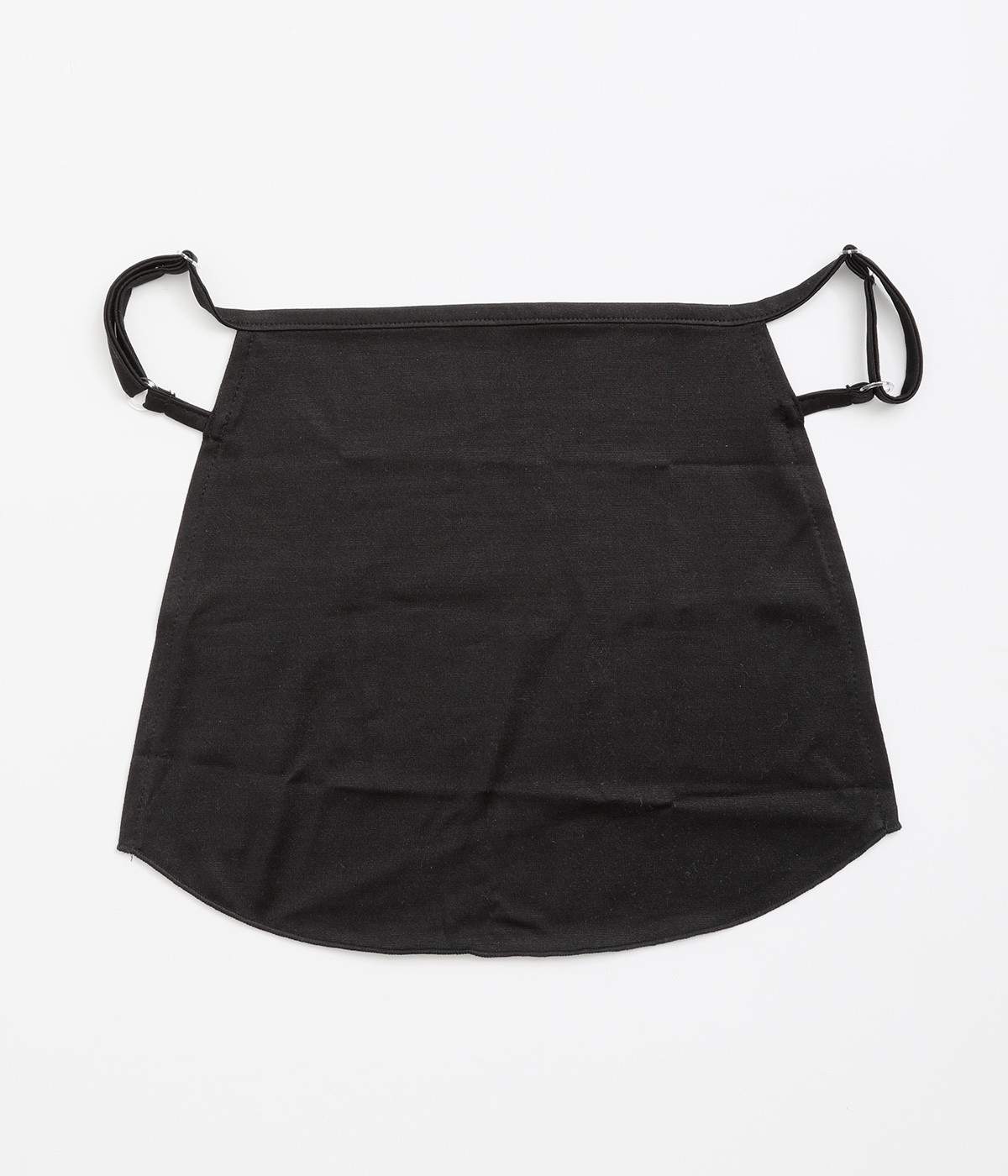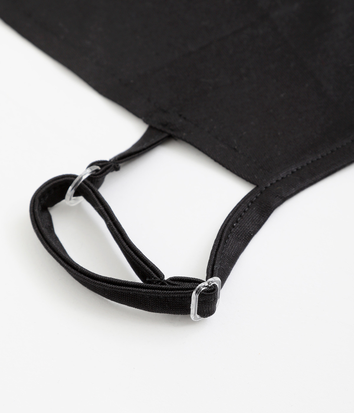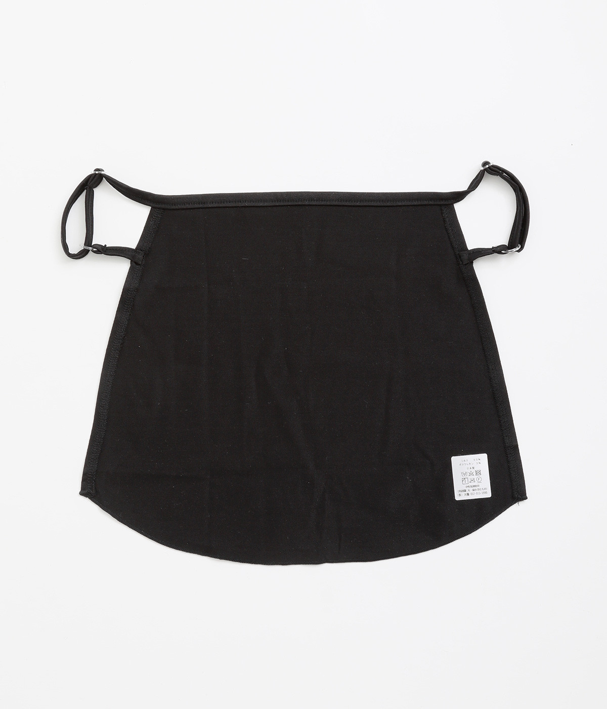 耳にかけて使用する形状のフェイスカバー。着脱もしやすく、耳紐は顔のサイズに合わせて調整できるアジャスターつきです。マスクよりも呼吸がしやすく、長めの作りなので首もとまでカバーしてくれます。