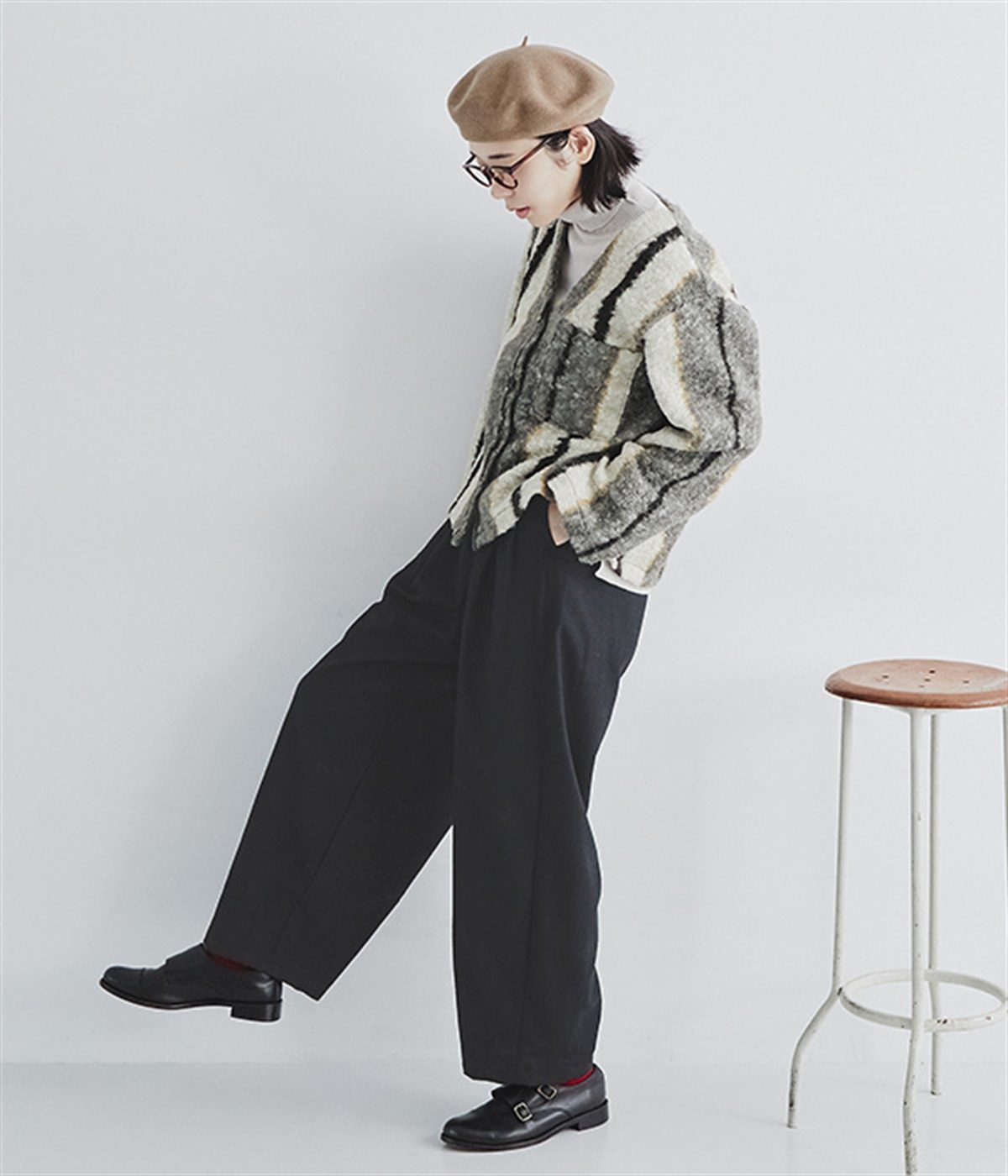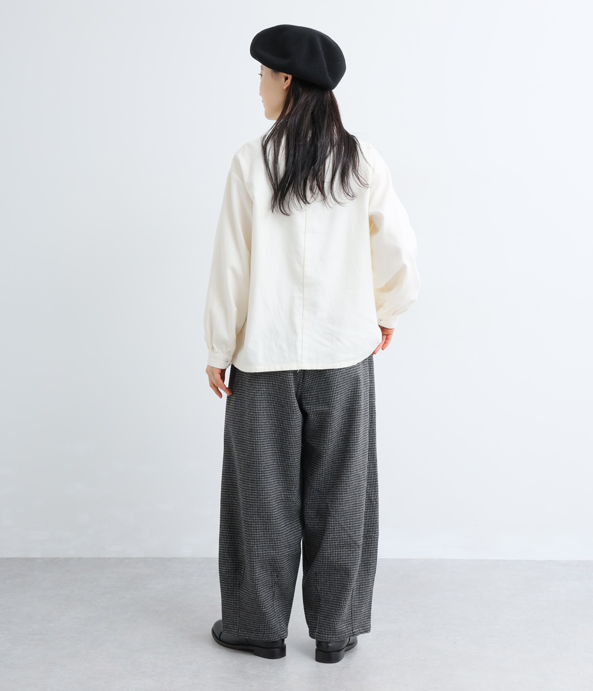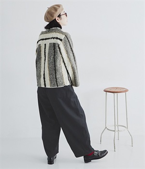 見た目にもあたたかみを感じるふっくらとした起毛感と、やわらかな風合いが魅力のライトメルトン生地を使用。滑りのよいさらりとした裏地をつけて、着用感をアップさせています。