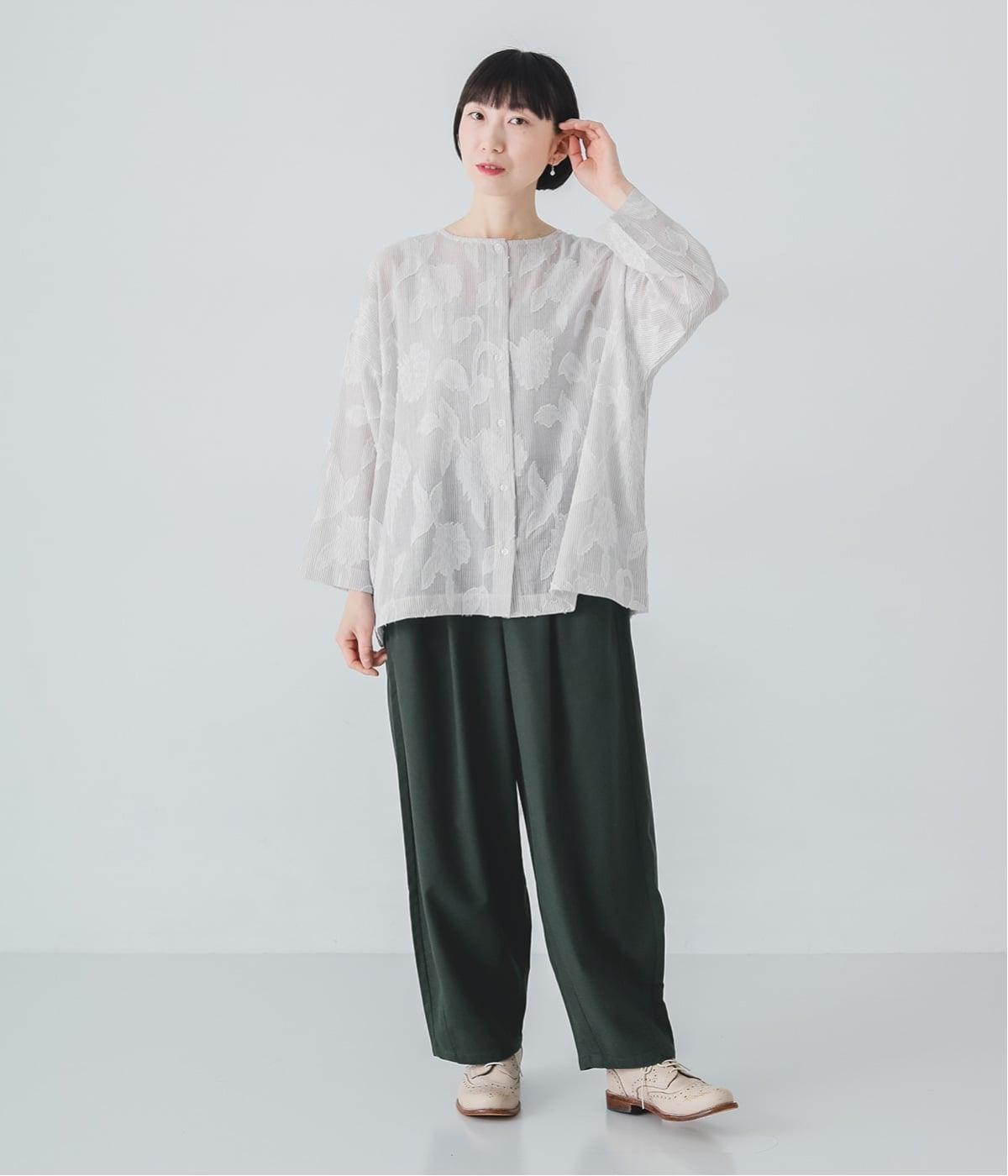 きれいめなスタイリングにも合わせやすい、ベーシックなデザイン。リネンを織り込んだ生地は、着るほどに風合いが増し、経年変化も楽しめます。