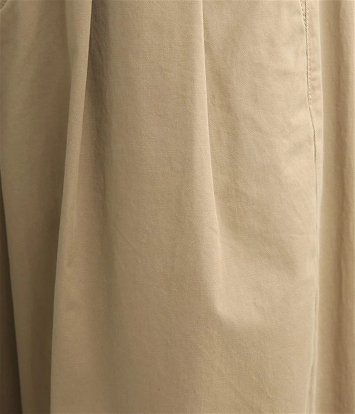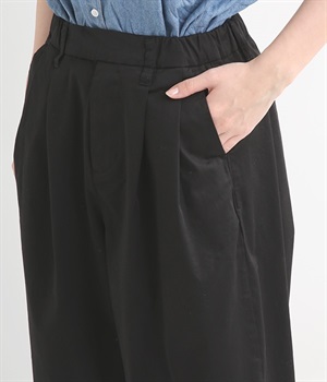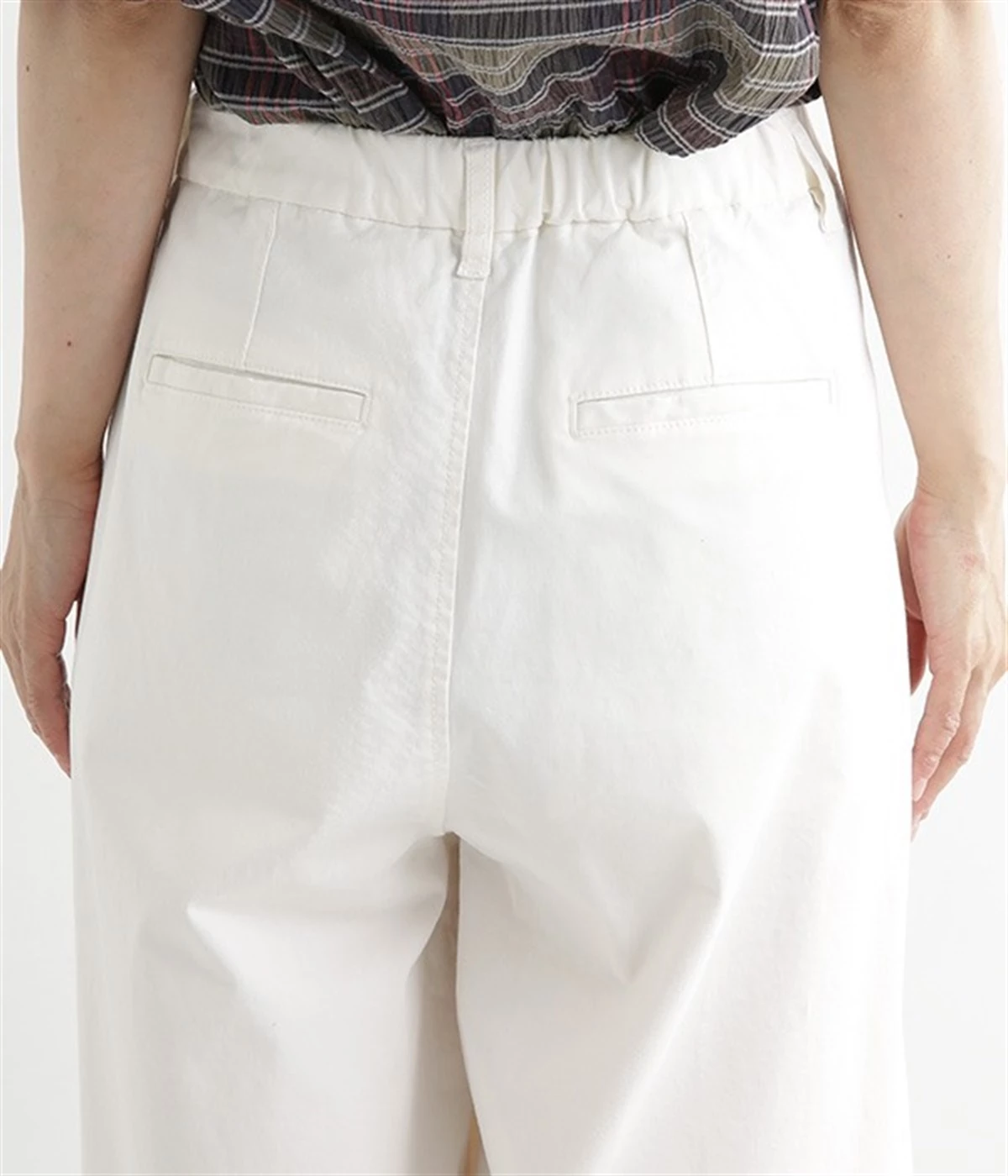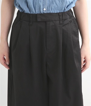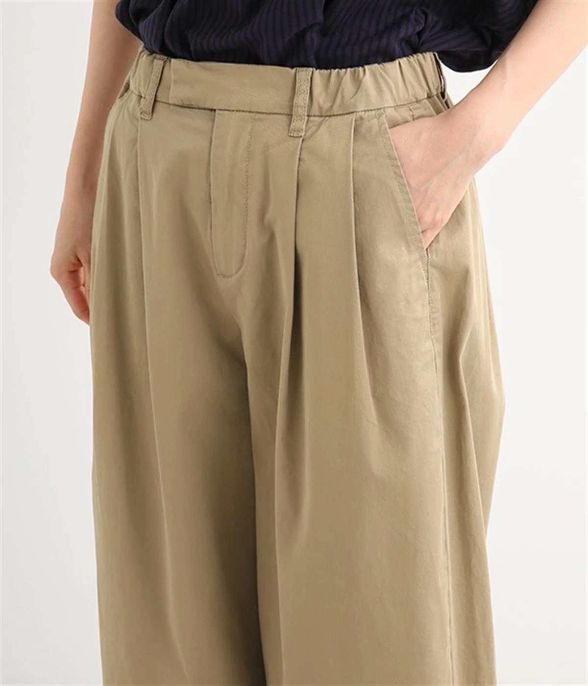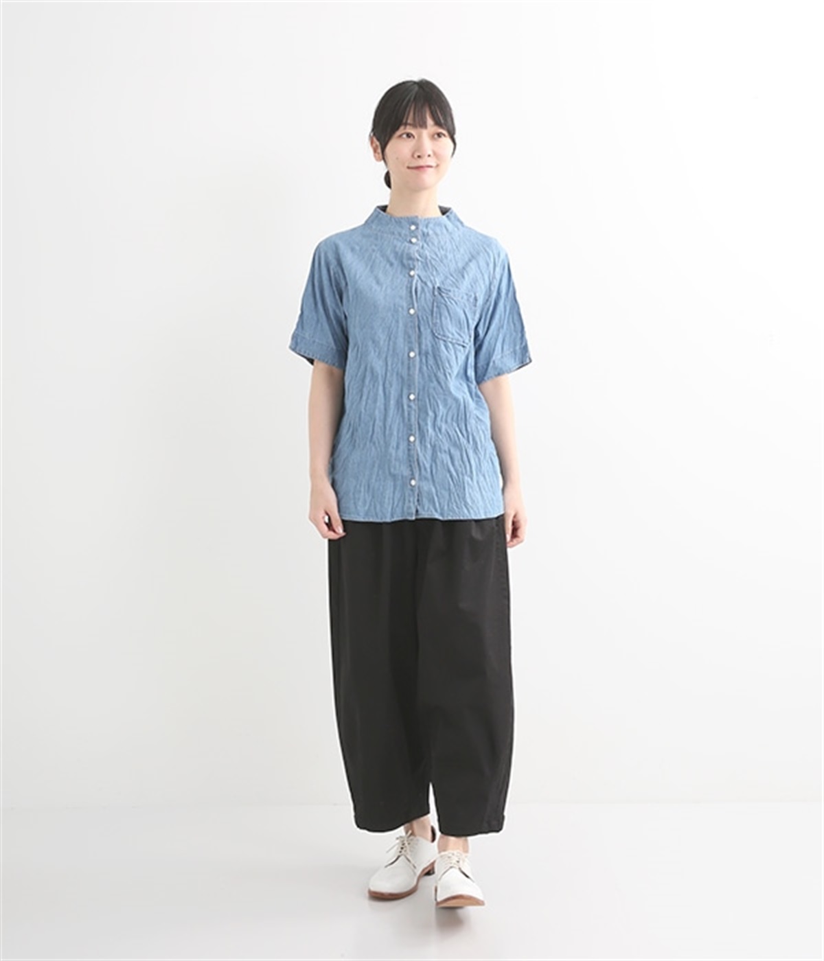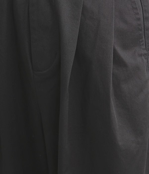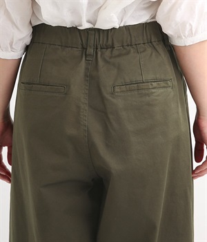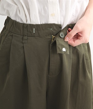 ワイドシルエットにテーパードラインをミックスした、バルーン調のデニムパンツです。より丸みを出すために裾にダーツを施し、きれいな立体感を表現しました。通常のバルーンパンツよりも少し細めに仕上げているので、さまざまなトップスとバランスよくコーディネートできます。フロントはファスナー開閉できちんと感を出し、後ろ側はゴム仕様で快適なはき心地です。