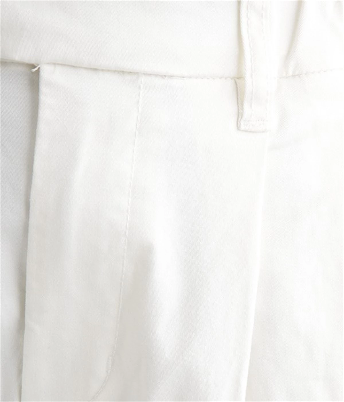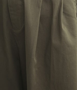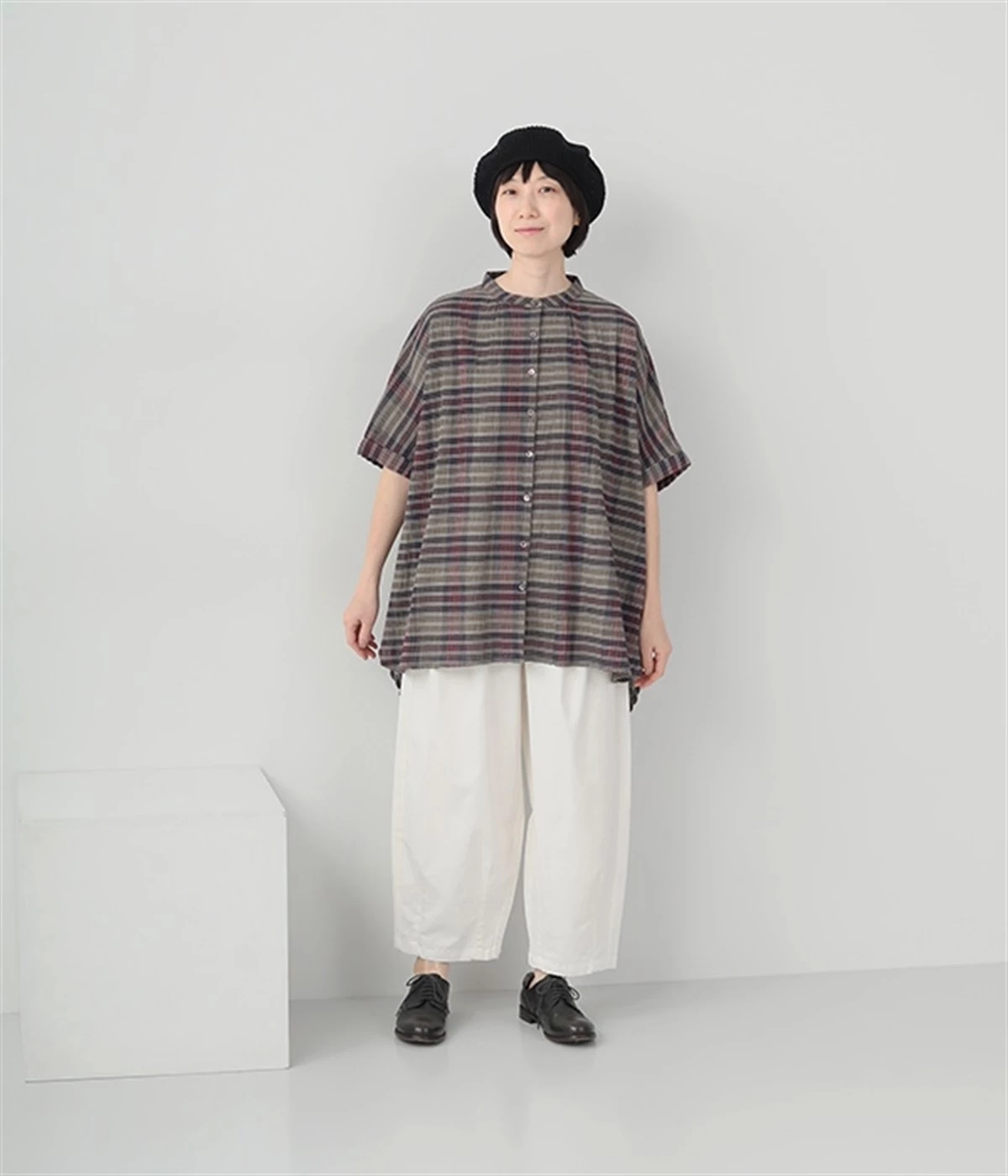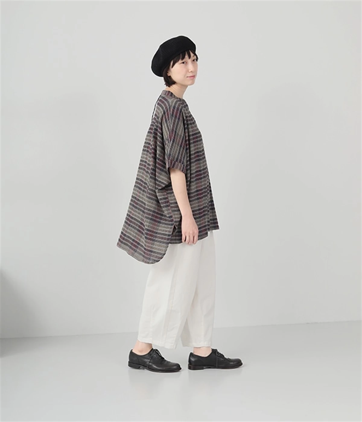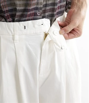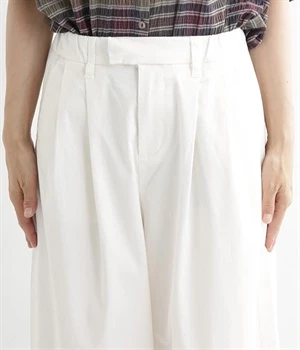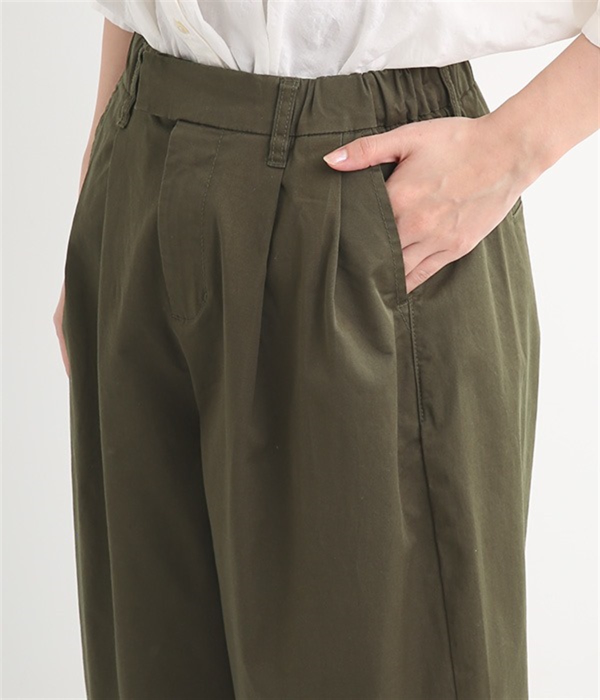 ワイドシルエットにテーパードラインをミックスした、バルーン調のデニムパンツです。より丸みを出すために裾にダーツを施し、きれいな立体感を表現しました。通常のバルーンパンツよりも少し細めに仕上げているので、さまざまなトップスとバランスよくコーディネートできます。フロントはファスナー開閉できちんと感を出し、後ろ側はゴム仕様で快適なはき心地です。