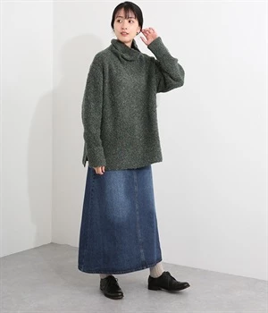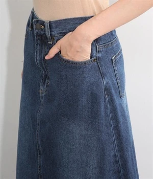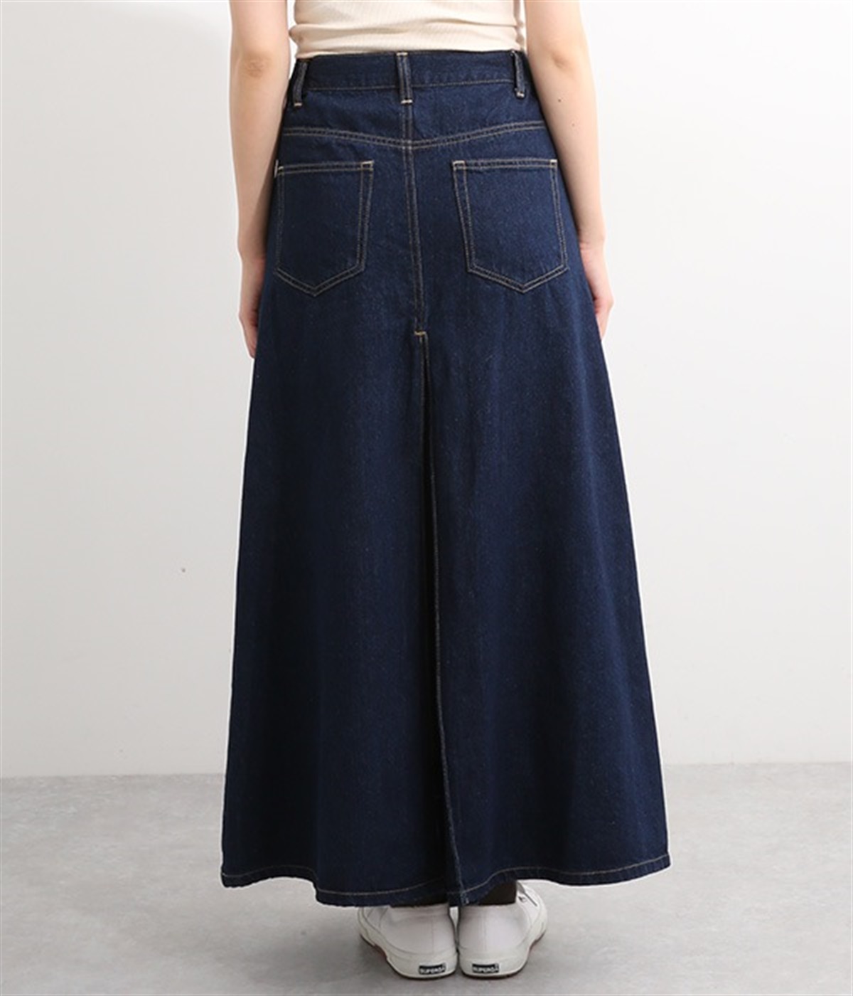 きれいに広がるバックプリーツがポイントのフレアスカートです。はき込んだような風合いのブラスト加工をほどこした、ヴィンテージ風のデニム生地を使用しました。動くたびに上品に揺れるシルエットが素敵。流行りに左右されず、一年を通して幅広く着まわすことができます。ウエスト脇をゴム仕様にしていることでお腹まわりの締めつけが軽減されるのもうれしいポイントです。