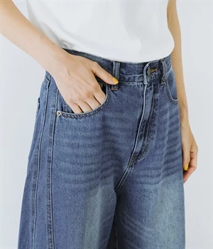 ステッチがきれいな曲線を描き、コーディネートのアクセントに。裾にかけてボリュームを絞り、脚長効果も期待できます。