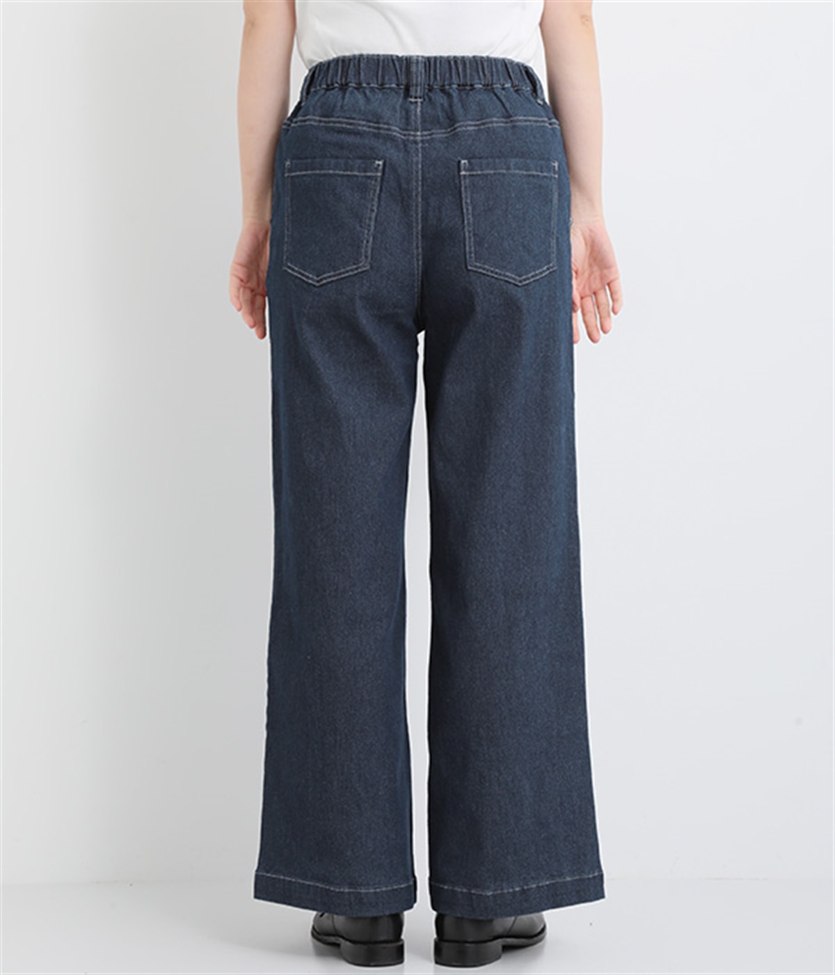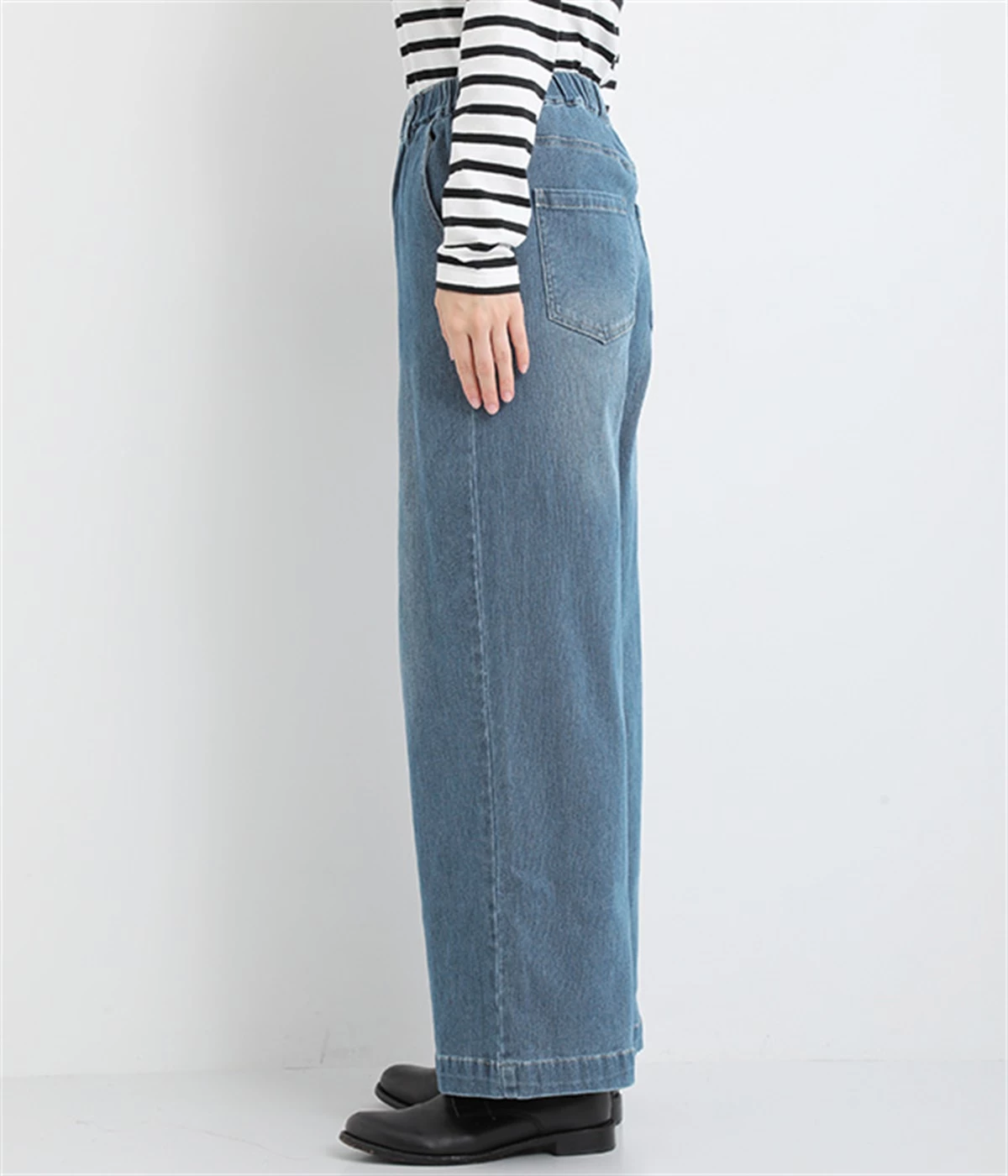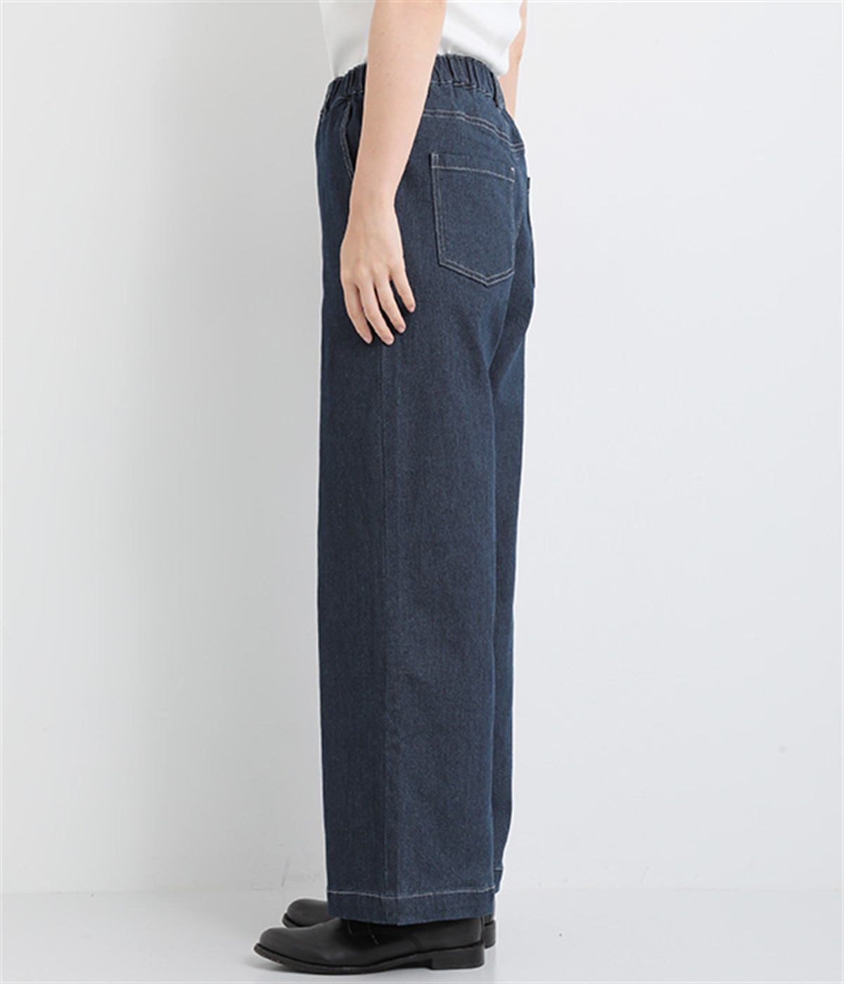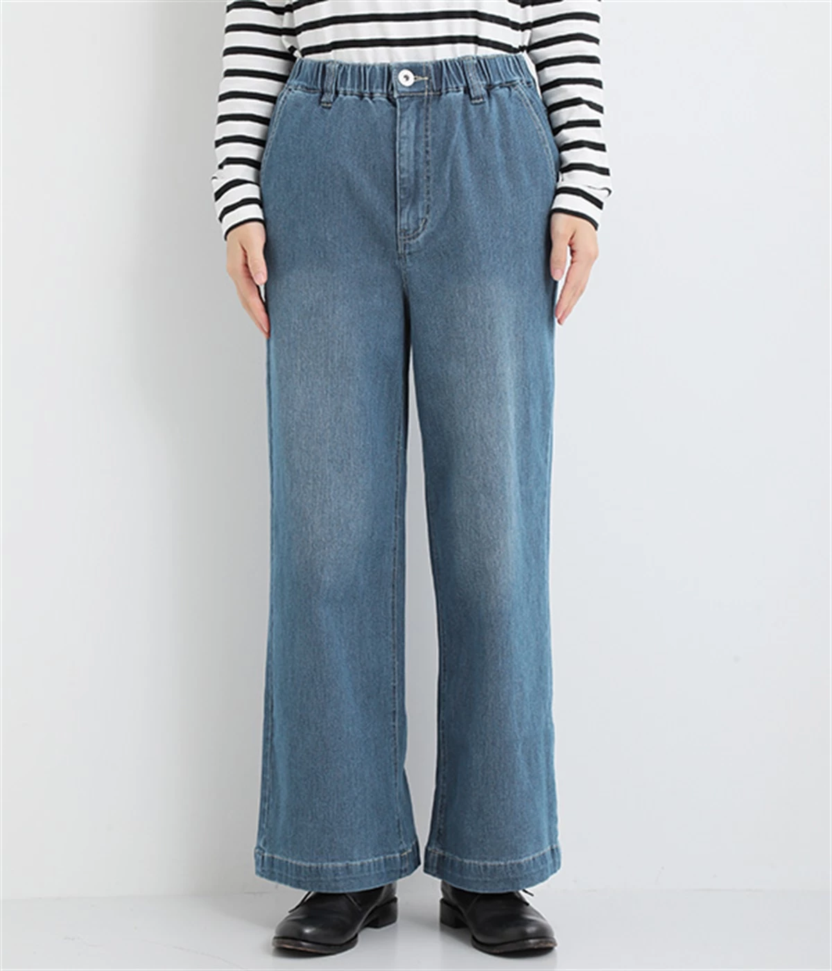 ジャージー素材のように高いストレッチ性を備えたはき心地抜群のデニムパンツ。ほどよいハリコシがありながら、ゴワツキや硬さをおさえた軽やかな風合いに仕上げました。脚のラインを拾いにくい、ほどよいストレートラインがさまざまなスタイルにマッチ。ウエストはジップフライですっきりと見せつつ、ゴム仕様で快適なフィットに。通気性や保温性に優れ、オールシーズン快適に着まわせる一本です。