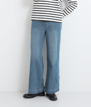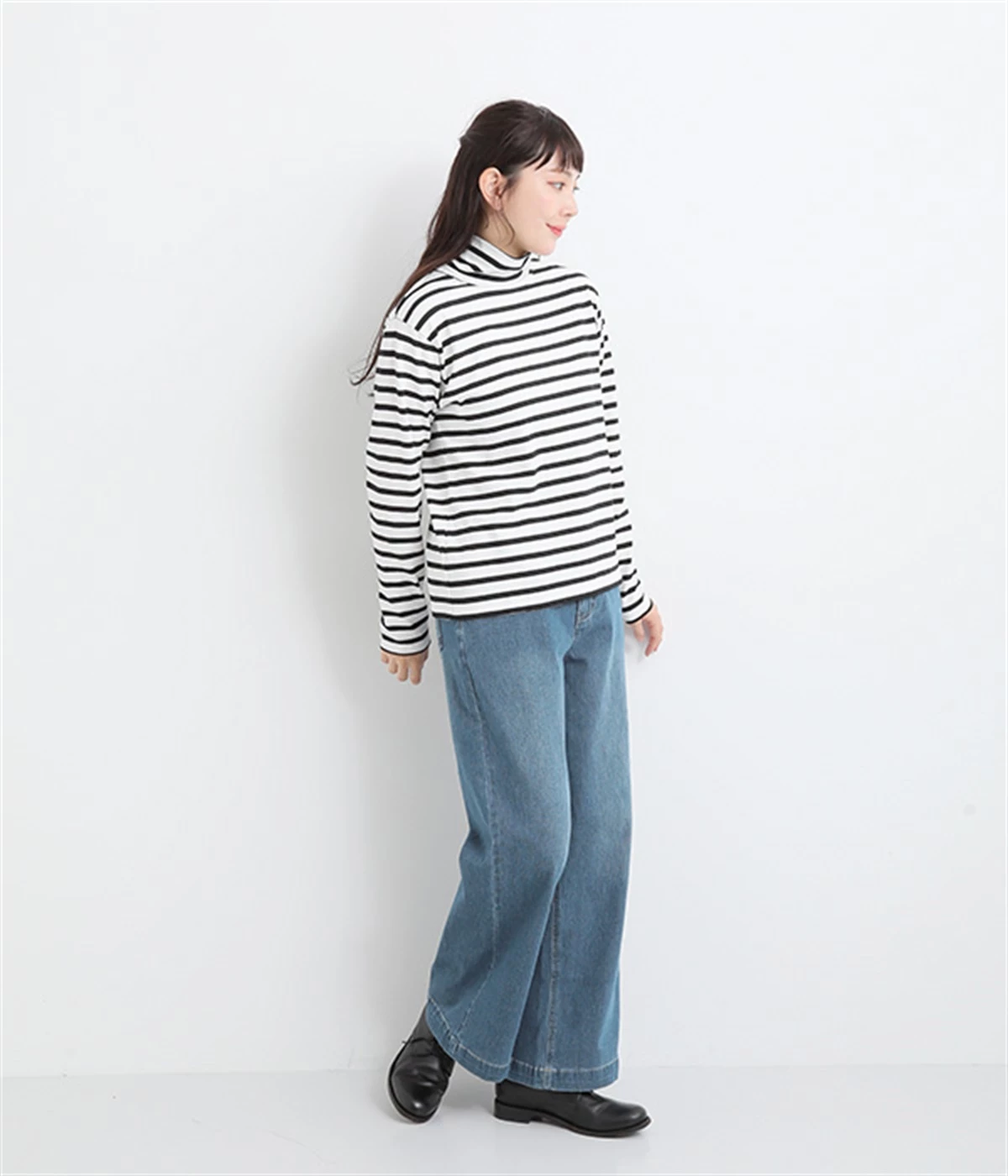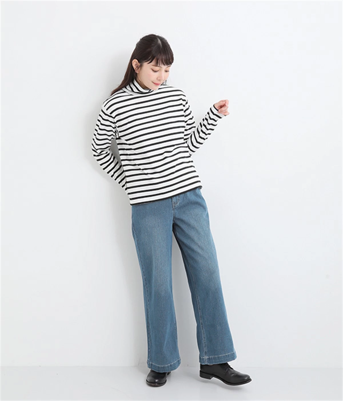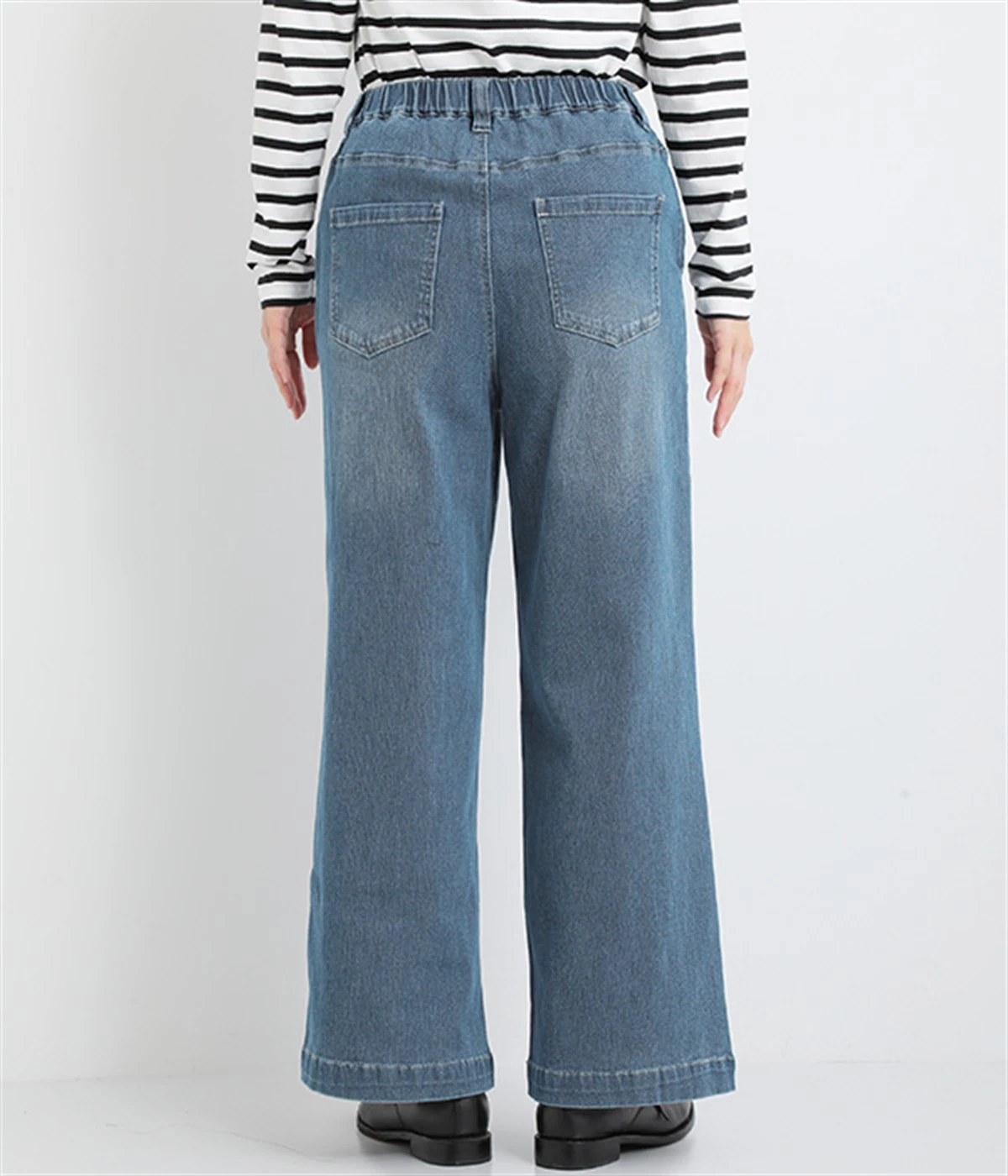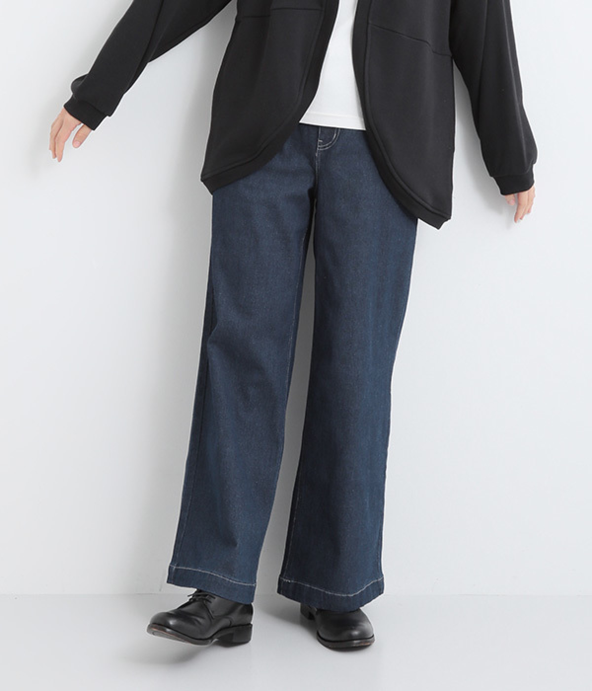ジャージー素材のように高いストレッチ性を備えたはき心地抜群のデニムパンツ。ほどよいハリコシがありながら、ゴワツキや硬さをおさえた軽やかな風合いに仕上げました。脚のラインを拾いにくい、ほどよいストレートラインがさまざまなスタイルにマッチ。ウエストはジップフライですっきりと見せつつ、ゴム仕様で快適なフィットに。通気性や保温性に優れ、オールシーズン快適に着まわせる一本です。