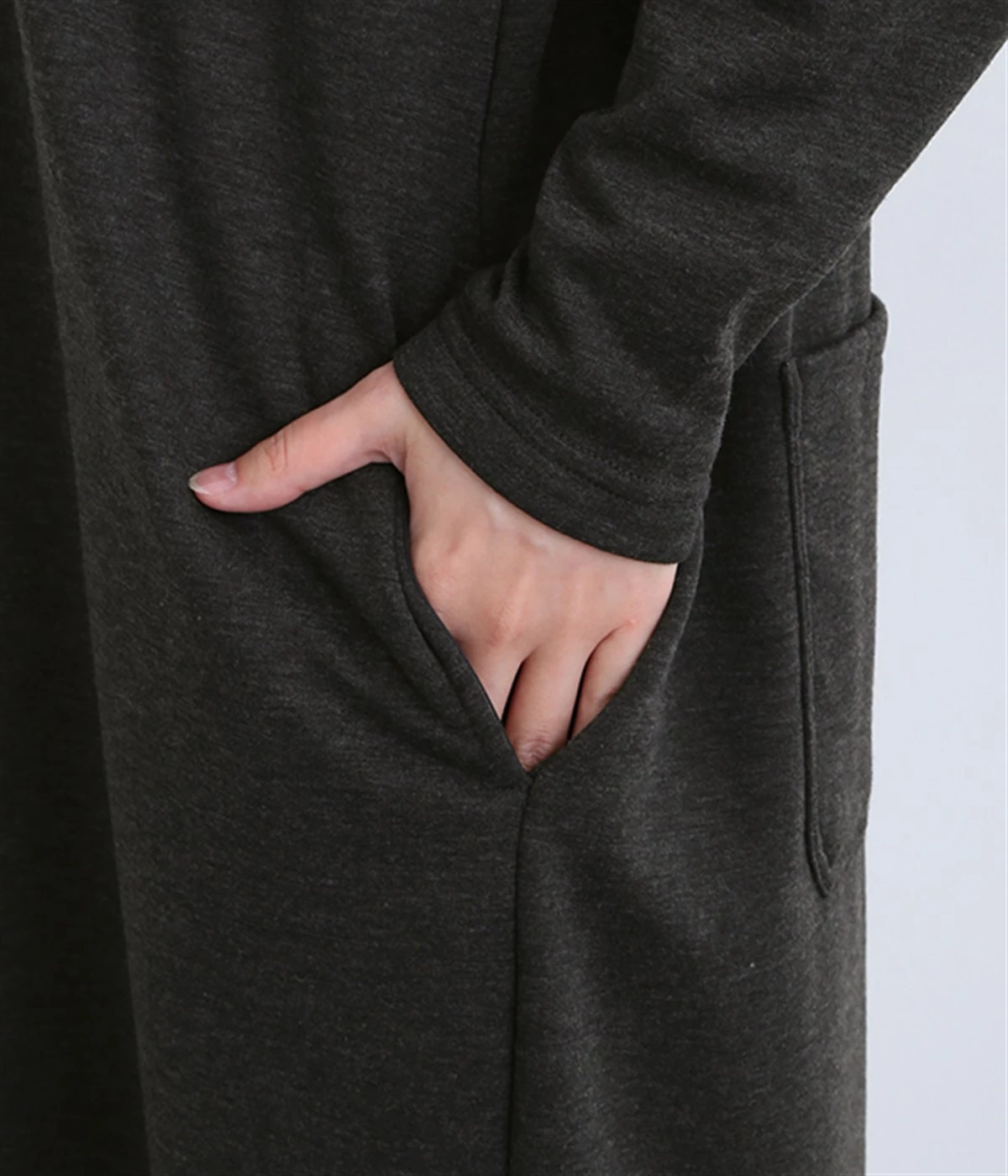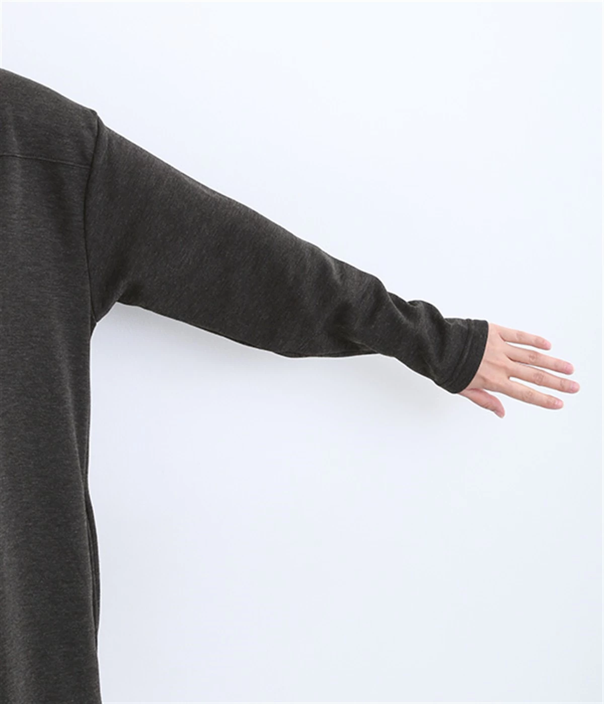 袖口はリブなしでもすっきり見えるような仕立てに