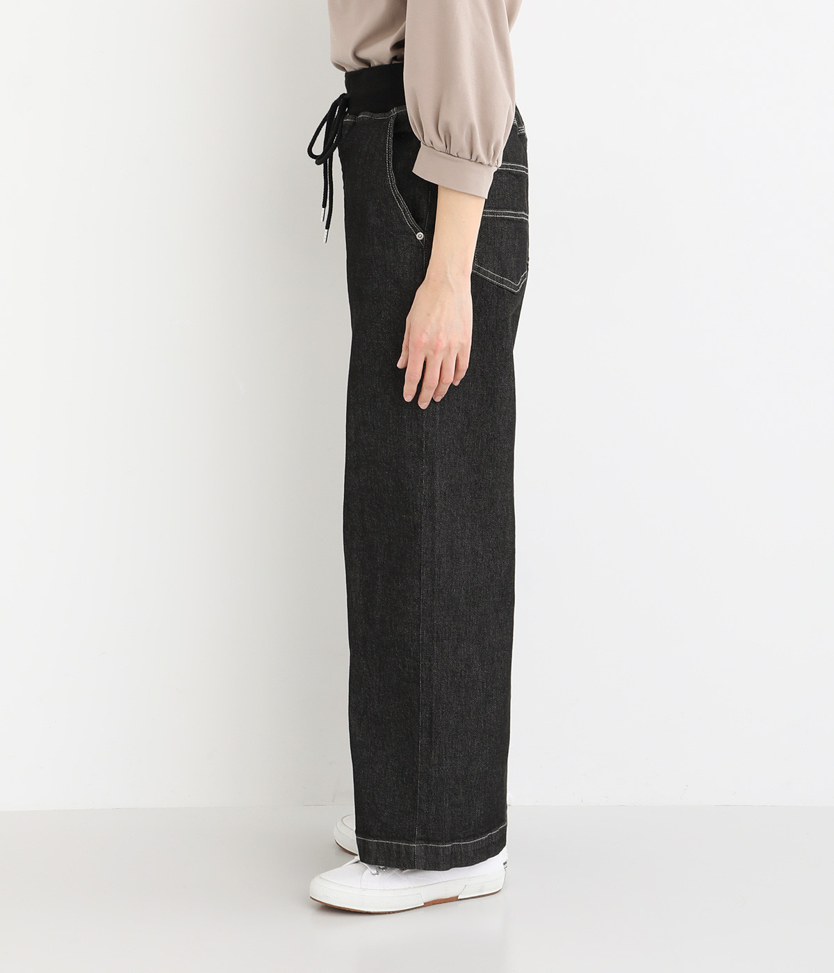 ウエストリブ仕様でリラックスしたはき心地とカジュアルなデザインが魅力的なパンツです。たっぷりとしたワイドシルエットが大人顔で、トップスをタックインした着こなしもおすすめ。