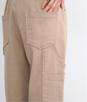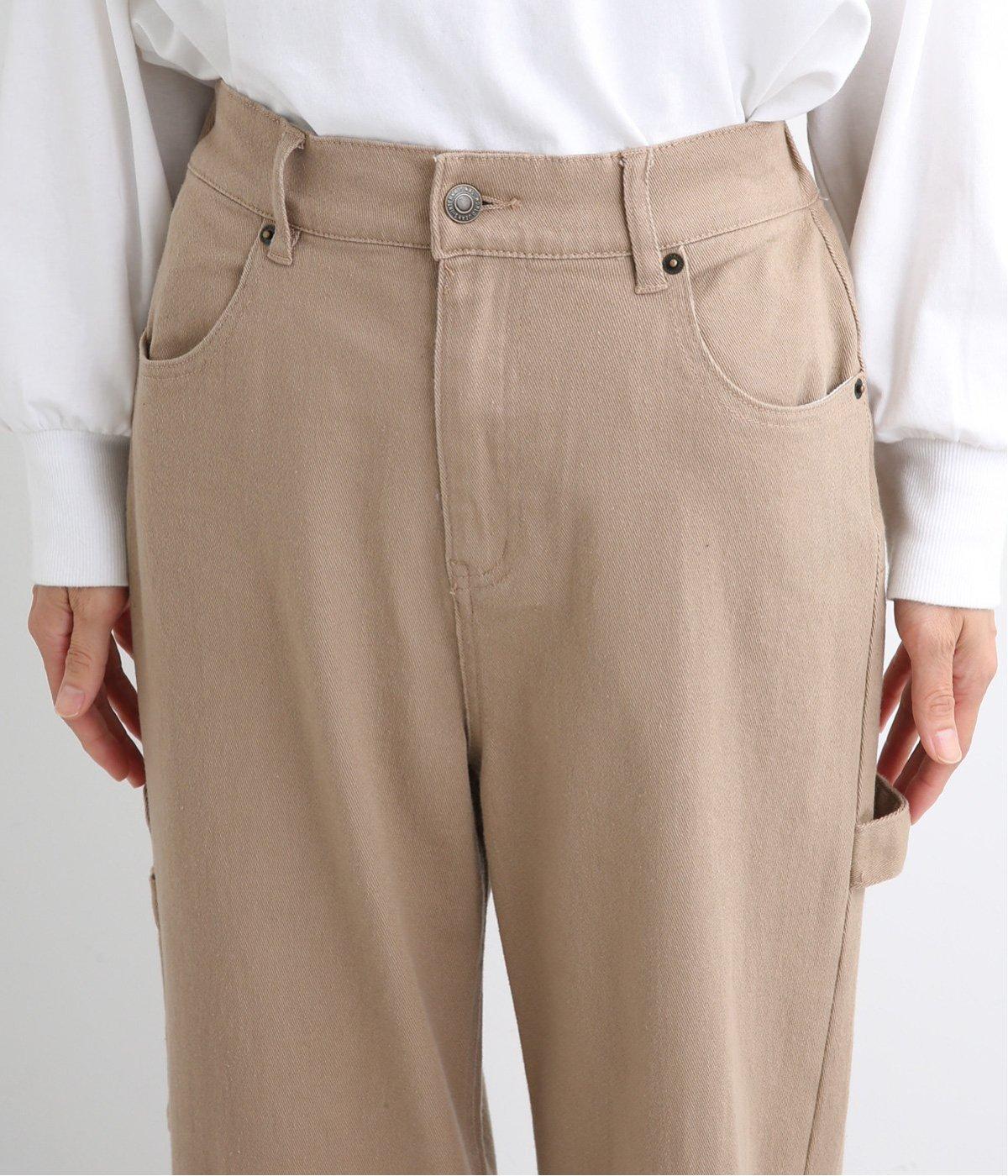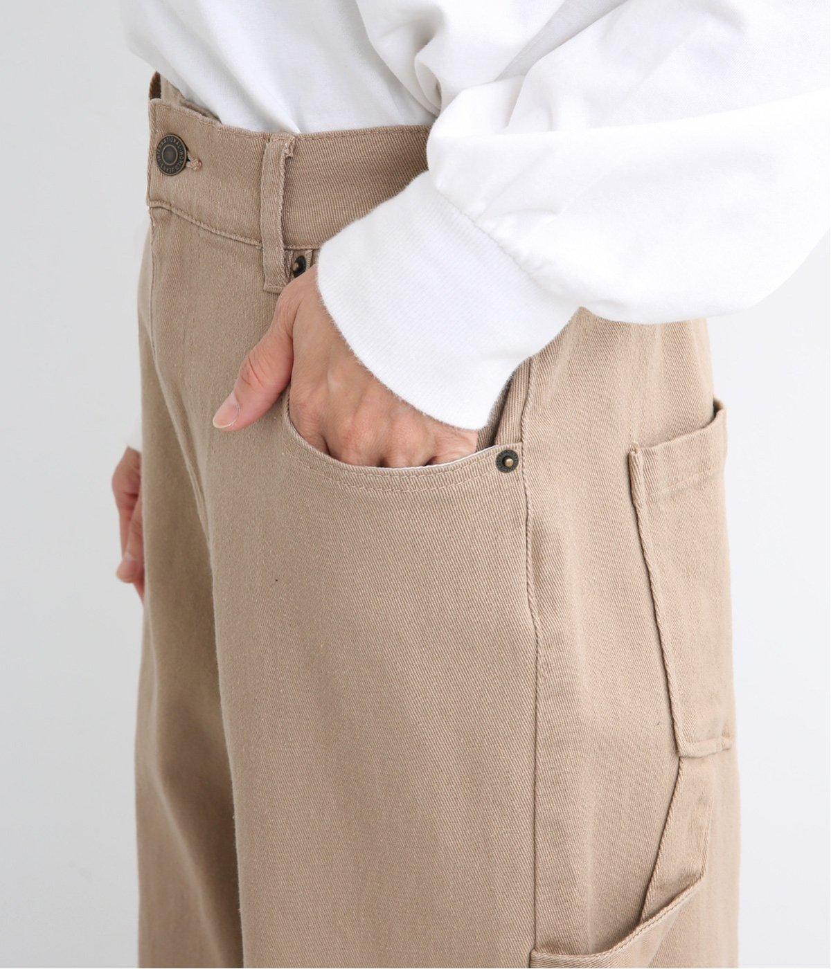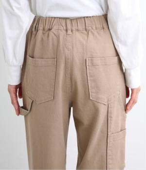 太すぎず細すぎない絶妙なシルエットで、ワークなデザインも女性らしく着こなせるよう仕上げました。ハンマーループやポケットなど本格仕様ながら、無骨になりすぎないすっきりとしたデザイン。後ろのみゴム仕様になっており、はき心地も快適です。