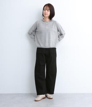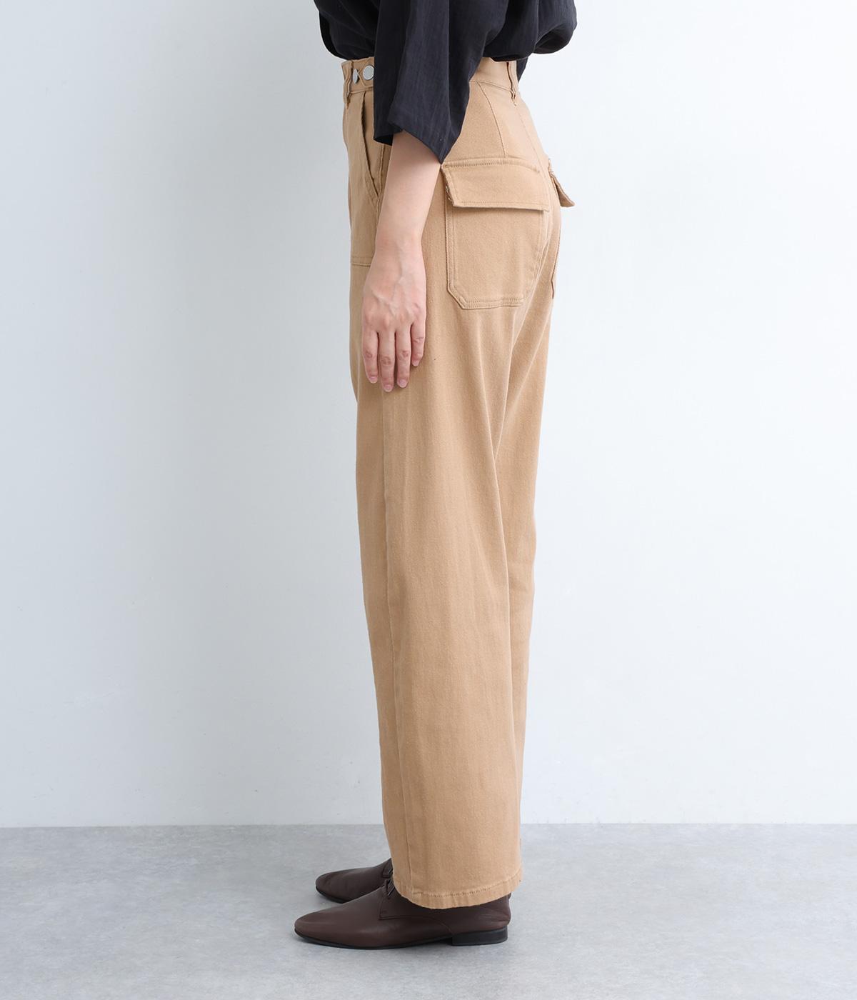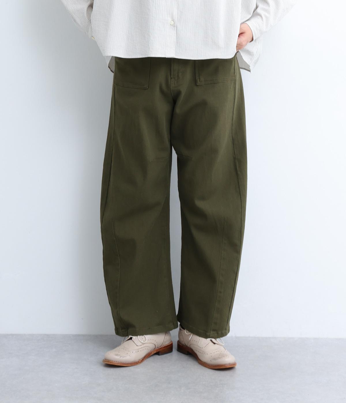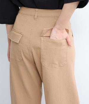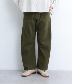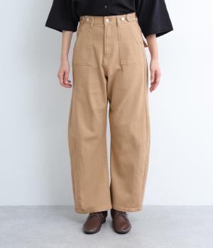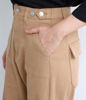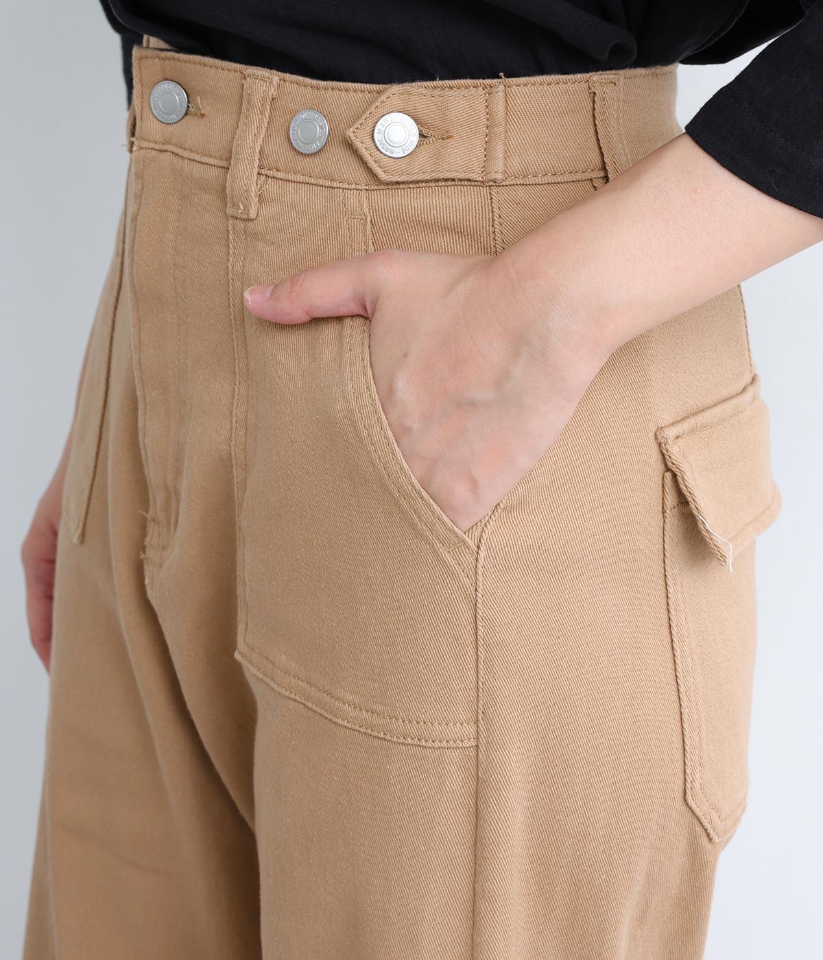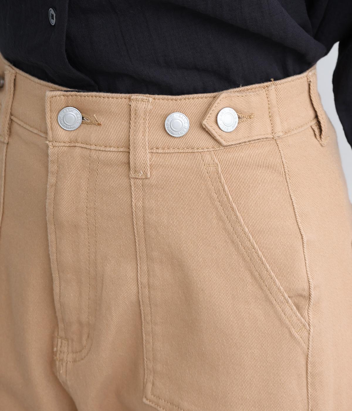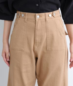 大きなポケットが特徴のベイカーパンツ。アクセントにウエストボタンをあしらいました。太ももにはゆとりがあり、裾に向かってすっきりするカーブシルエットです。ハイウエストでスタイルアップが叶います。