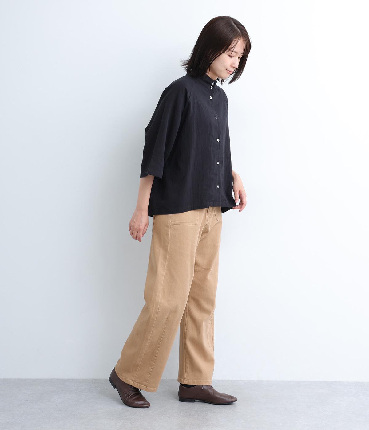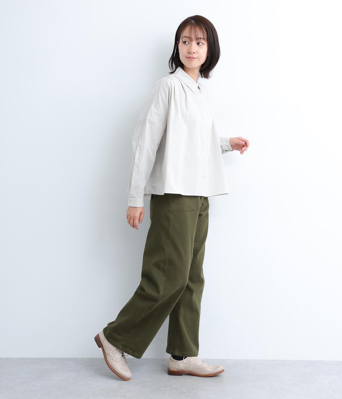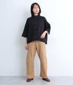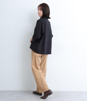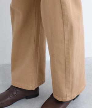ほどよい厚みでシーズン問わず着用できる素材感です。やわらかなハリが、立体的で美しいシルエットを保ちます。ウエストの内側にはゴムをほどこし、はきやすさも実現しました。
