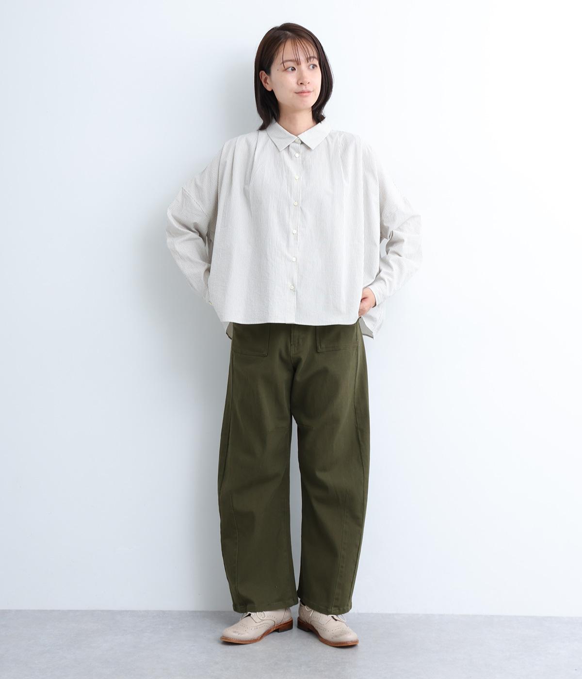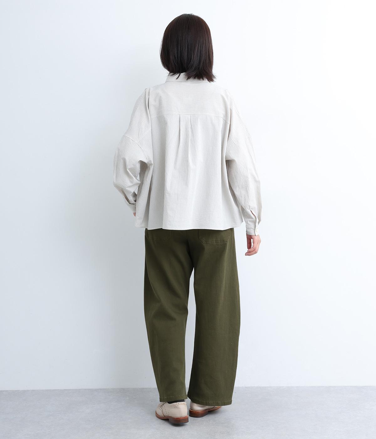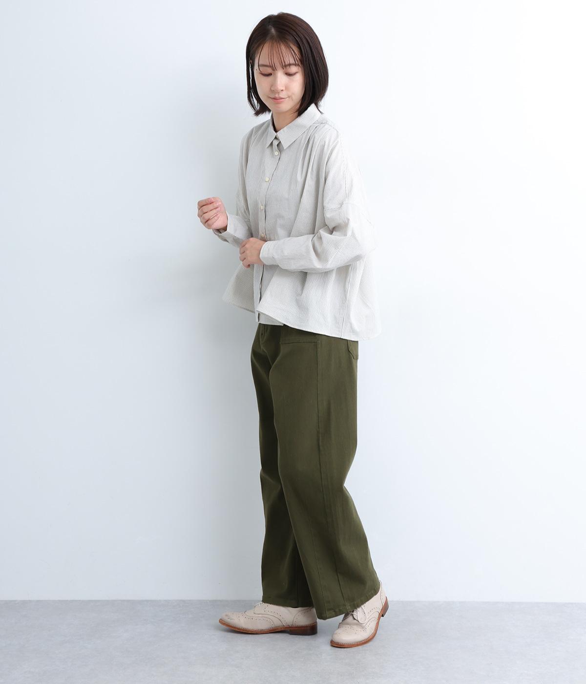 ほどよい厚みでシーズン問わず着用できる素材感です。やわらかなハリが、立体的で美しいシルエットを保ちます。ウエストの内側にはゴムをほどこし、はきやすさも実現しました。