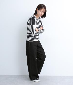 ほどよい厚みでシーズン問わず着用できる素材感です。やわらかなハリがシルエットを美しく保ちます。ウエストの内側にはゴムをほどこし、はきやすさも実現しました。