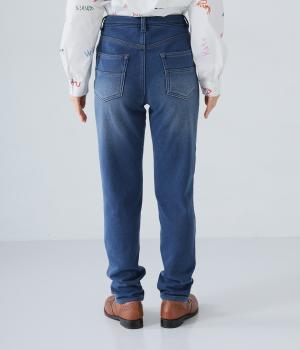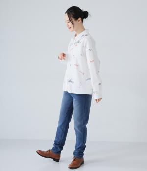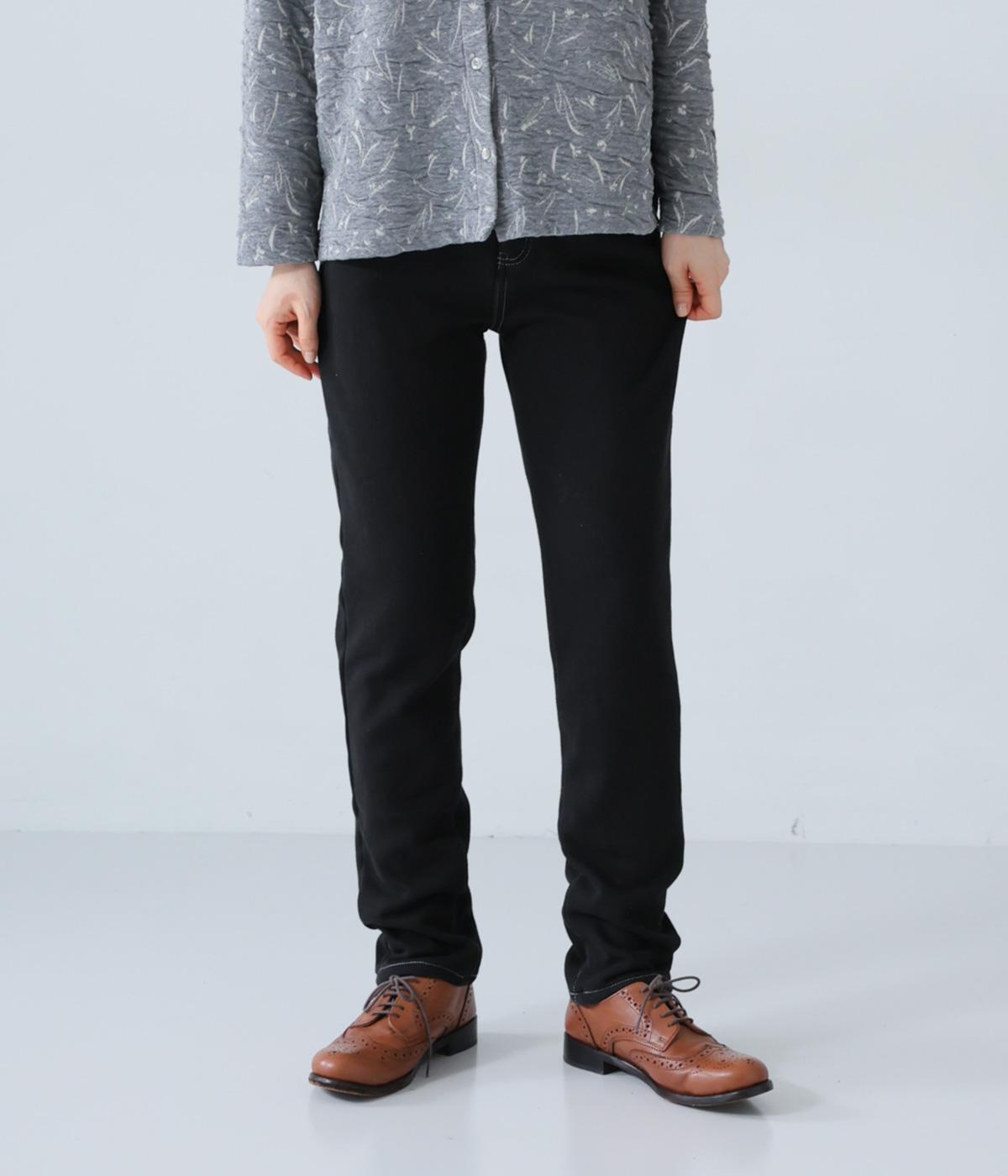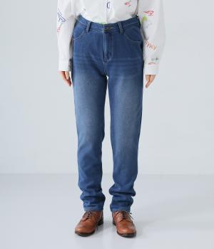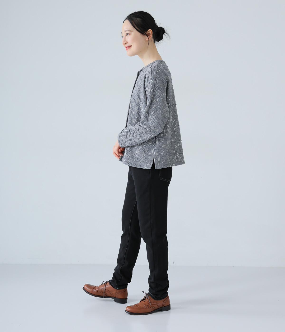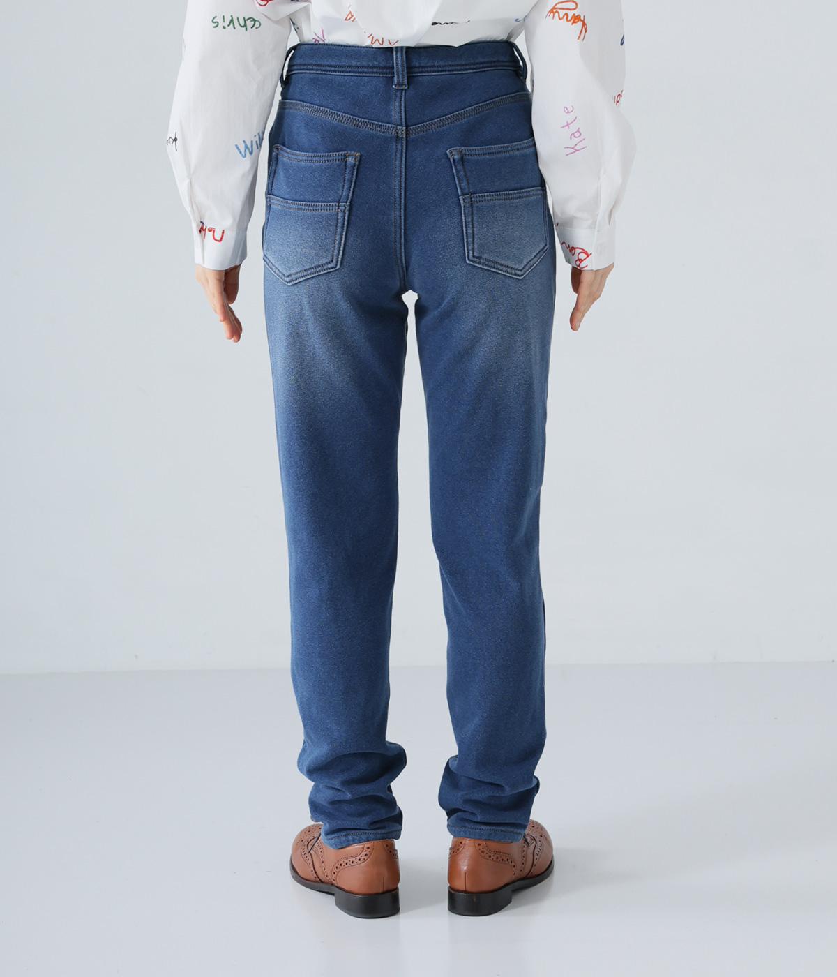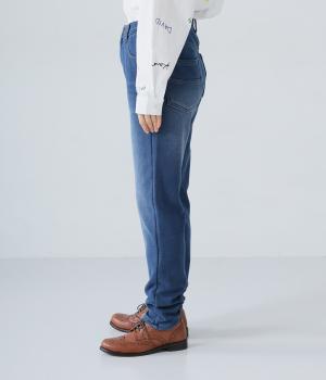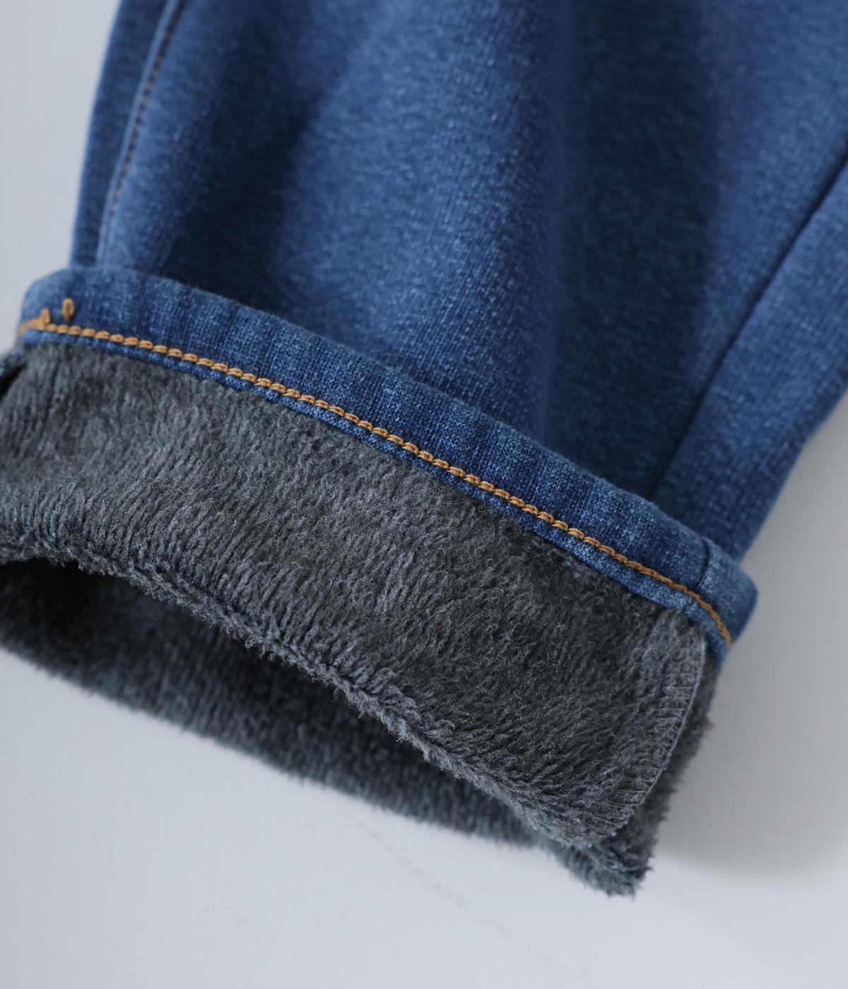 あたたかくイージーな着用感にこだわったコットン混のニットデニム生地。裏面をやわらかなシャギー素材にした、伸縮性の高い生地感です。インディゴ染めを施したデニムならではのカジュアルなルックスが◎。