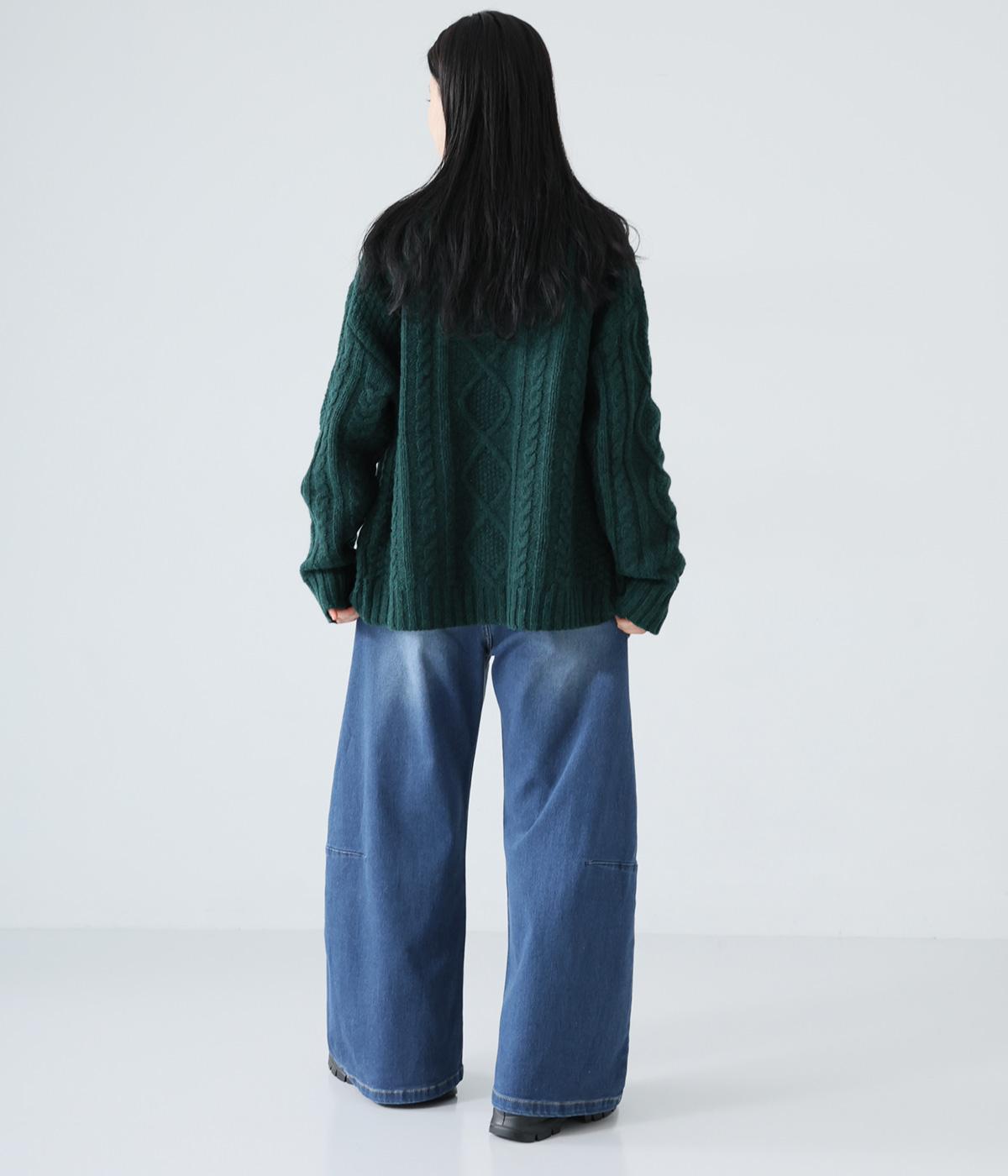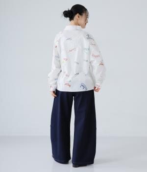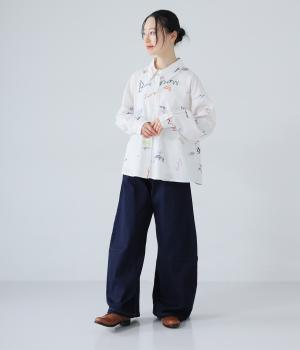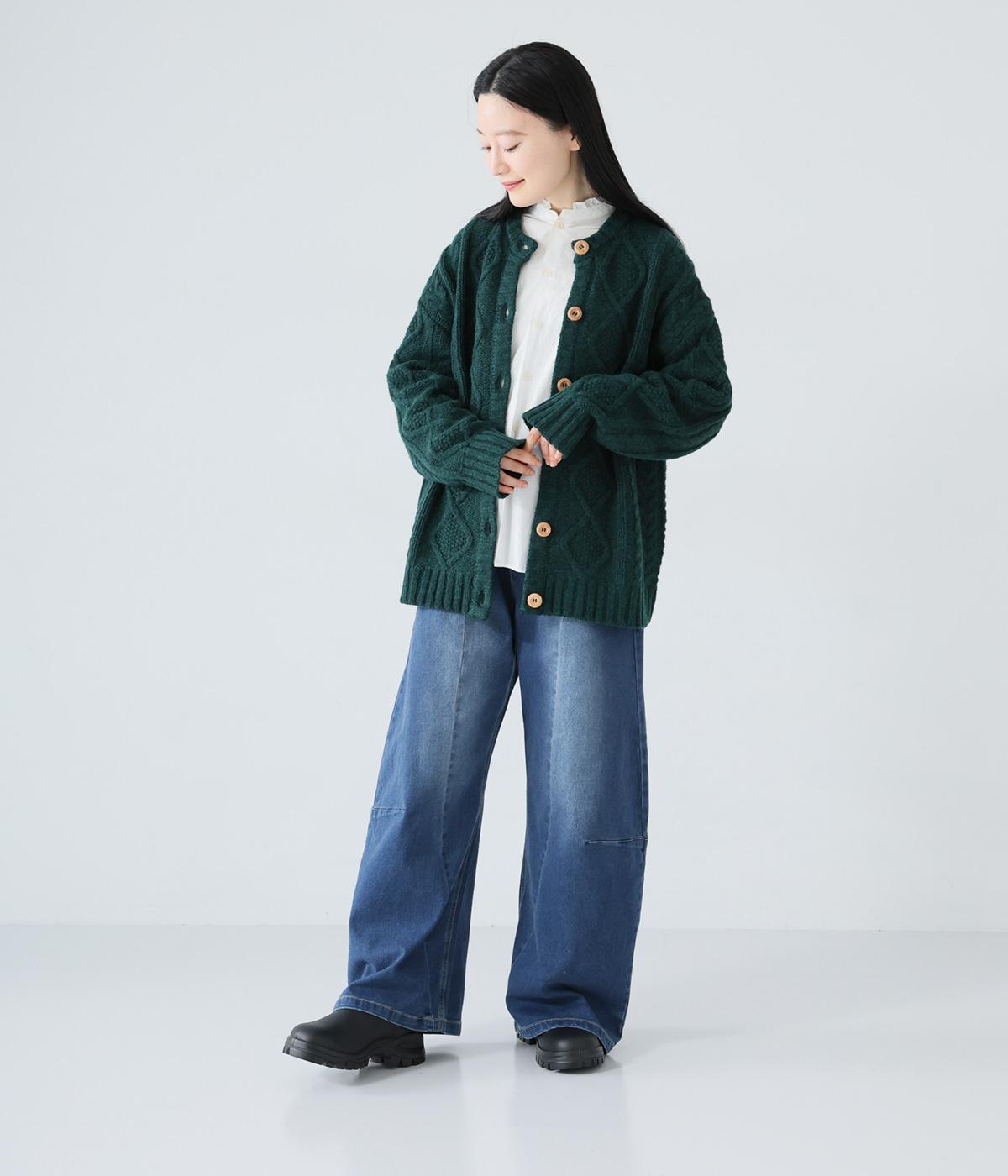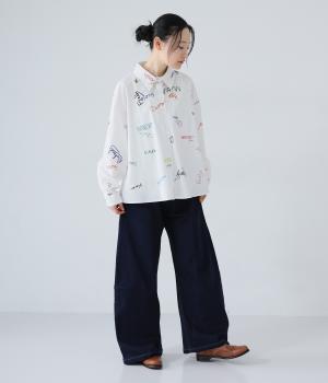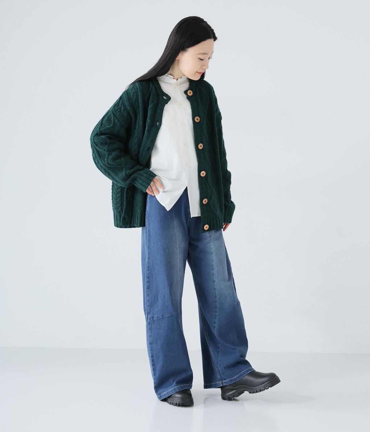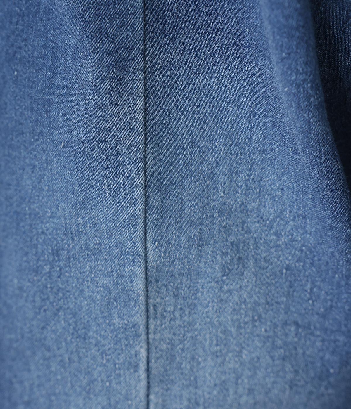 ひざ位置のダーツとフロントに斜めに入れた切り替えラインで、シルエットをカーブさせたデニムパンツ。着こなしにこなれ感をプラスし、おしゃれなムードを高めてくれます。ウエストは後ろのみゴム仕様で、前はボタンとファスナーをあしらいすっきりと仕上げました。