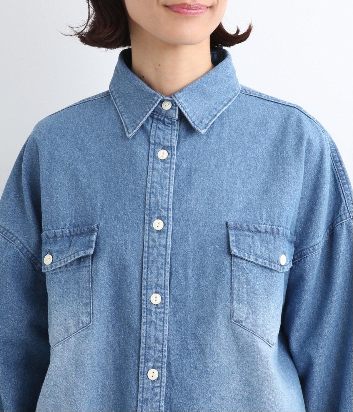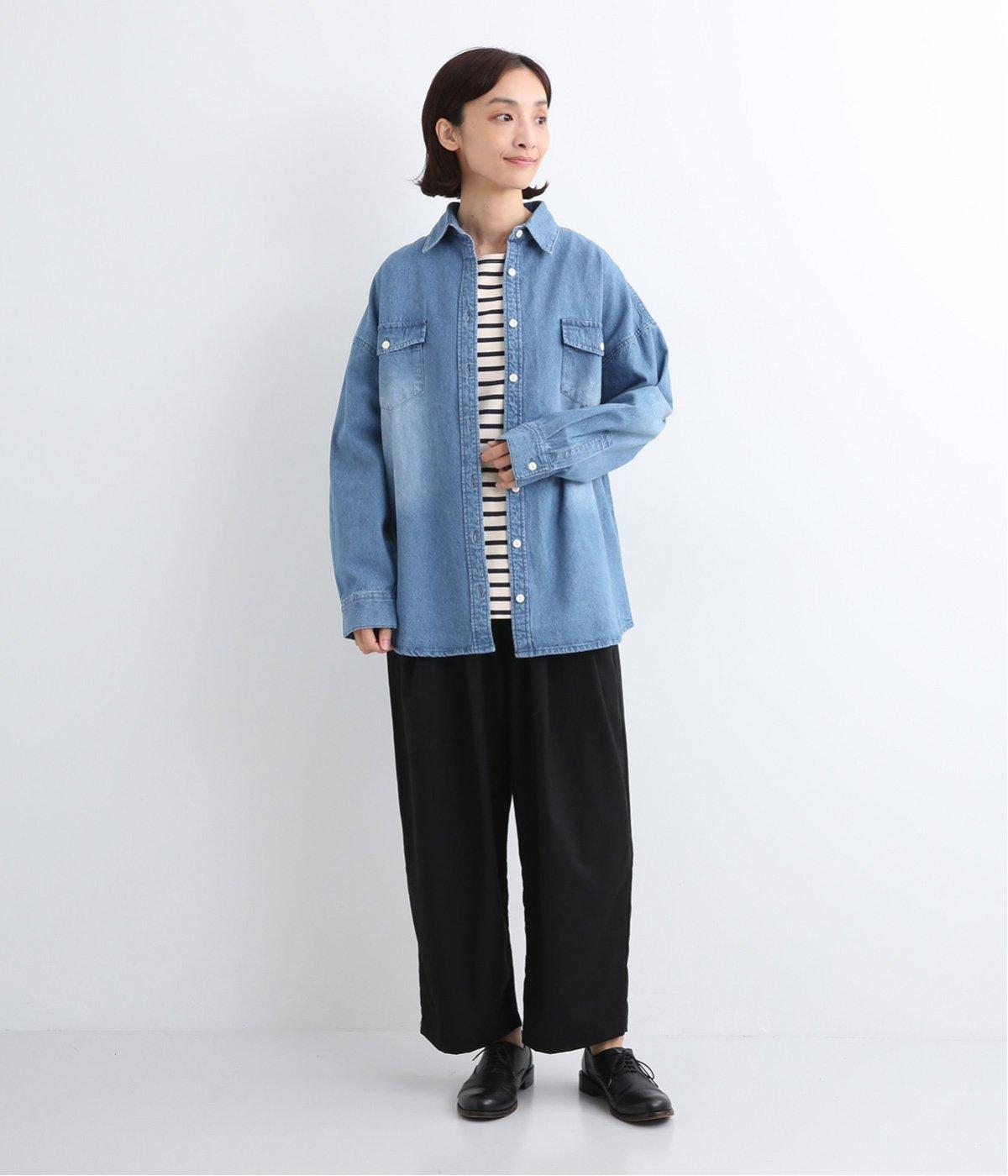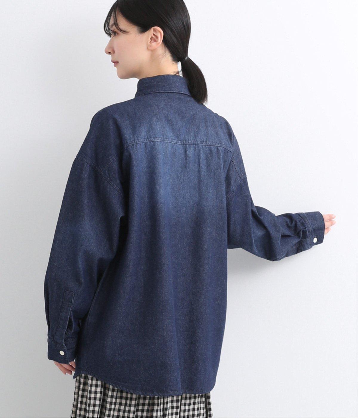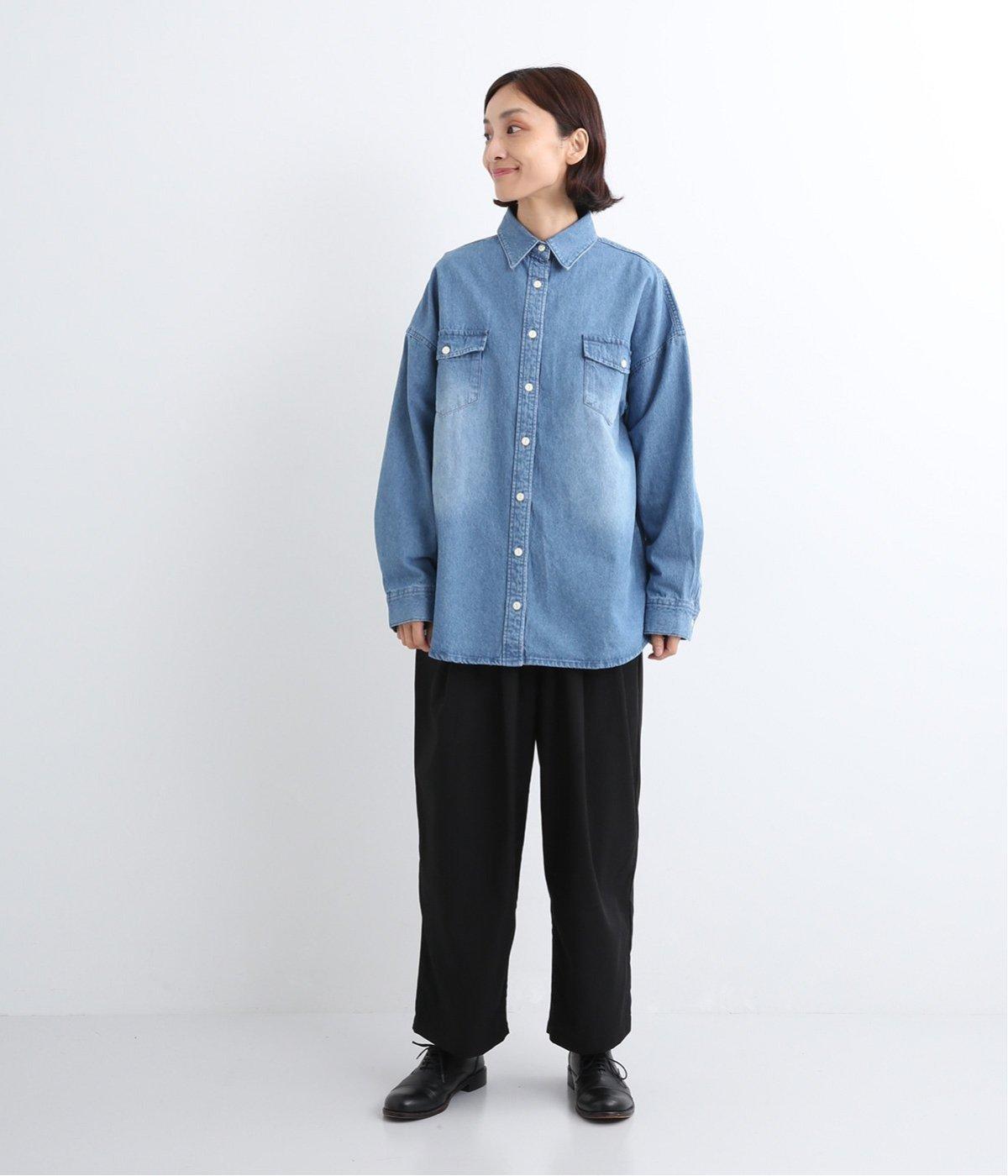 フラップポケットやボタン使いがベーシックながら本格派なデニムシャツ。メンズライクなオーバーサイズですが、すっきりしたデザインなのでさまざまな装いにマッチします。ボタンを閉じて1枚で、開けて羽織りにするなど着まわし力も◎。