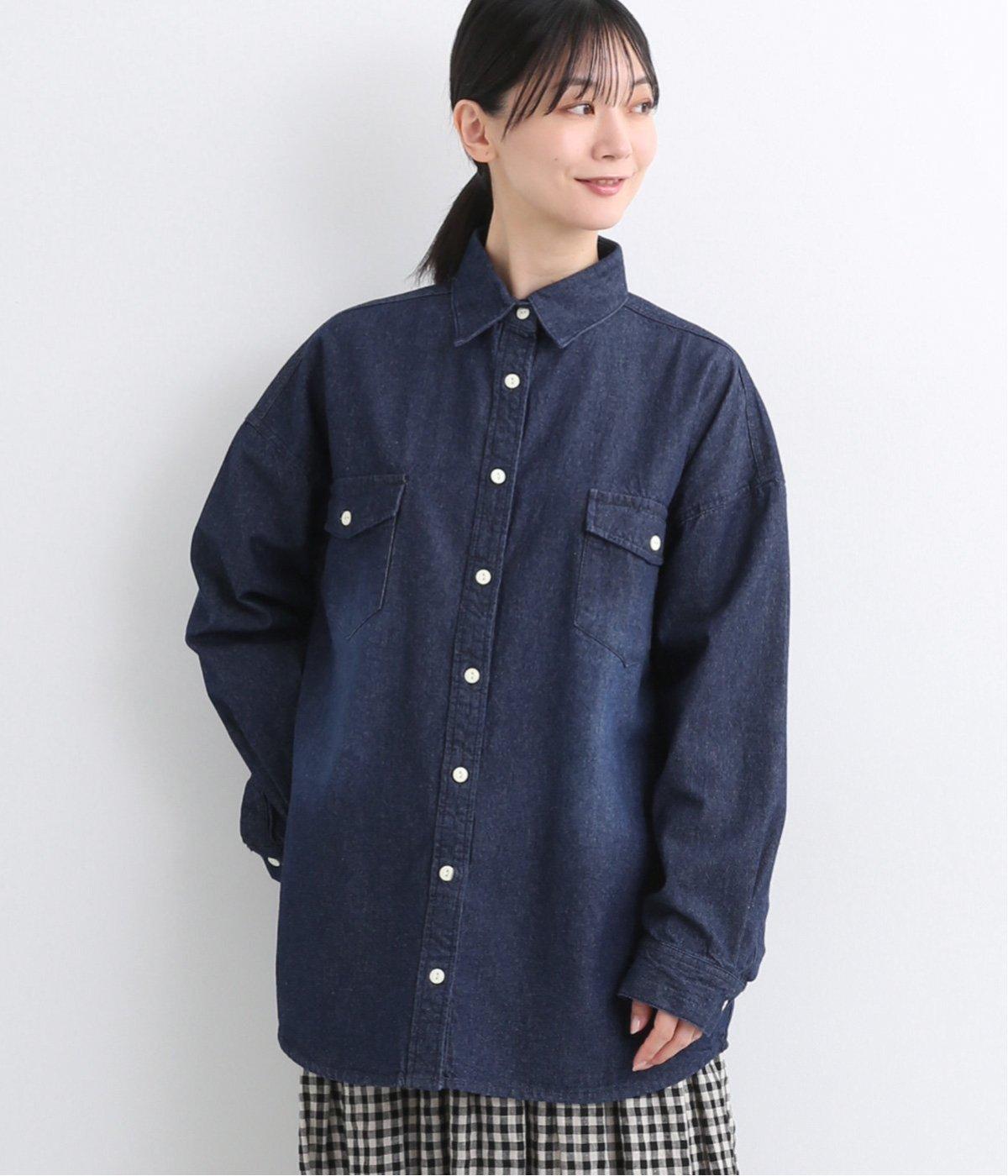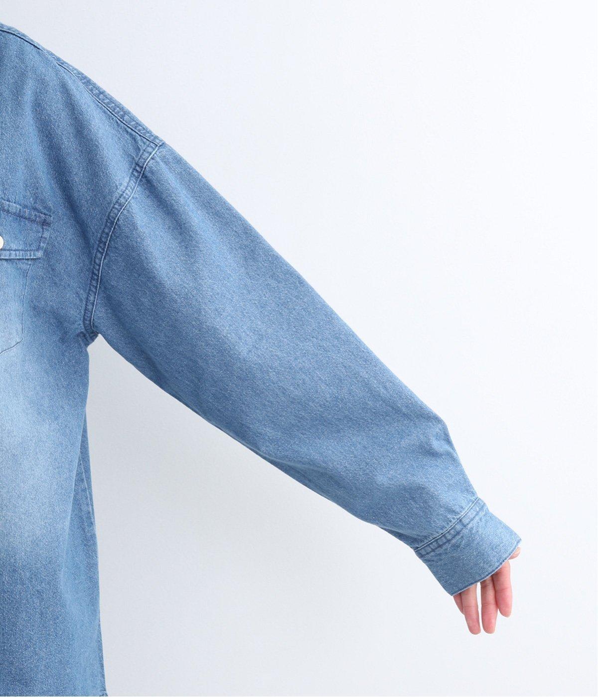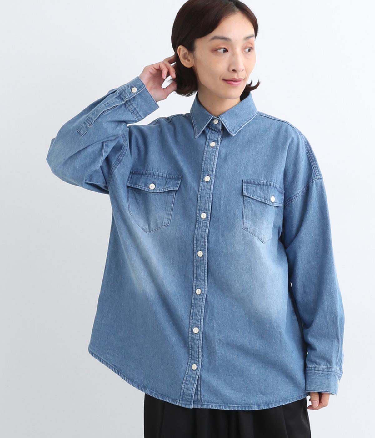 フラップポケットやボタン使いがベーシックながら本格派なデニムシャツ。メンズライクなオーバーサイズですが、すっきりしたデザインなのでさまざまな装いにマッチします。ボタンを閉じて1枚で、開けて羽織りにするなど着まわし力も◎。