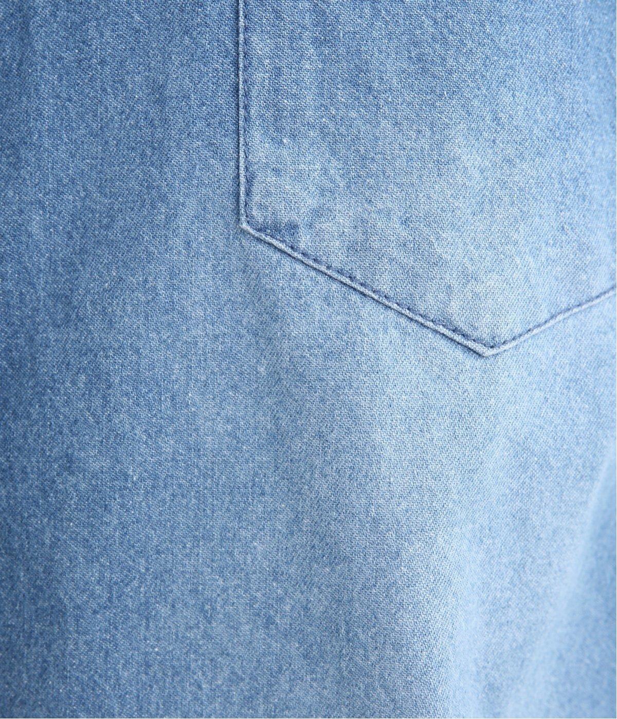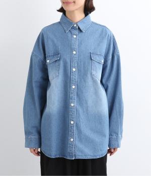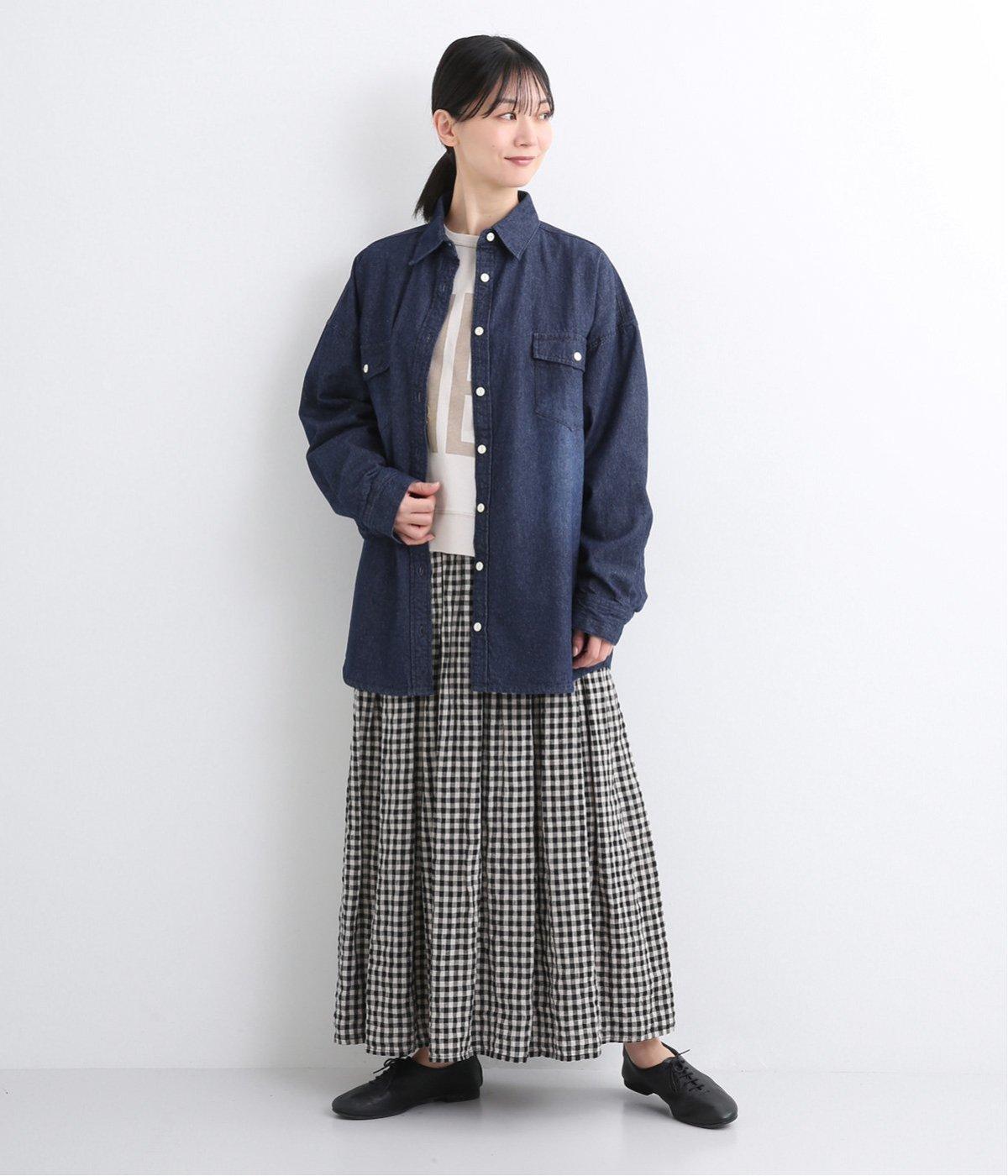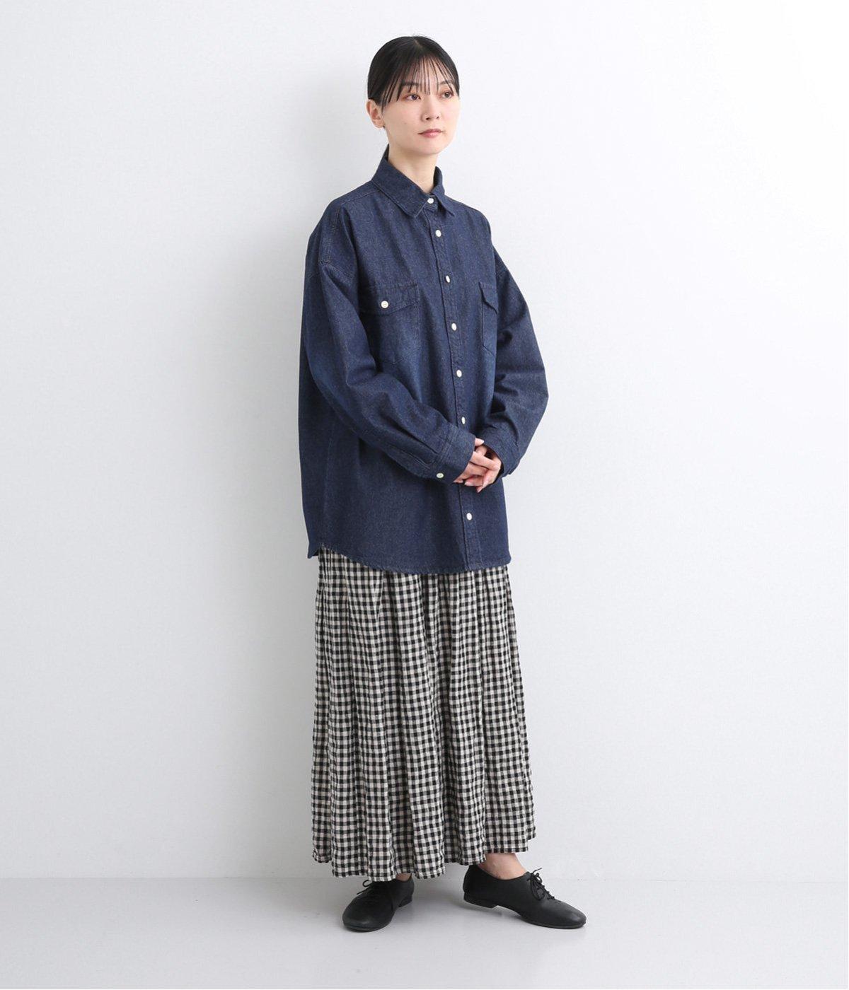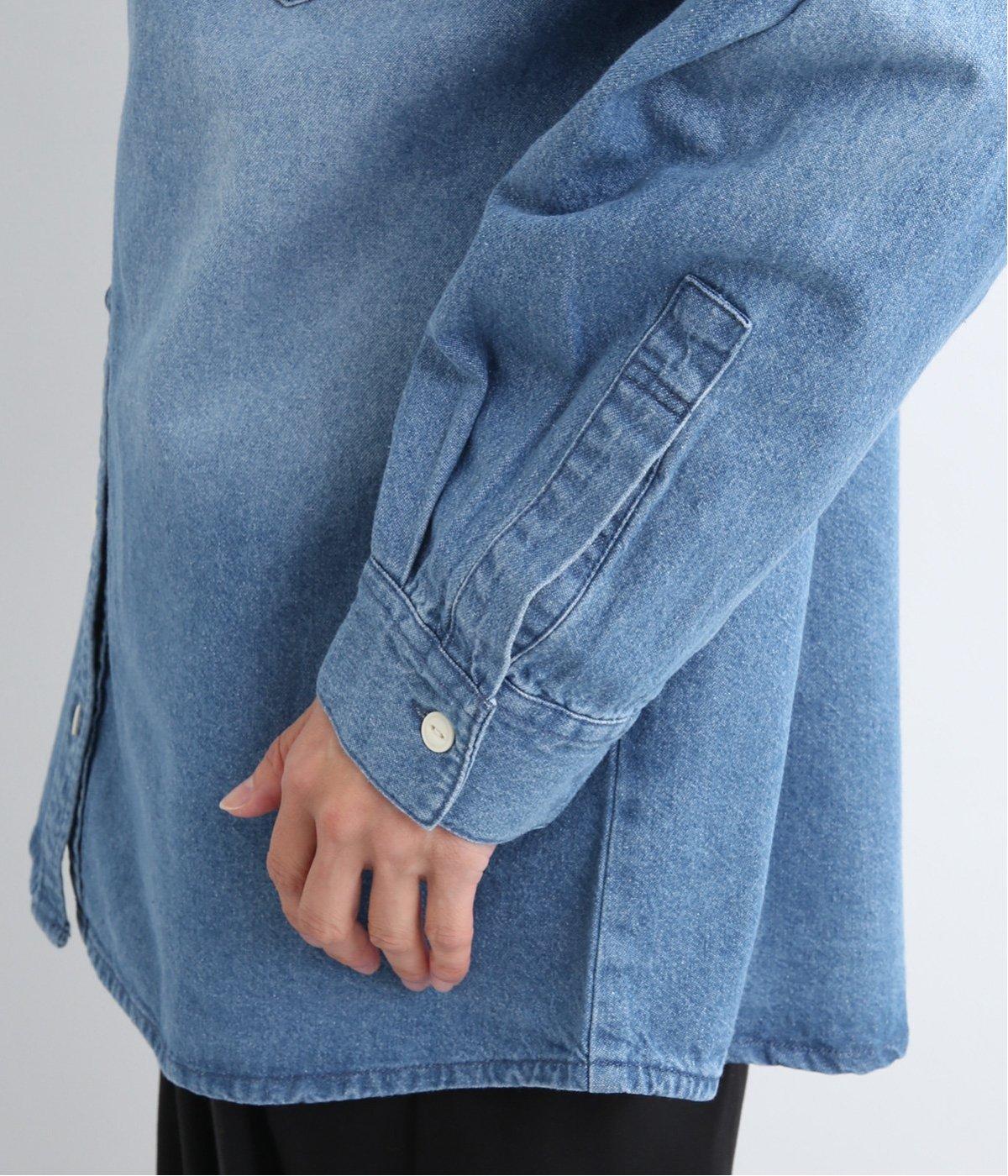 フラップポケットやボタン使いがベーシックながら本格派なデニムシャツ。メンズライクなオーバーサイズですが、すっきりしたデザインなのでさまざまな装いにマッチします。ボタンを閉じて1枚で、開けて羽織りにするなど着まわし力も◎。