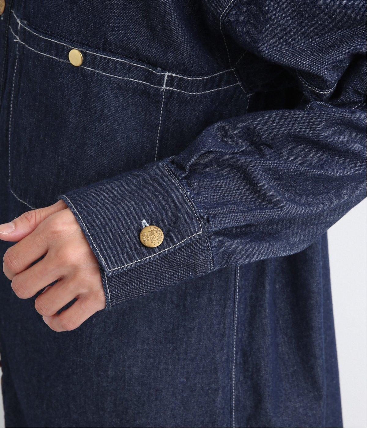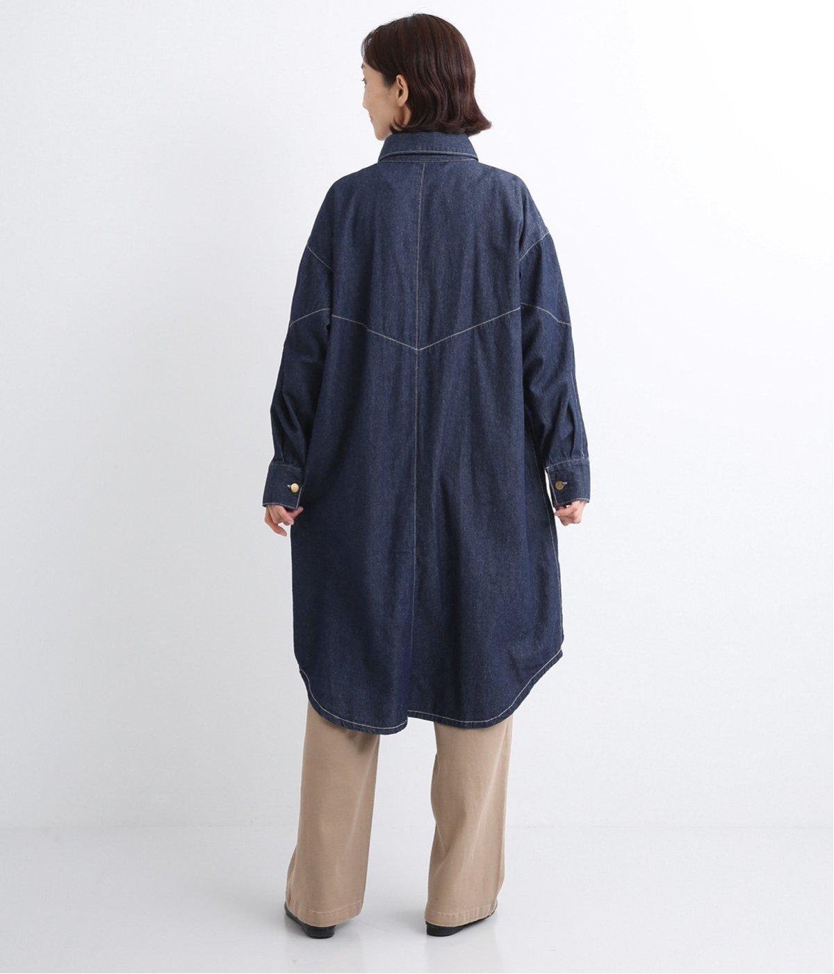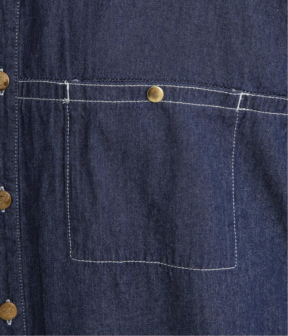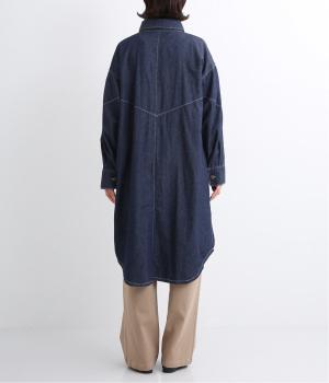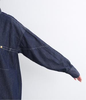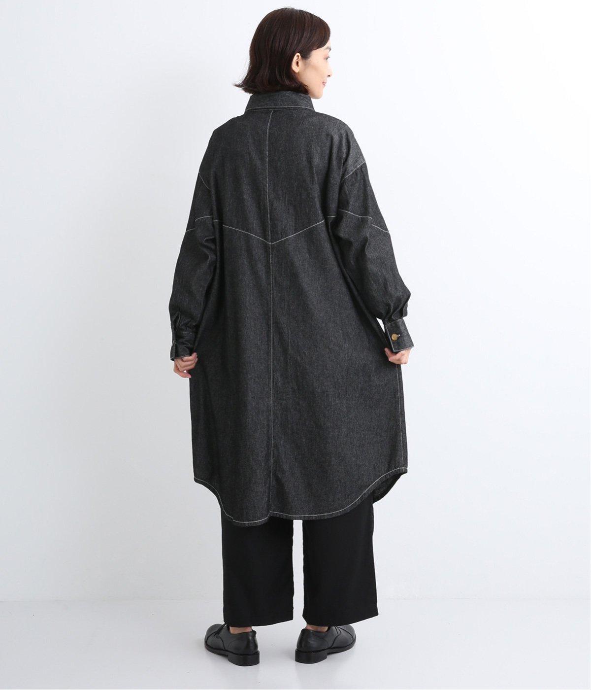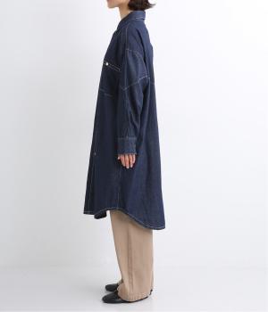 ワーク風ながら無骨すぎないステッチワークで、デザイン性の高いシャツワンピース。前が開くので季節の変わり目の羽織りとしても便利です。ロゴ入りのボタンや大きめのポケットなど細部までこだわりを感じる、長く愛せる1枚です。