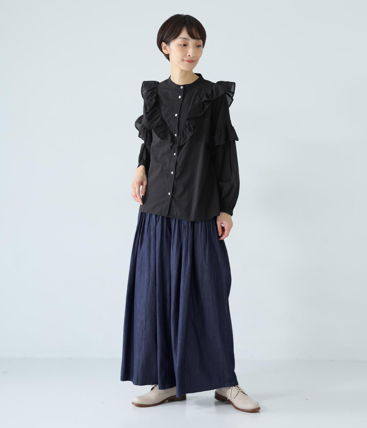軽くてやわらかな薄手のコットンデニム生地がイージーなはき心地を叶えてくれます。季節を問わず、日常の装いに気軽に取り入れやすい生地感です。