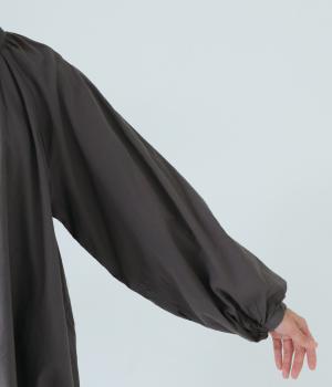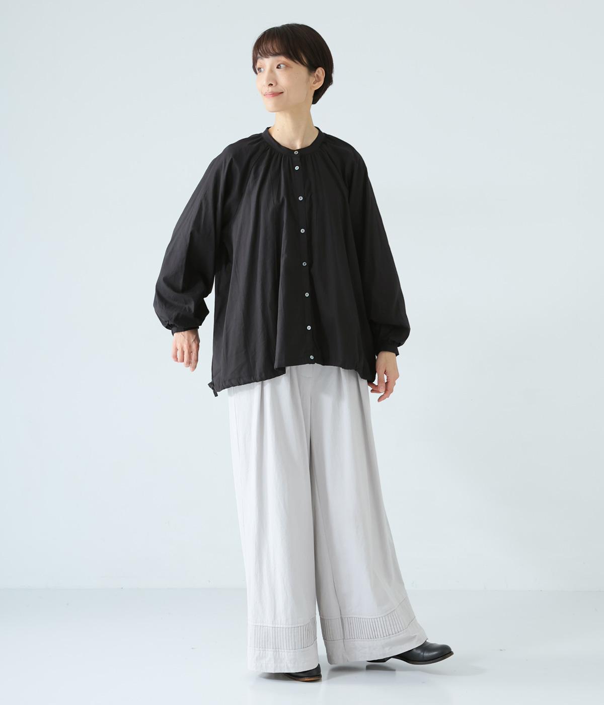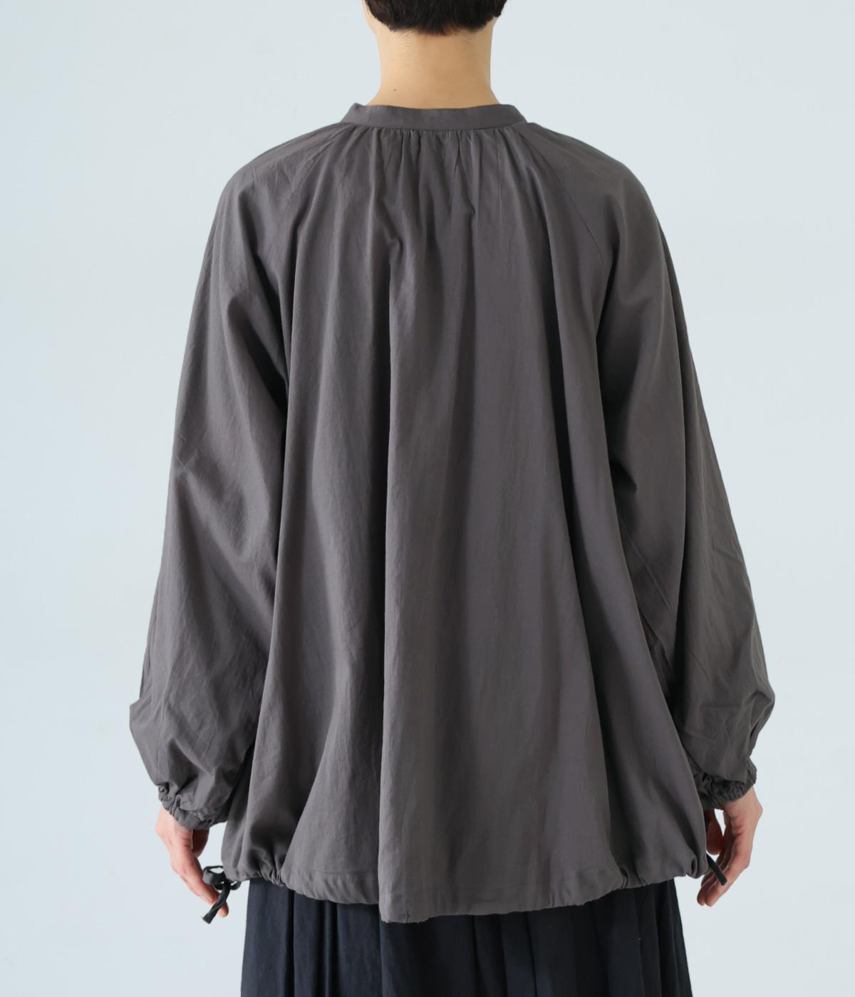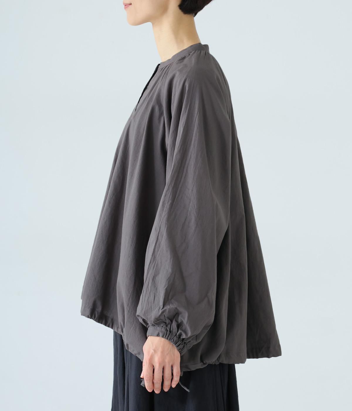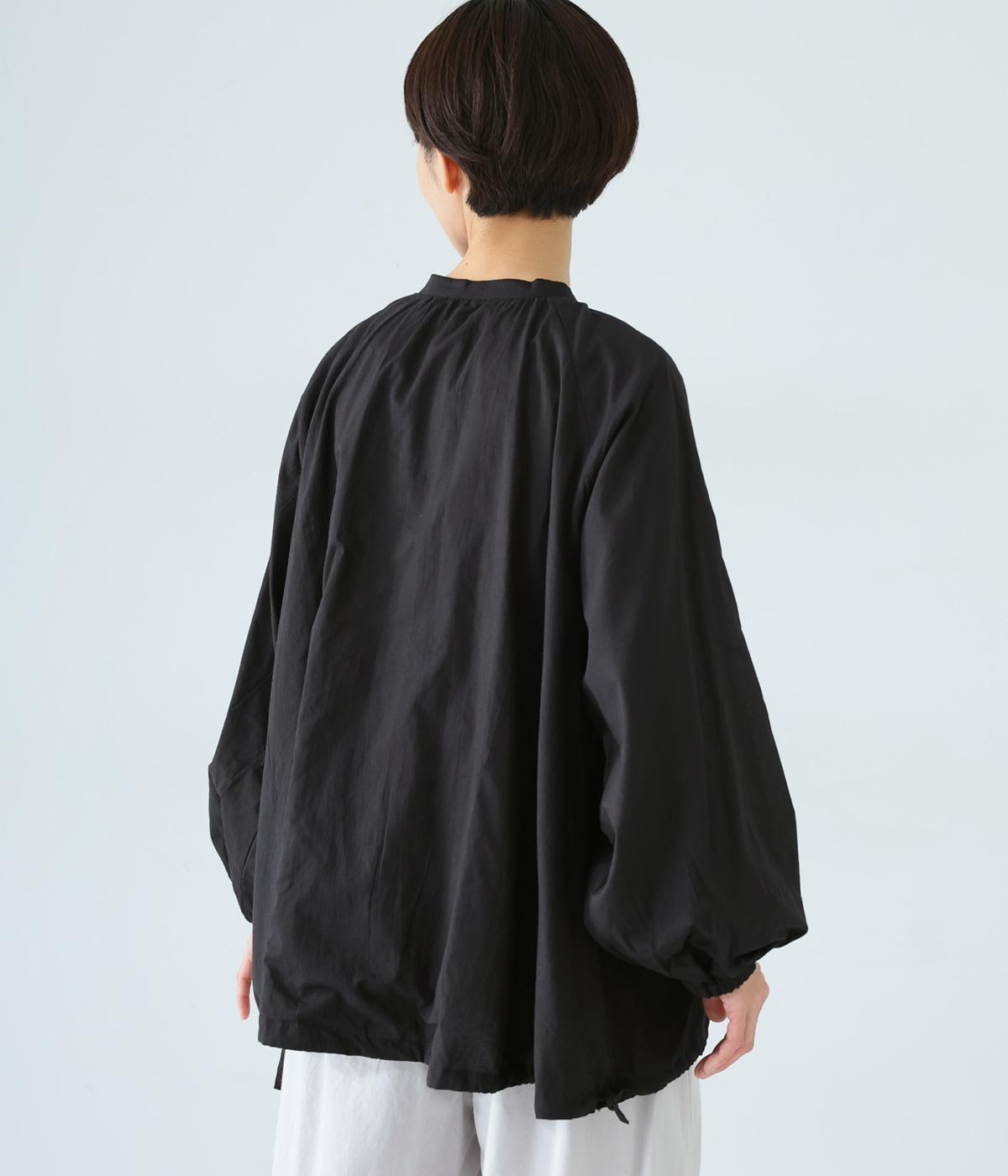 襟ぐりにギャザーをほどこしふんわりとしたシルエットに仕上げたスモックブラウス。袖口をゴムできゅっと引き締めた愛らしいバルーンスリーブがポイントです。裾両サイドの紐を絞れば、丸みのあるシルエットにアレンジできます。