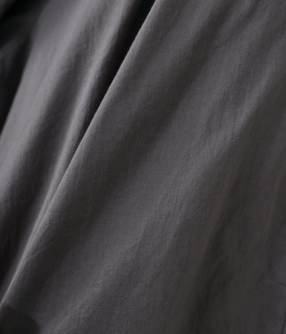 やわらかな風合いとナチュラルな佇まいが魅力の薄手のコットン生地。二重にして透け感をおさえ、ふっくらとした風合いを引き立てました。通気性が高く軽やかなので、ロングシーズンで快適に着ていたただけます。