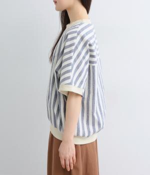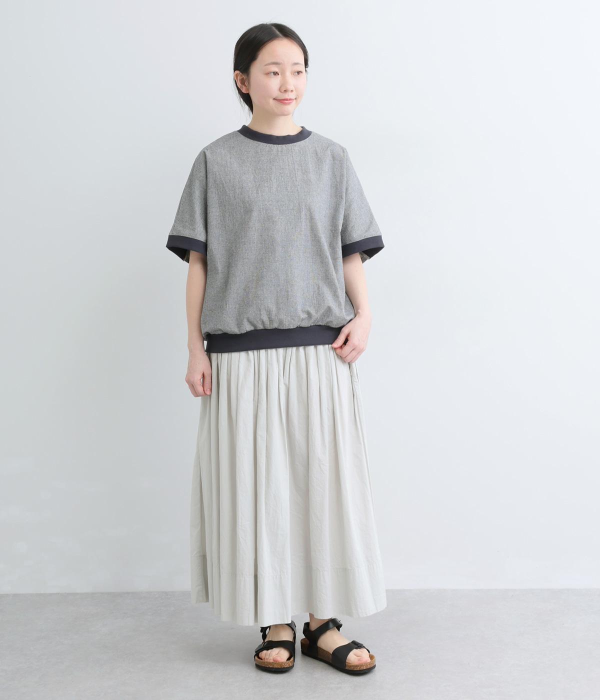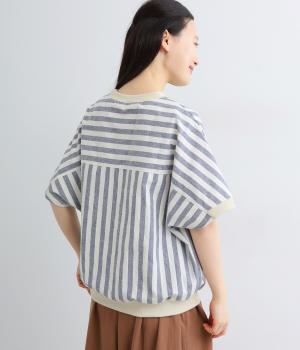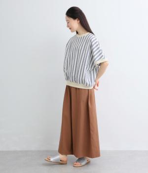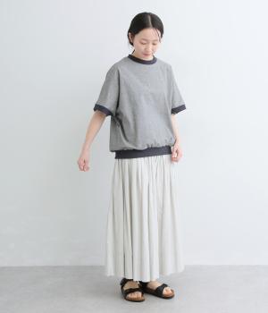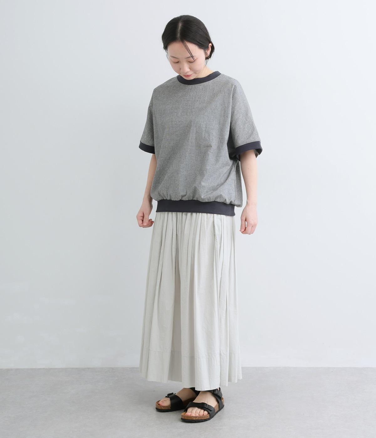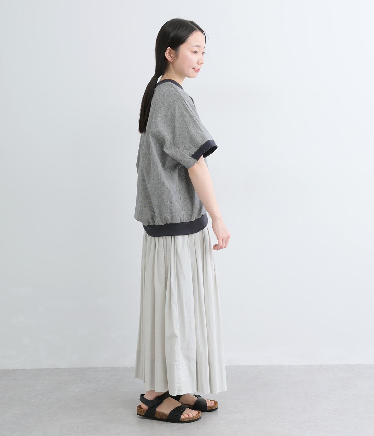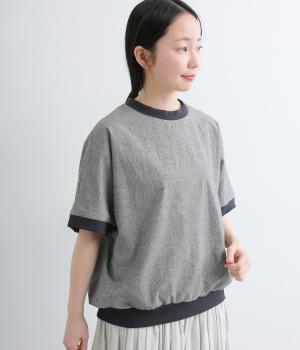袖口や首元、裾にリブをあしらい、シルエットにほどよいメリハリをプラスしました。袖と身頃が一体化したフレンチスリーブが肩のラインを美しく見せ、女性らしい柔らかな印象を与えます。素材の風合いを生かした、一枚で主役になるプルオーバーです。