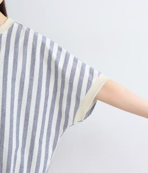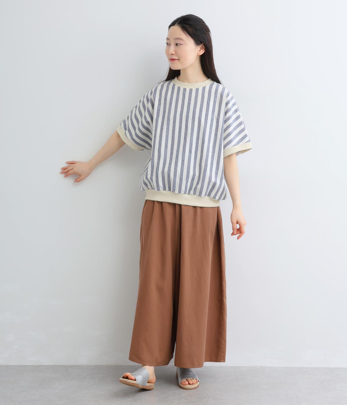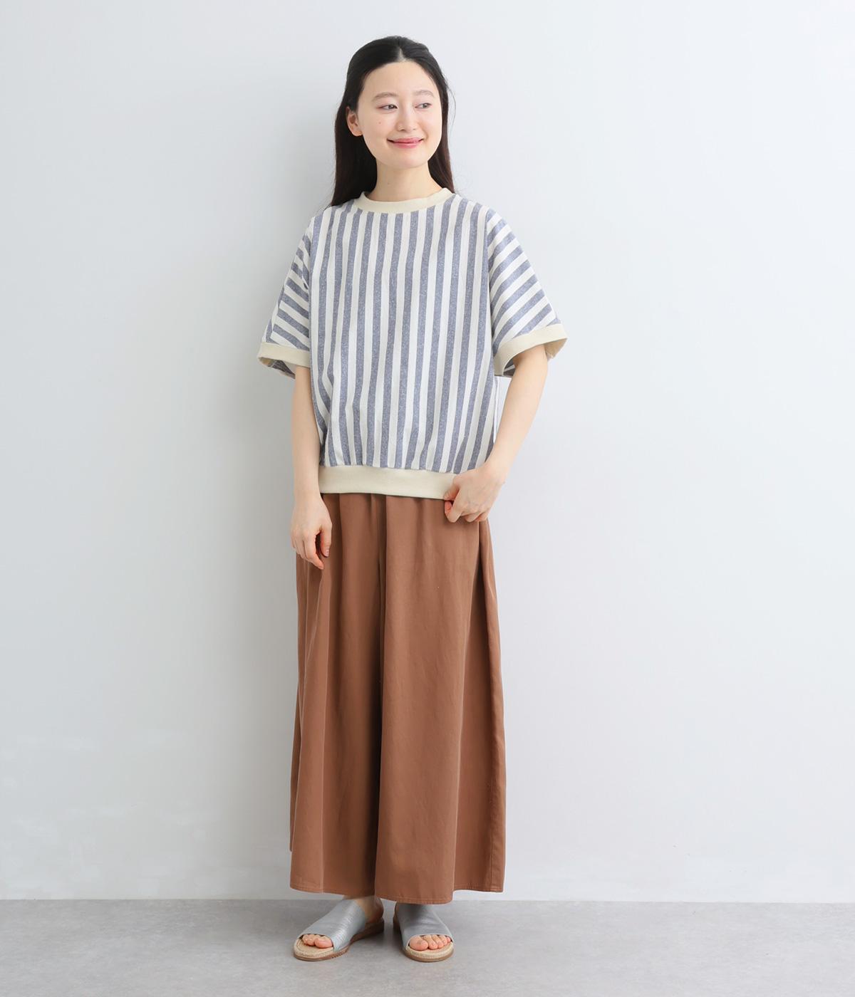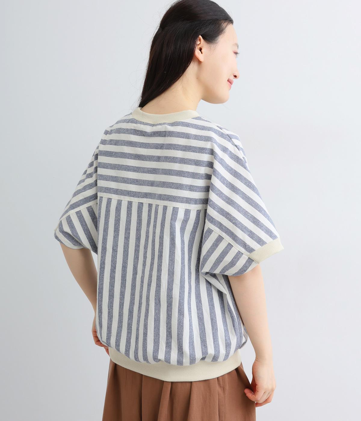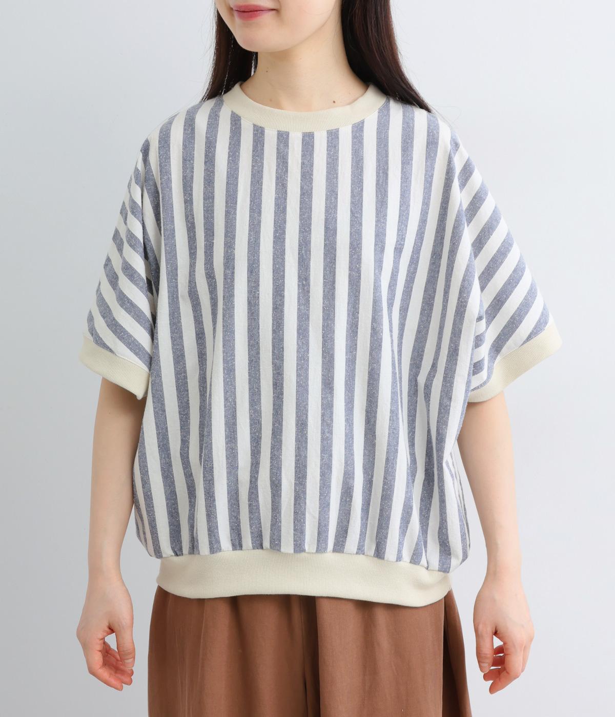 袖口や首元、裾にリブをあしらい、シルエットにほどよいメリハリをプラスしました。袖と身頃が一体化したフレンチスリーブが肩のラインを美しく見せ、女性らしい柔らかな印象を与えます。素材の風合いを生かした、一枚で主役になるプルオーバーです。