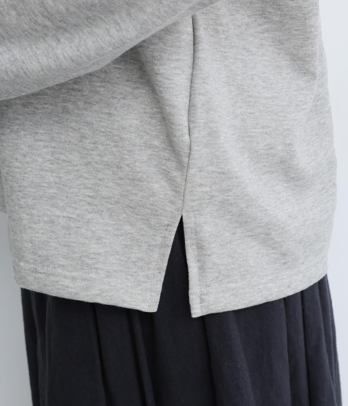 やわらかく肌ざわりの良いふっくらとしたコットンミニ裏毛素材で仕上げました。肉厚すぎないので羽織りも合わせやすく、ロングシーズン着まわせます。