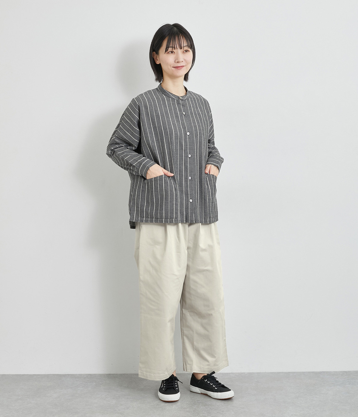 - ※お持ちのアイテムを平置きの状態で計測の上、サイズ表の寸法と比較してご検討ください。