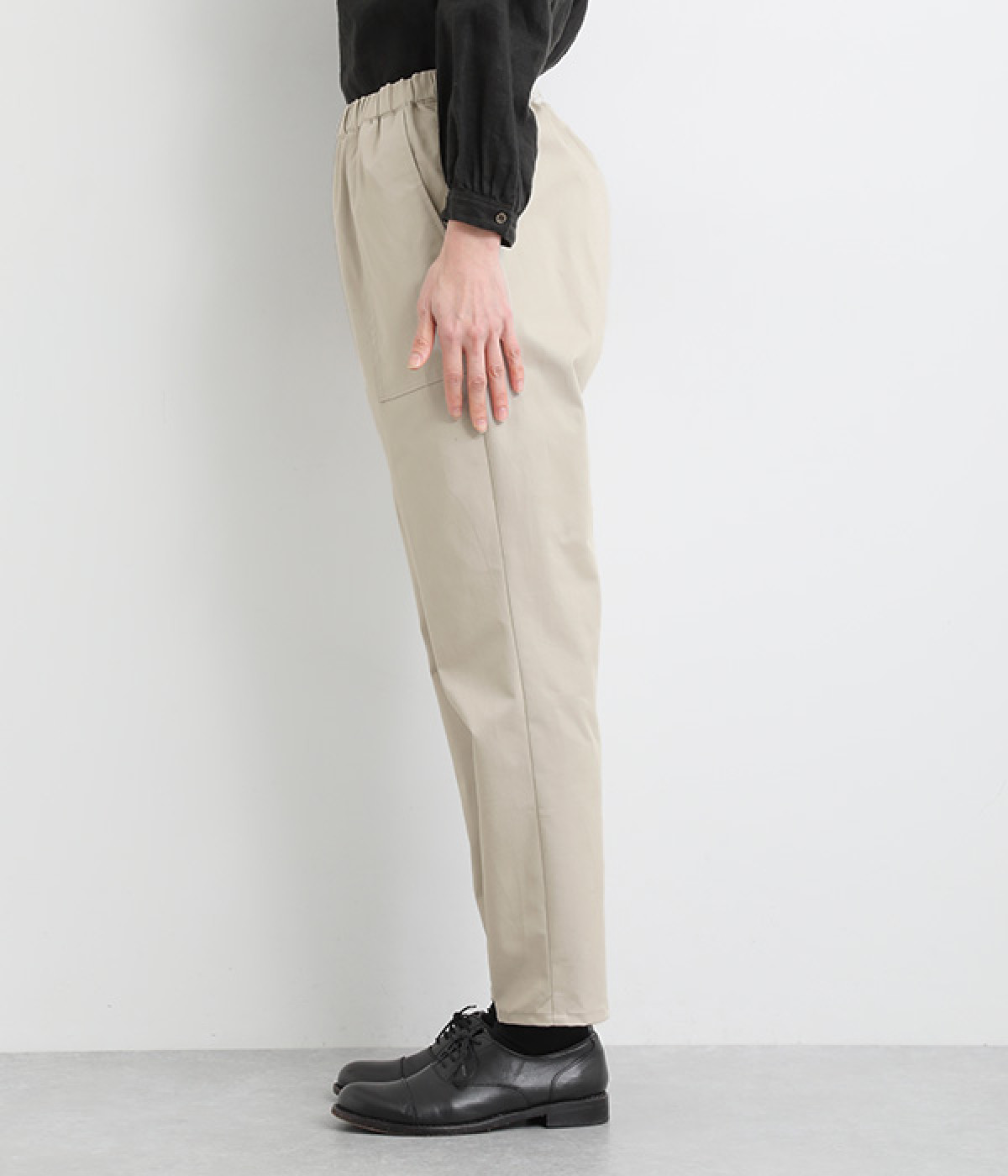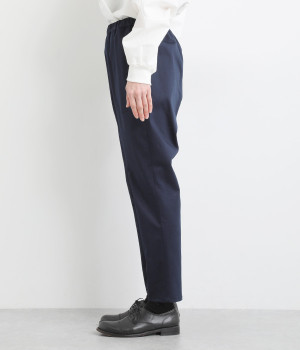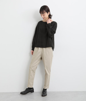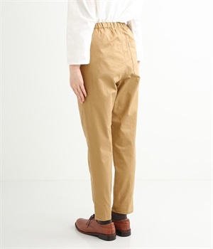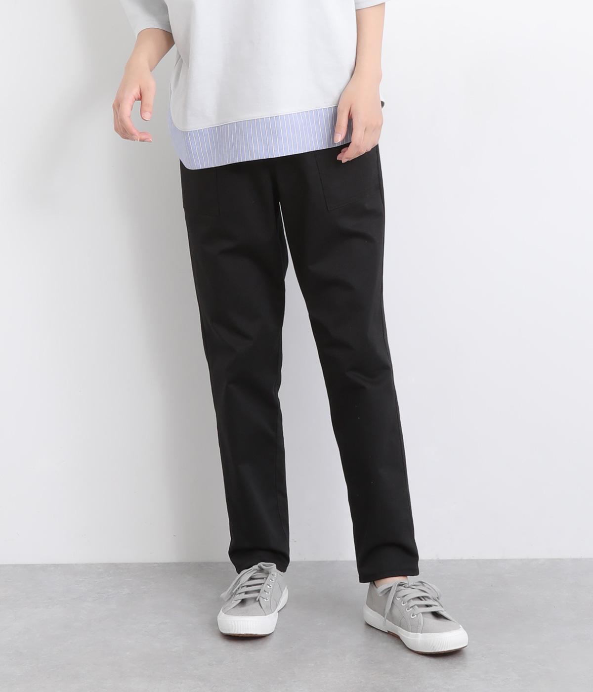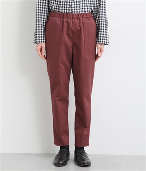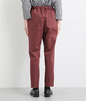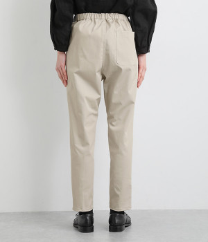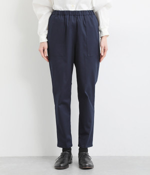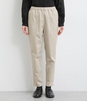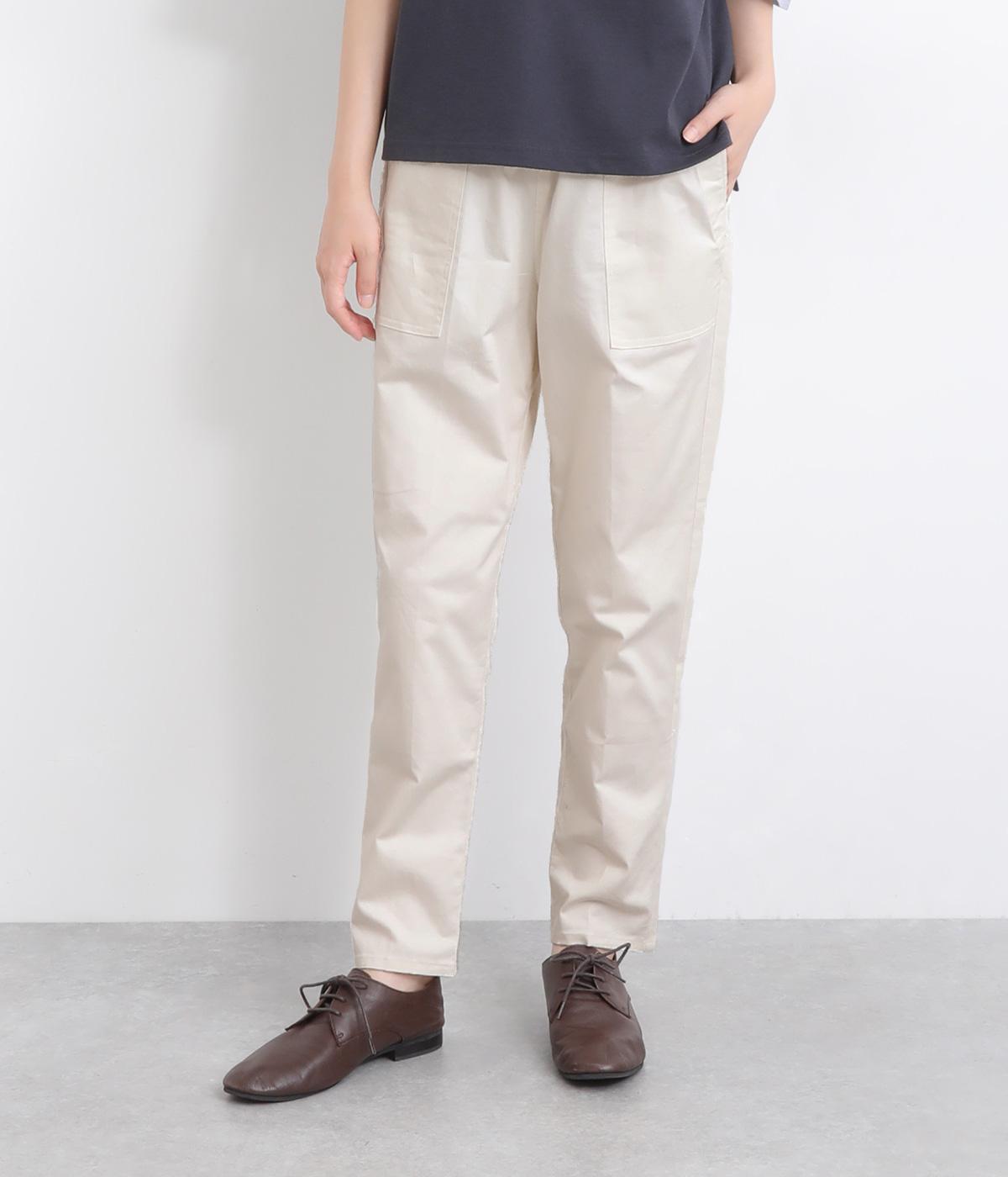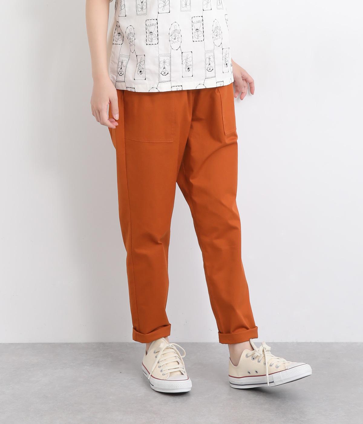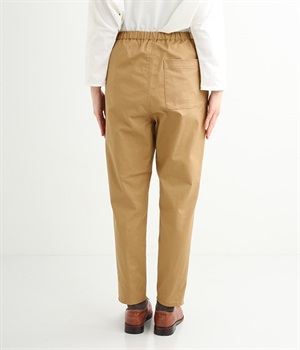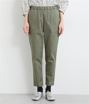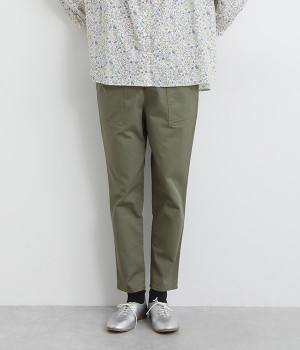 ウエストゴム仕様のはき心地にこだわったイージーパンツ。太ももまわりにややゆとりを持たせた丸みのあるシルエットに、ワーク調のアウトポケットが特徴的。足元にかけてすっきりさせたメリハリあるシルエットで、ラフにロールアップするのもおすすめです。