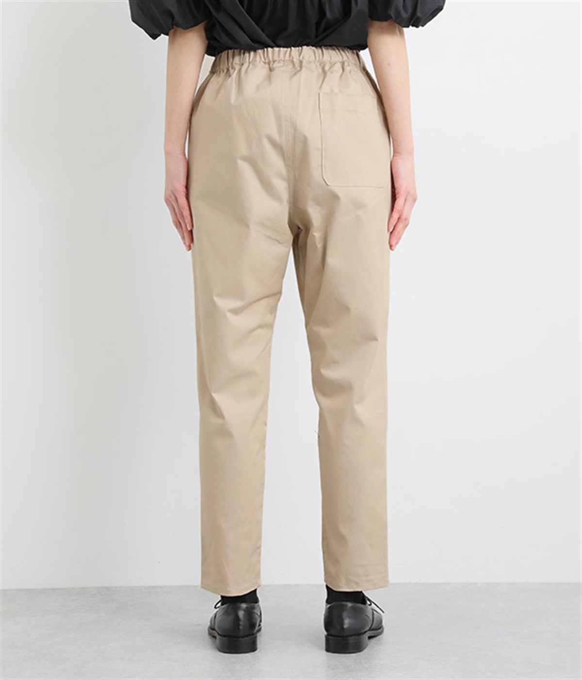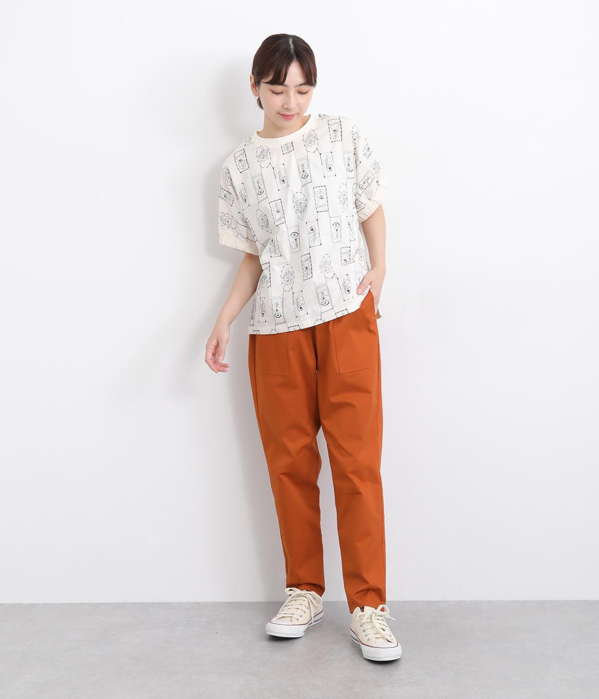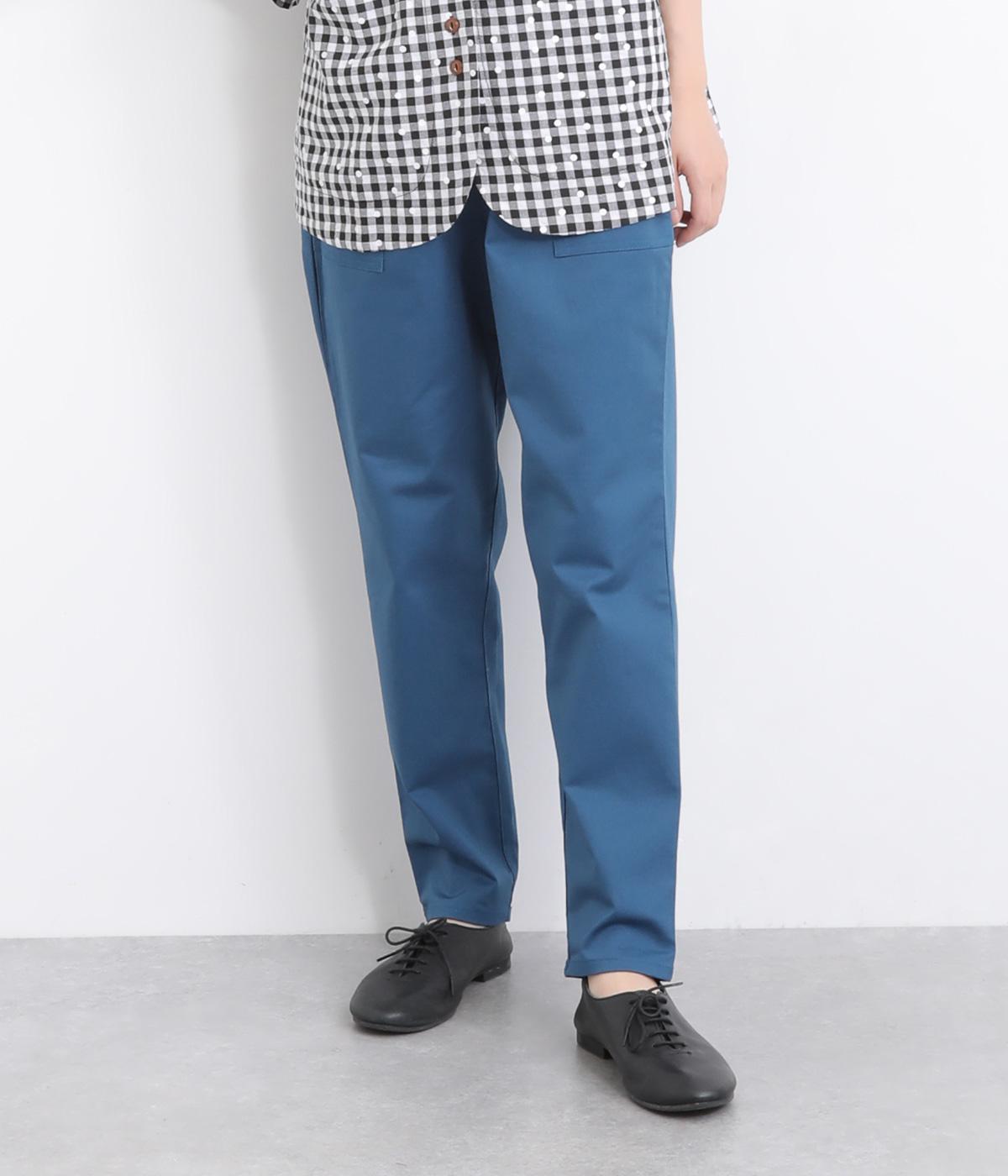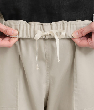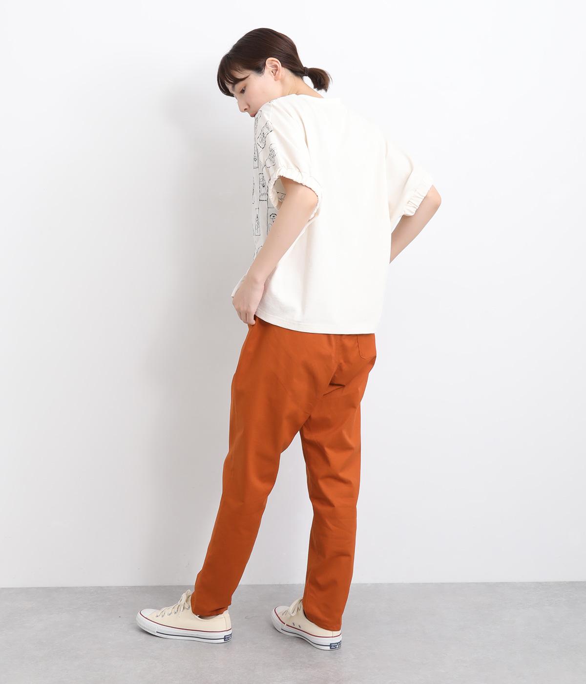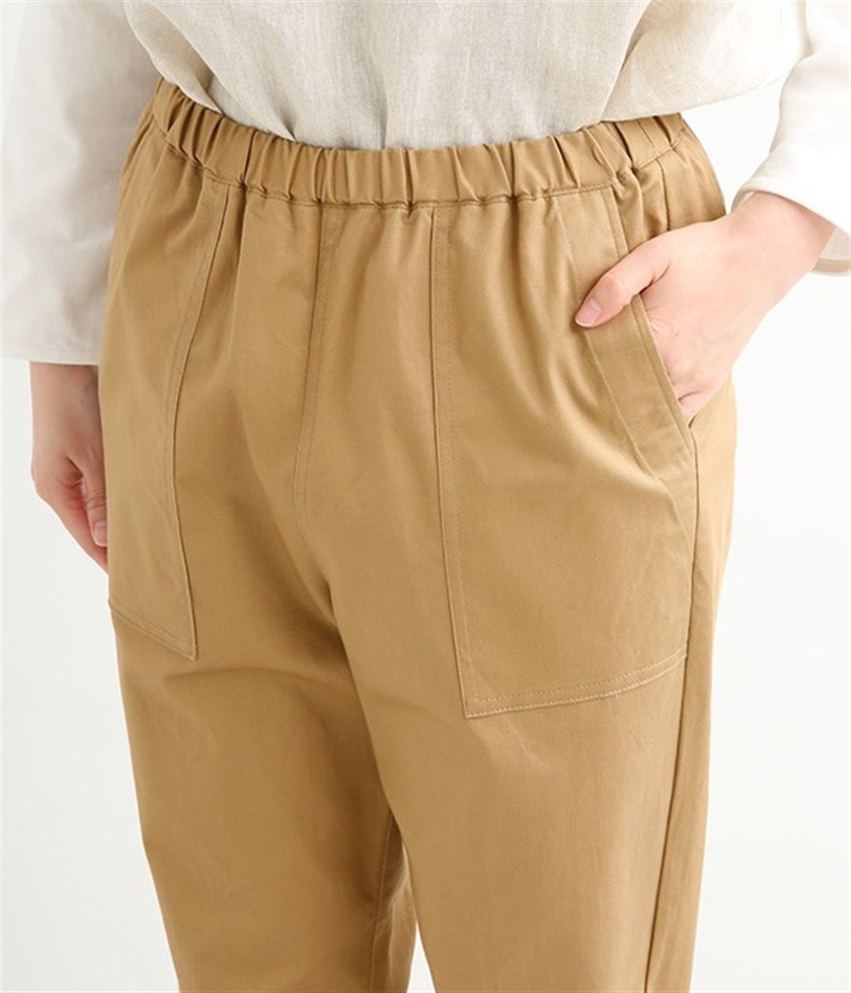 ウエストゴム仕様のはき心地にこだわったイージーパンツ。太ももまわりにややゆとりを持たせた丸みのあるシルエットに、ワーク調のアウトポケットが特徴的。足元にかけてすっきりさせたメリハリあるシルエットで、ラフにロールアップするのもおすすめです。