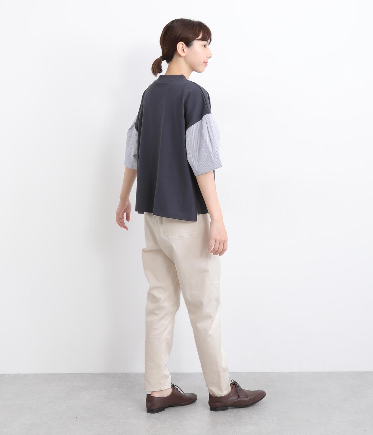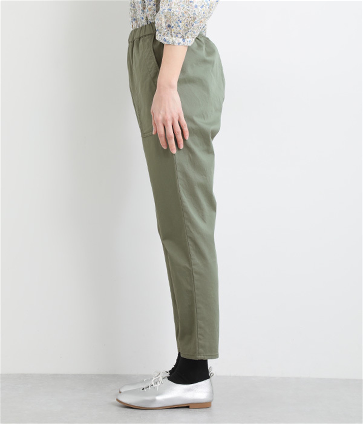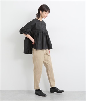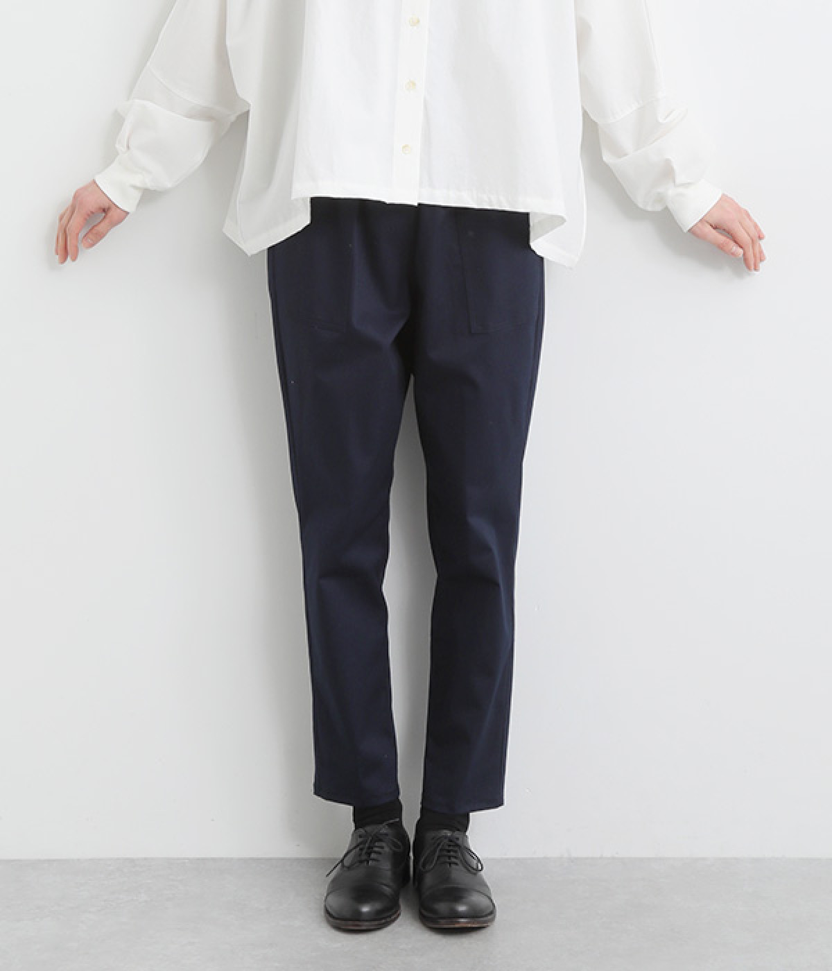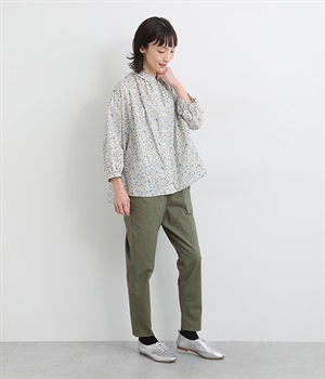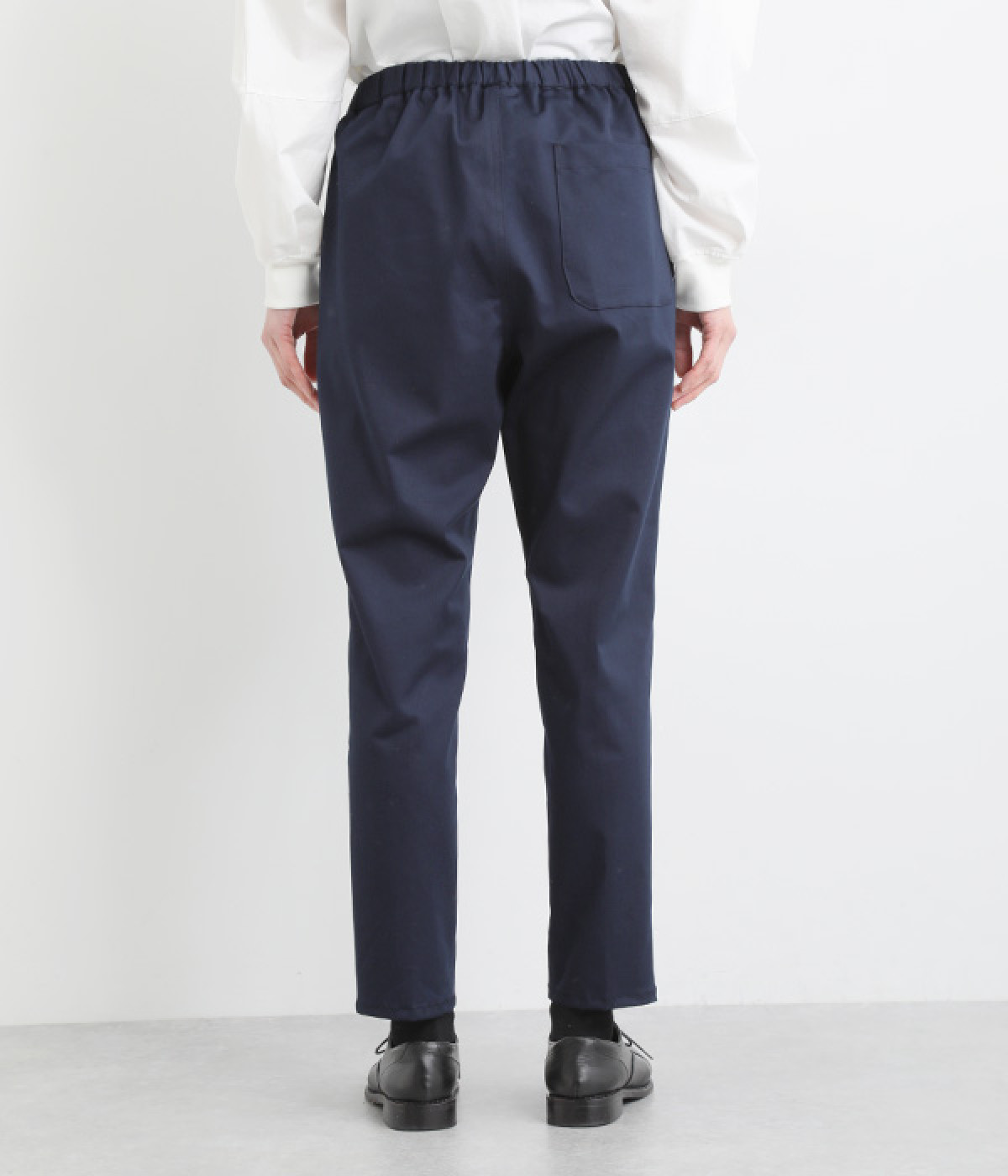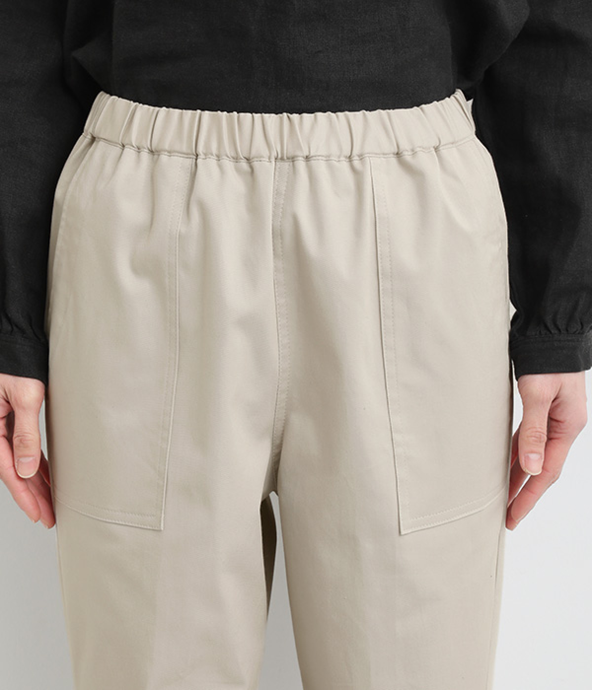 ウエストゴム仕様のはき心地にこだわったイージーパンツ。太ももまわりにややゆとりを持たせた丸みのあるシルエットに、ワーク調のアウトポケットが特徴的。足元にかけてすっきりさせたメリハリあるシルエットで、ラフにロールアップするのもおすすめです。