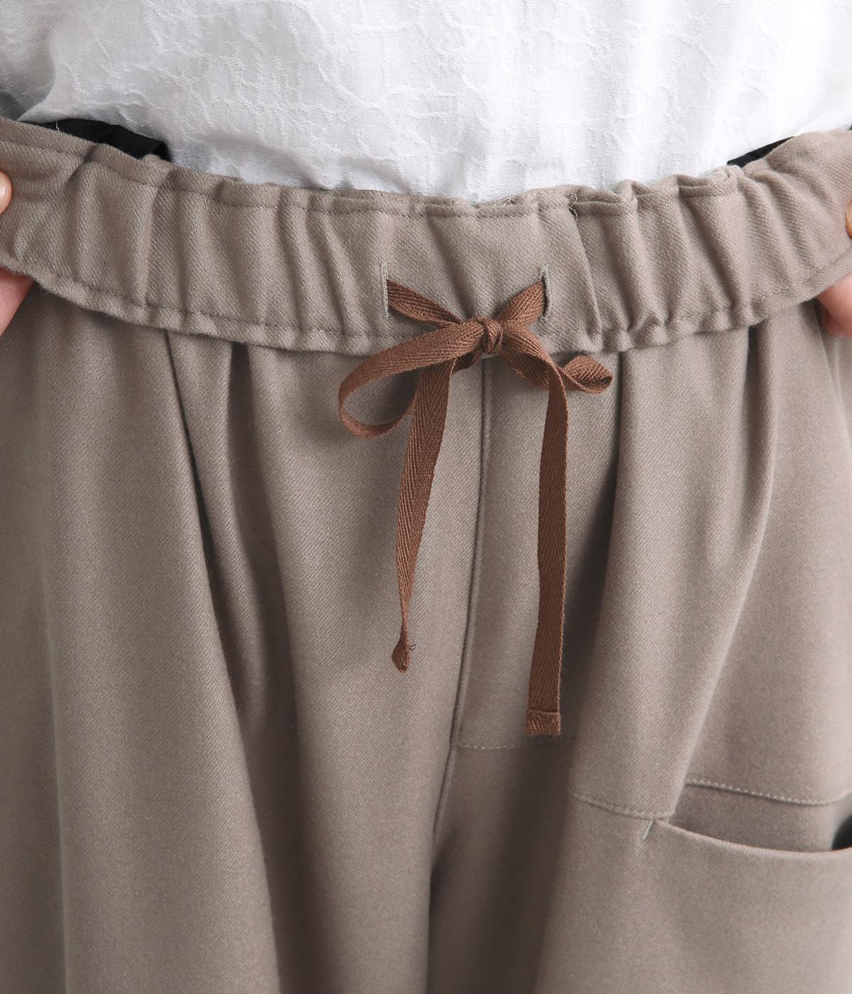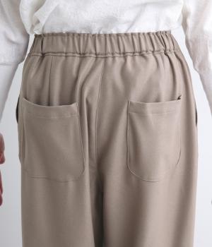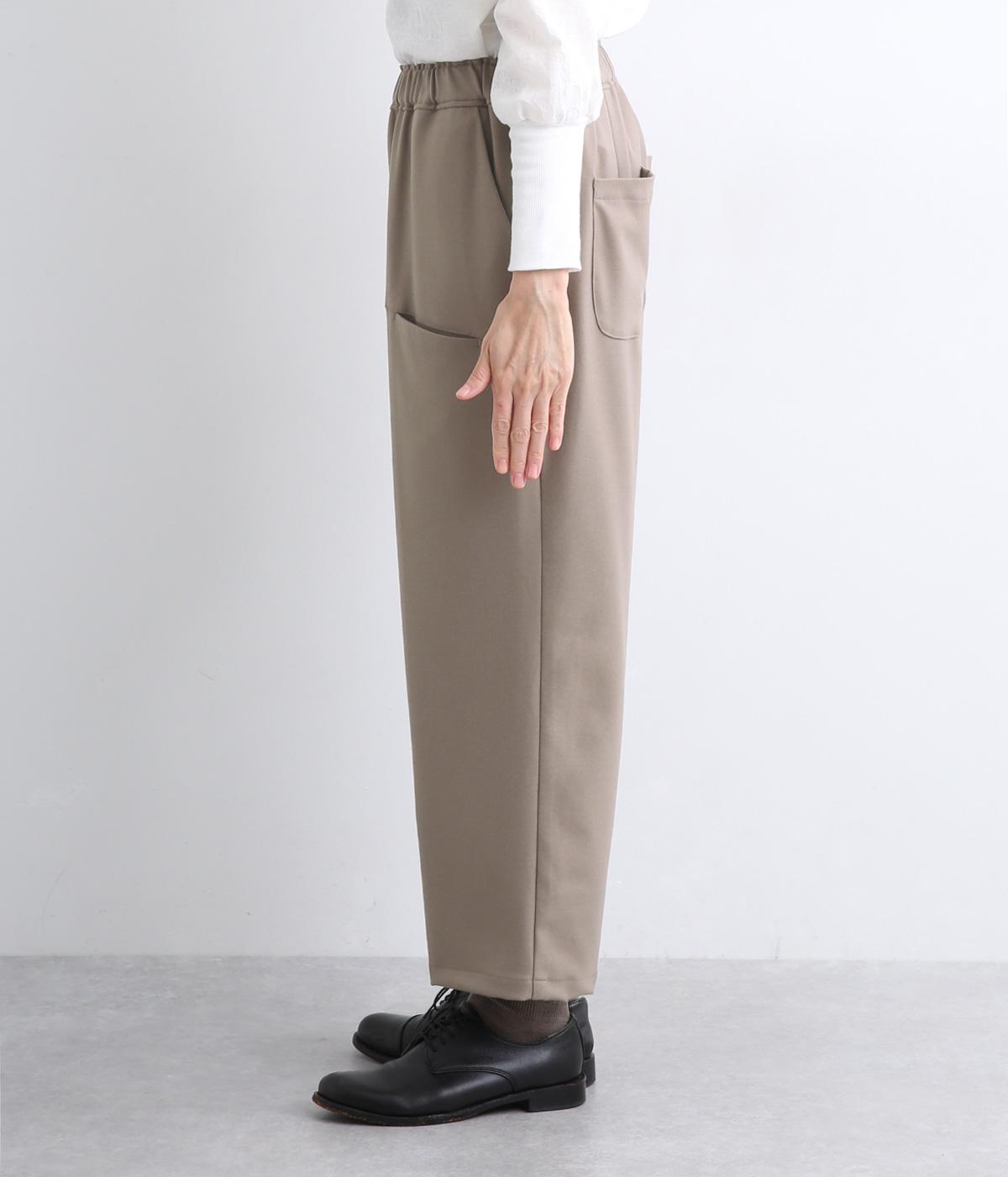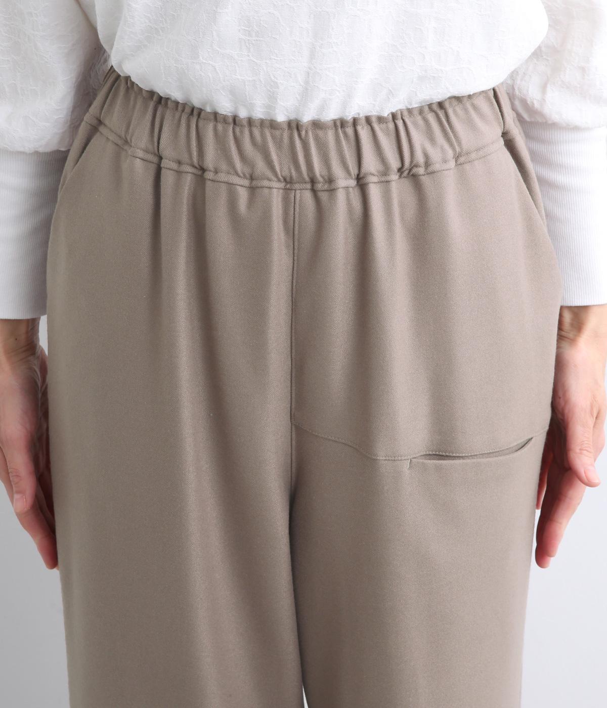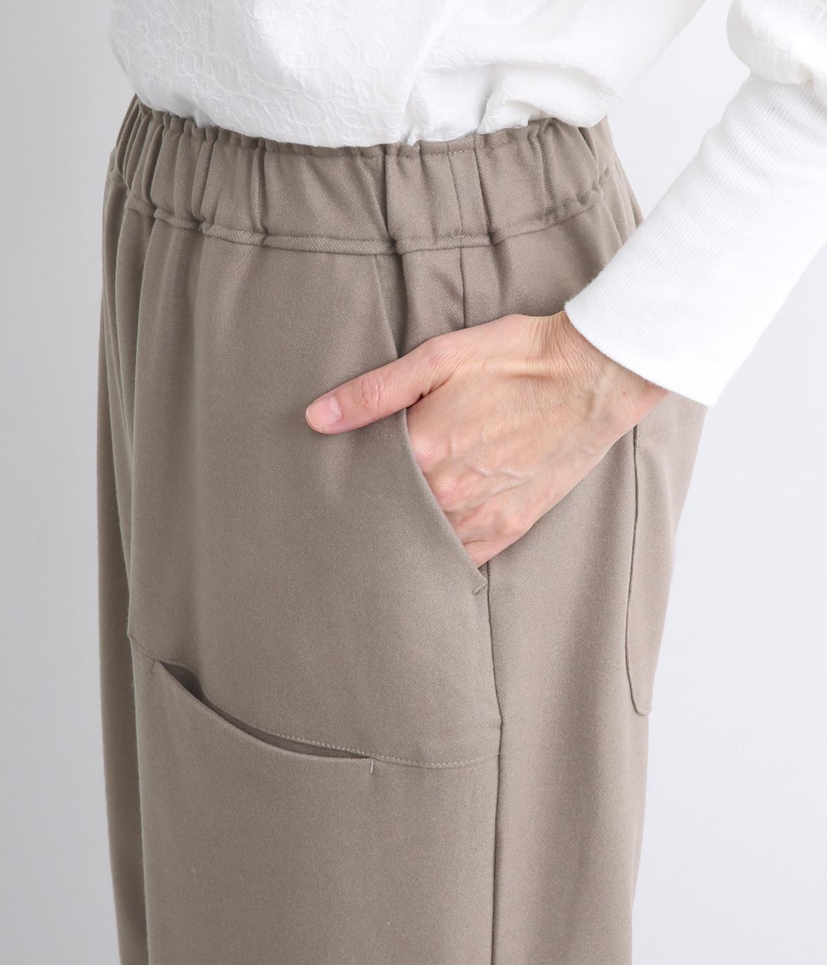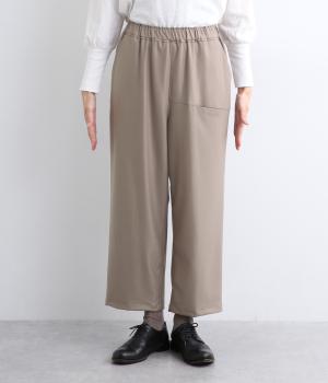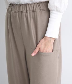シンプルなシルエットに前ポケットをアクセントに添えたパンツ。落ち感のある素材で体のラインをひろいにくく、すっきりとした丈感がこなれ感を演出します。ウエストゴムでリラックスした穿き心地も魅力です。