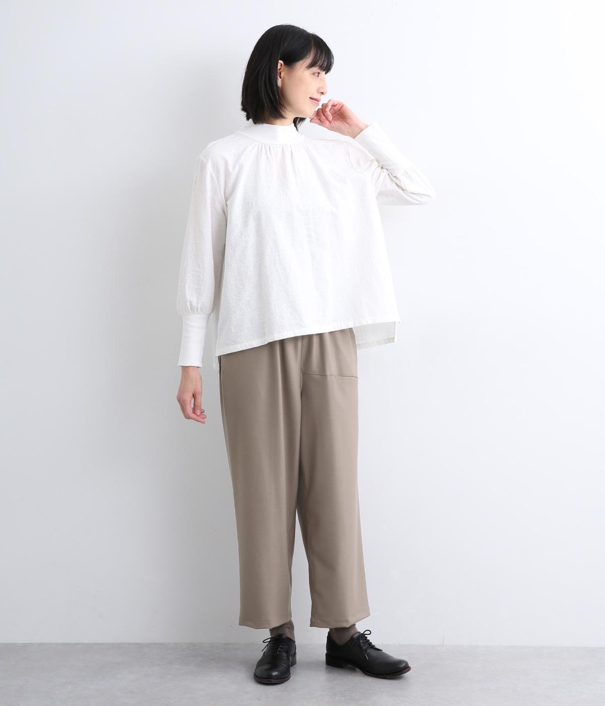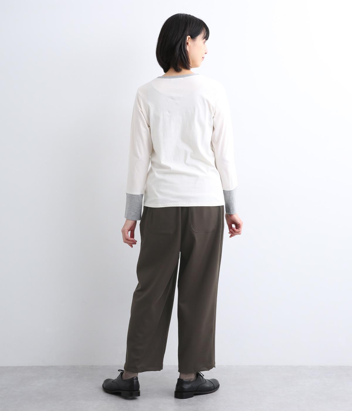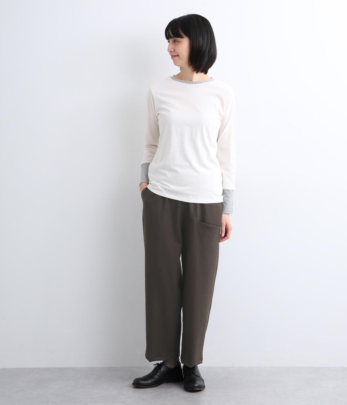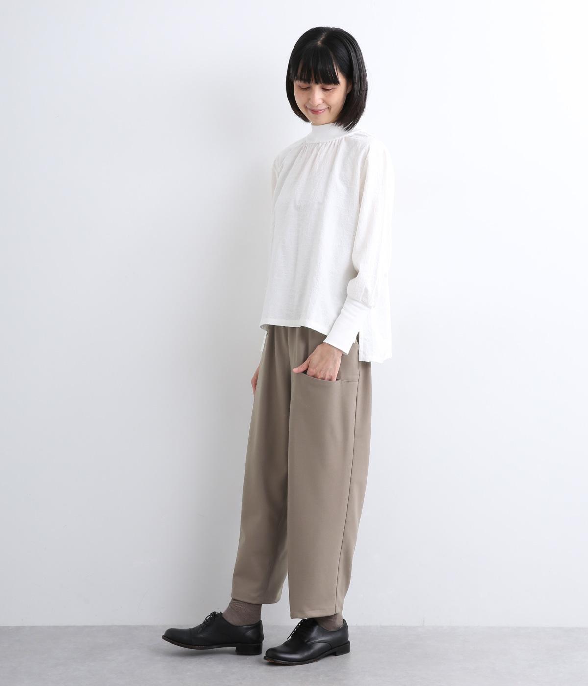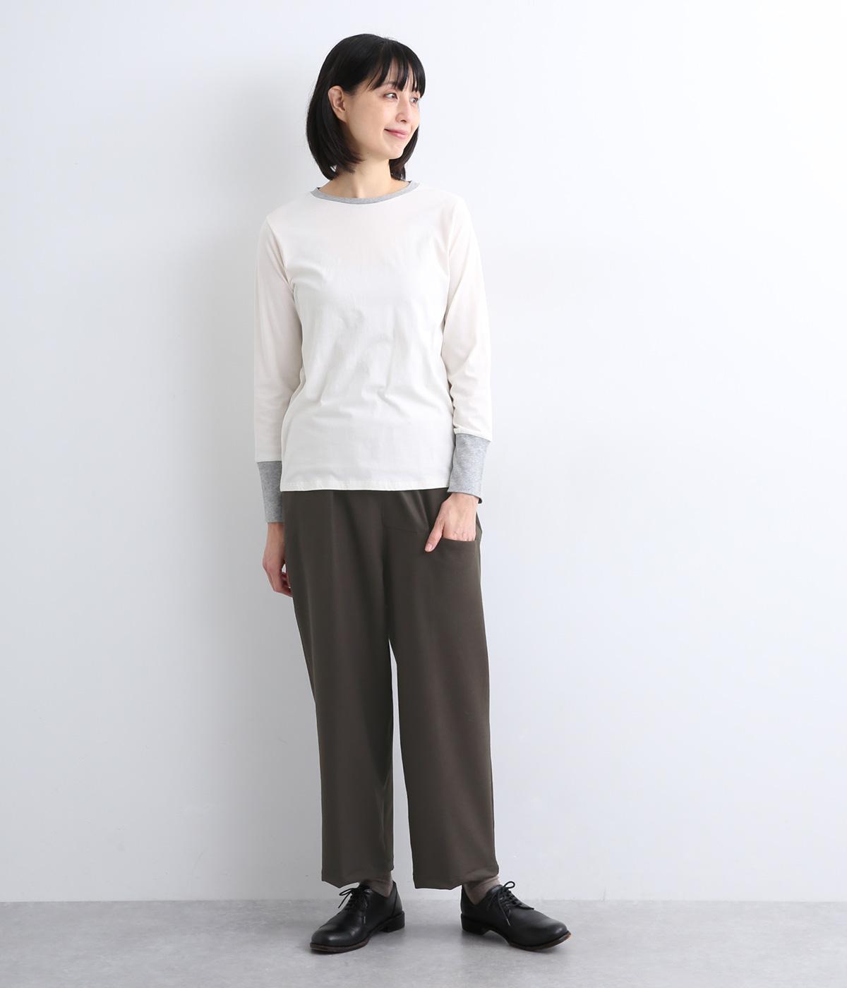 シンプルなシルエットに前ポケットをアクセントに添えたパンツ。落ち感のある素材で体のラインをひろいにくく、すっきりとした丈感がこなれ感を演出します。ウエストゴムでリラックスした穿き心地も魅力です。