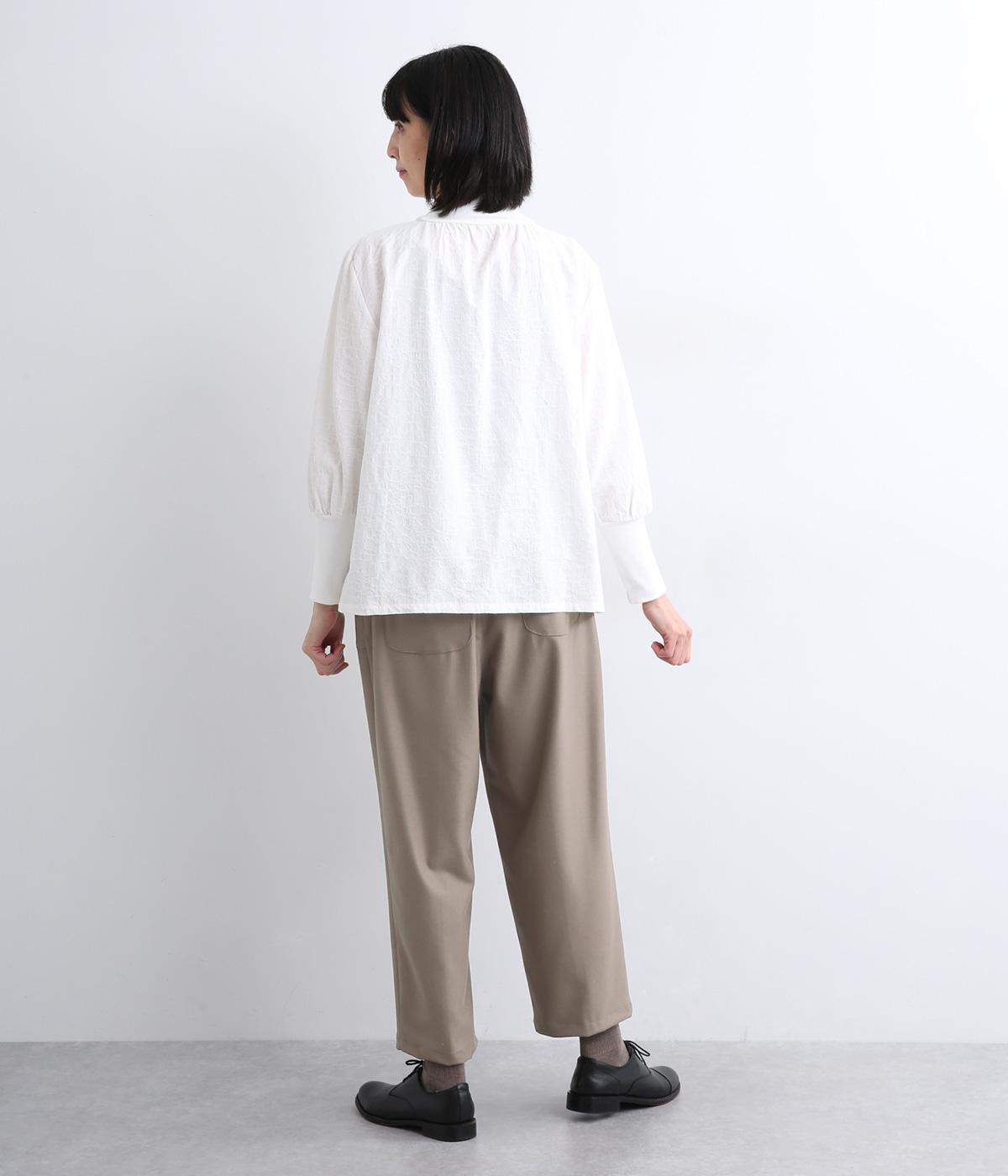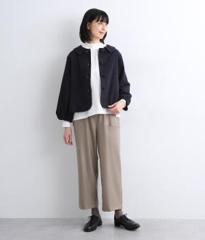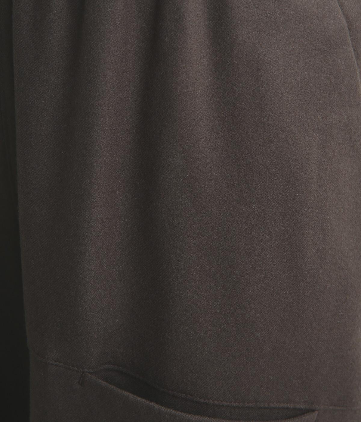 やわらかくとろみのある生地感です。ストンとした落ち感で品のある印象に仕上げています。起毛感がありあたたかみのある雰囲気が魅力の素材感です。