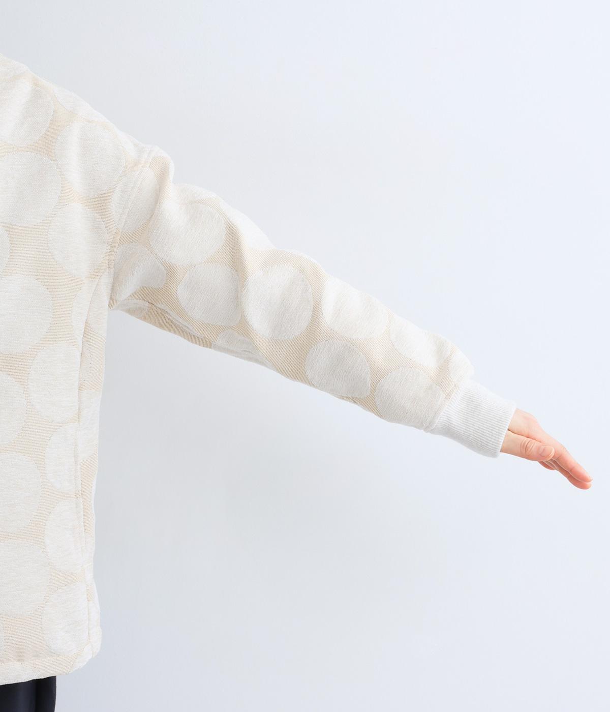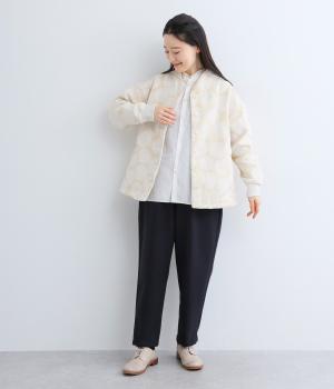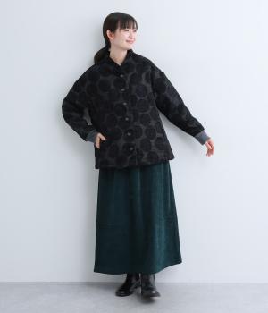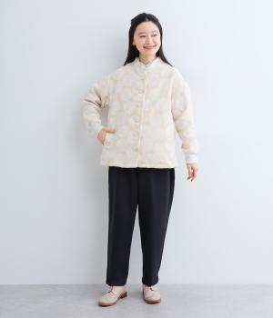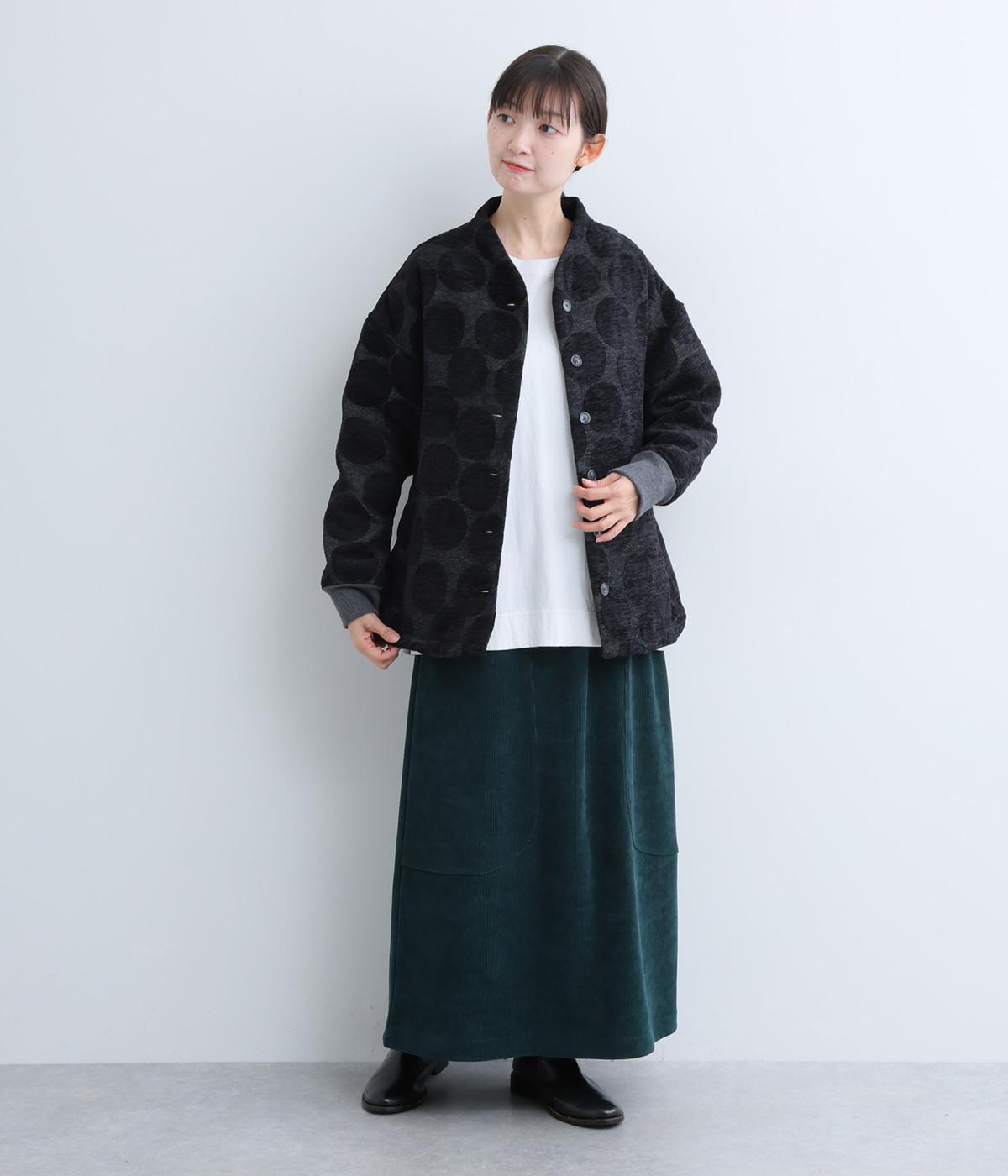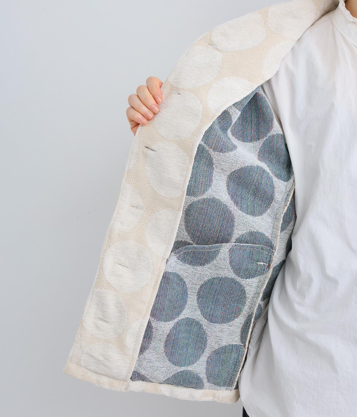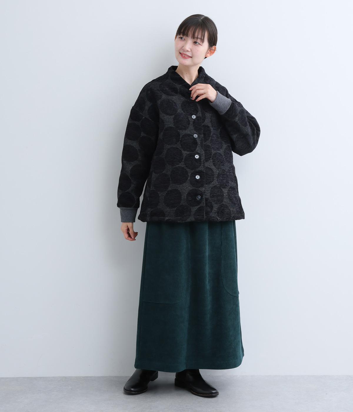 立体感のあるドット柄が目を引くジャケット。ベースと柄の色味が近いので、子どもっぽくならずに上品に着こなせます。きちんと感と女性らしさを両立させる、首元に沿うようにやや立ち上げた襟もポイント。カジュアルにもきれいめにも合わせられ、着こなしの主役になります。