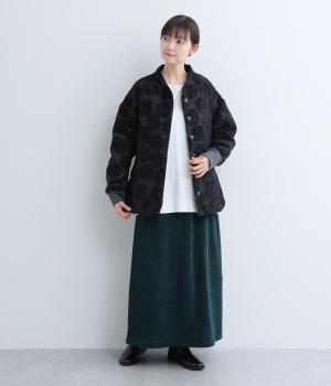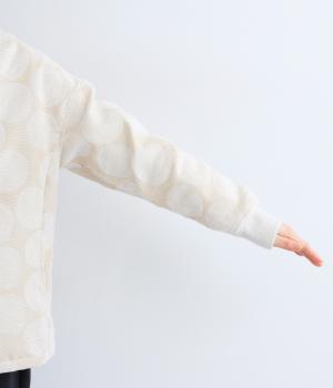 シェニール織りで表現した、表面に毛羽のあるドット柄が映える生地です。見た目はとても上品で、高級感たっぷり。密度高く織られたほどよい厚みで、あたたかさも備えています。