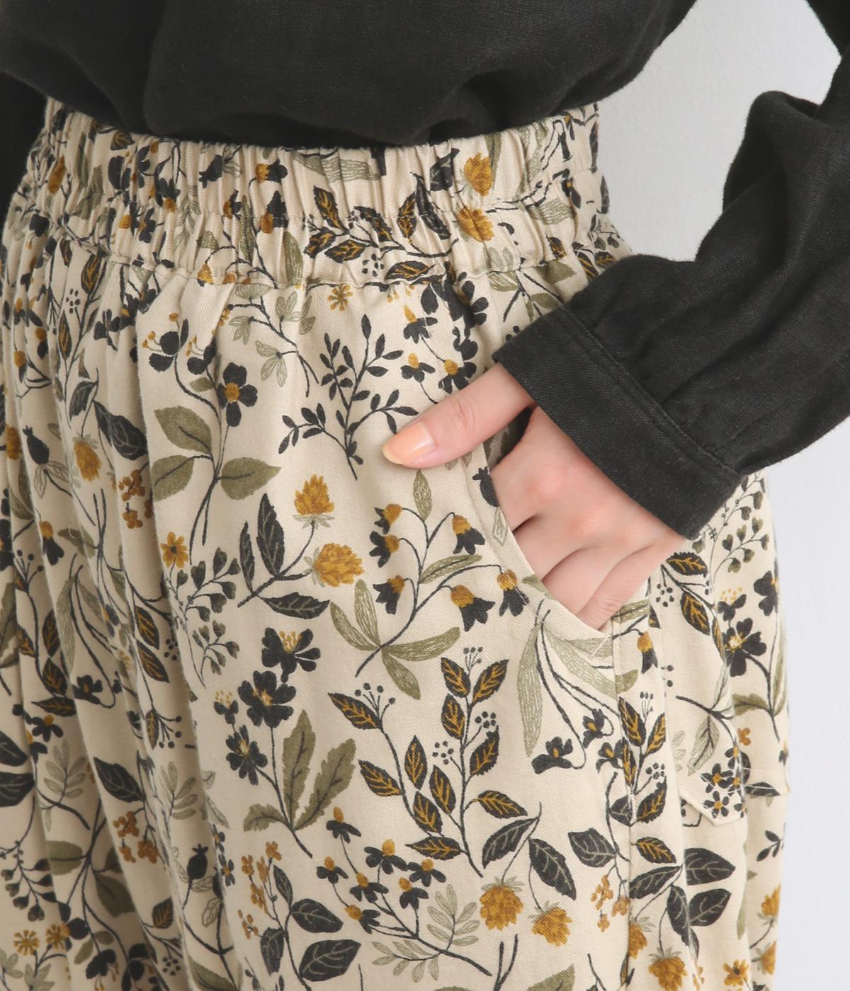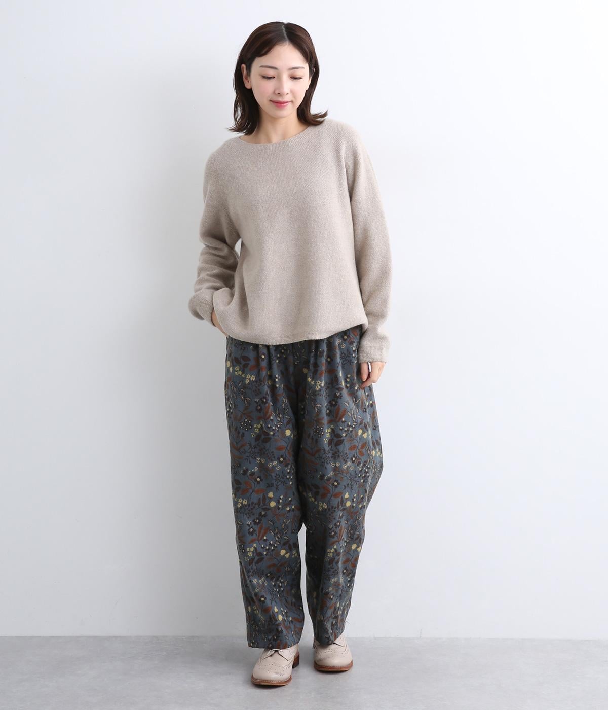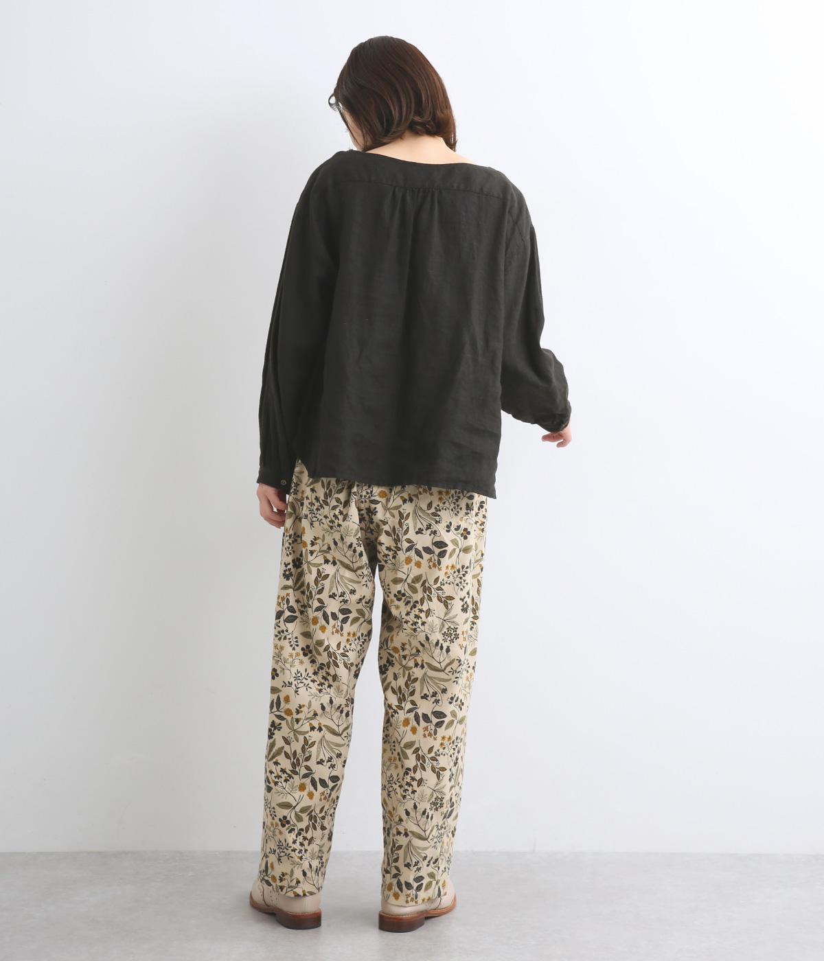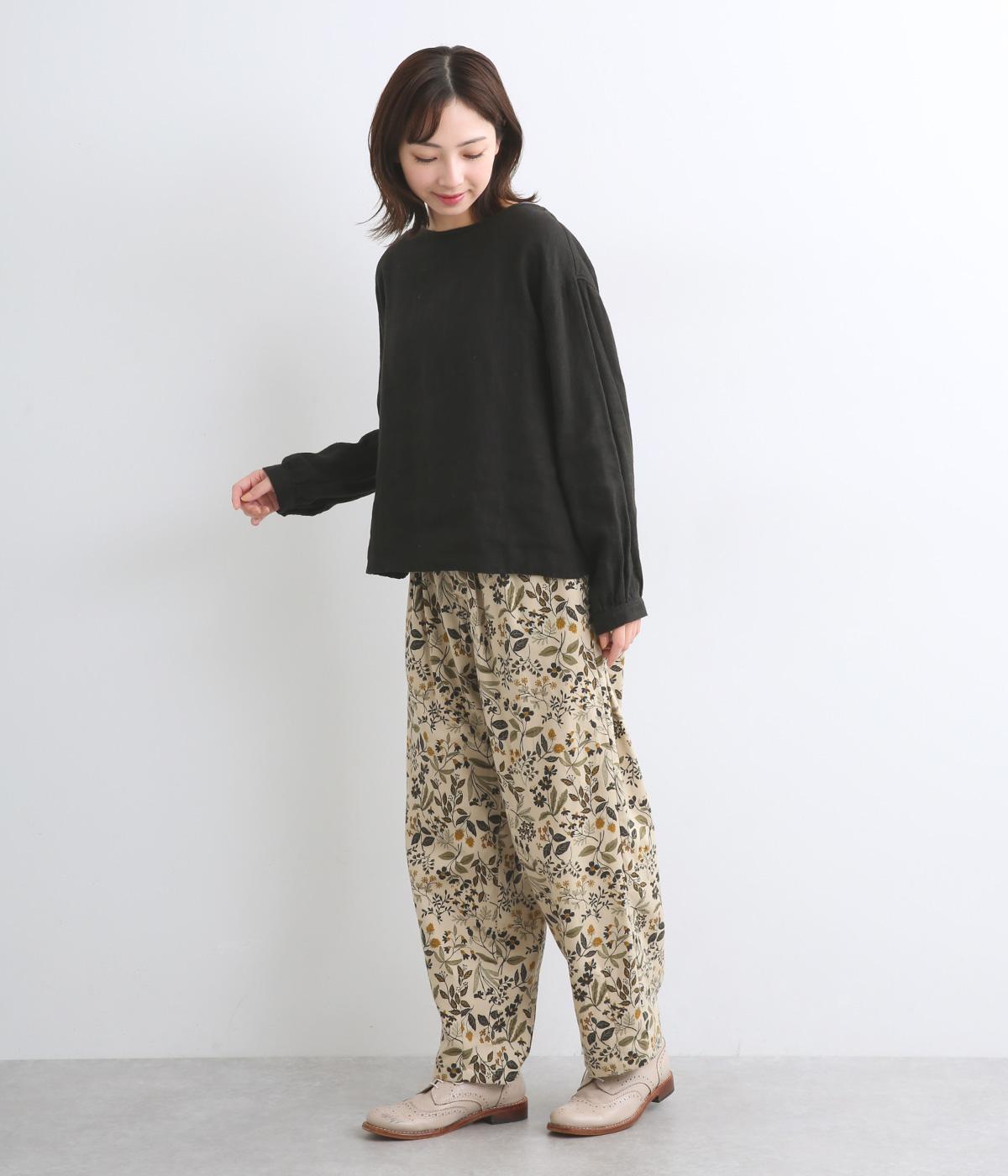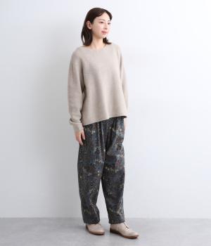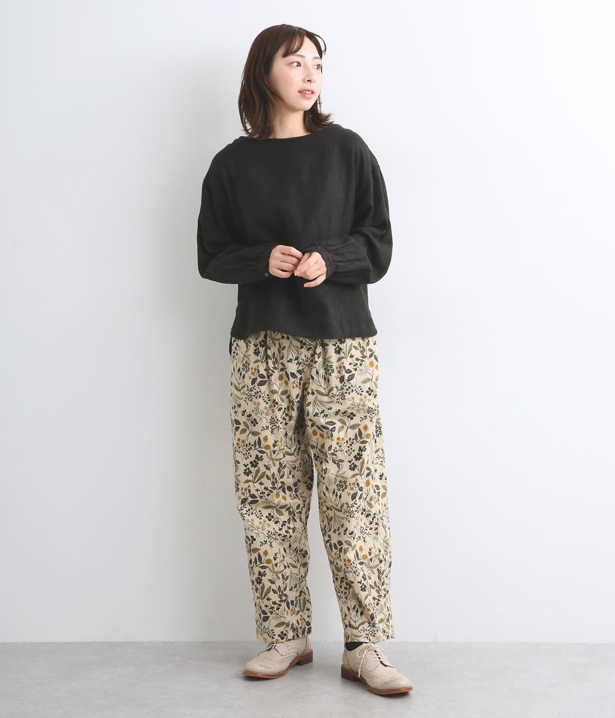 ゆとりのある腰まわりと裾に向かって細くなるペグトップパンツ。個性ある総柄をシックな雰囲気にまとめて、コーディネートに取り入れやすく仕上げました。ウエストは総ゴム使用で紐でサイズ調節が可能です。レイヤードアイテムとしてもおすすめです。