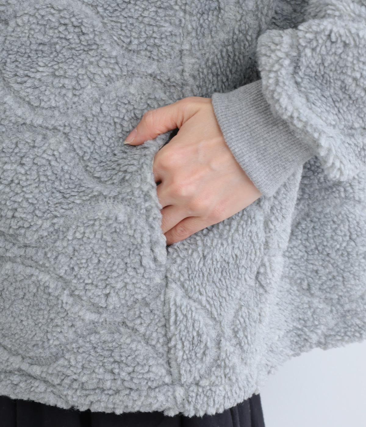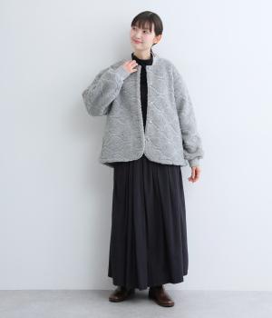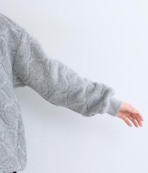 ふっくらとしたやわらかな毛並みが特徴のボア素材。見た目以上に軽く、空気をたっぷりと含んだあたたかな着心地を叶えてくれます。ステッチを入れて立体感のある柄を表現しました。