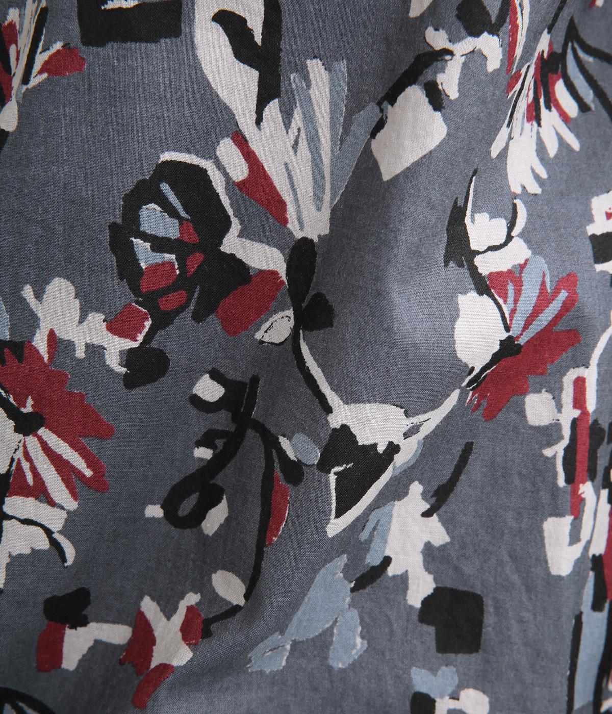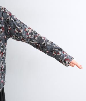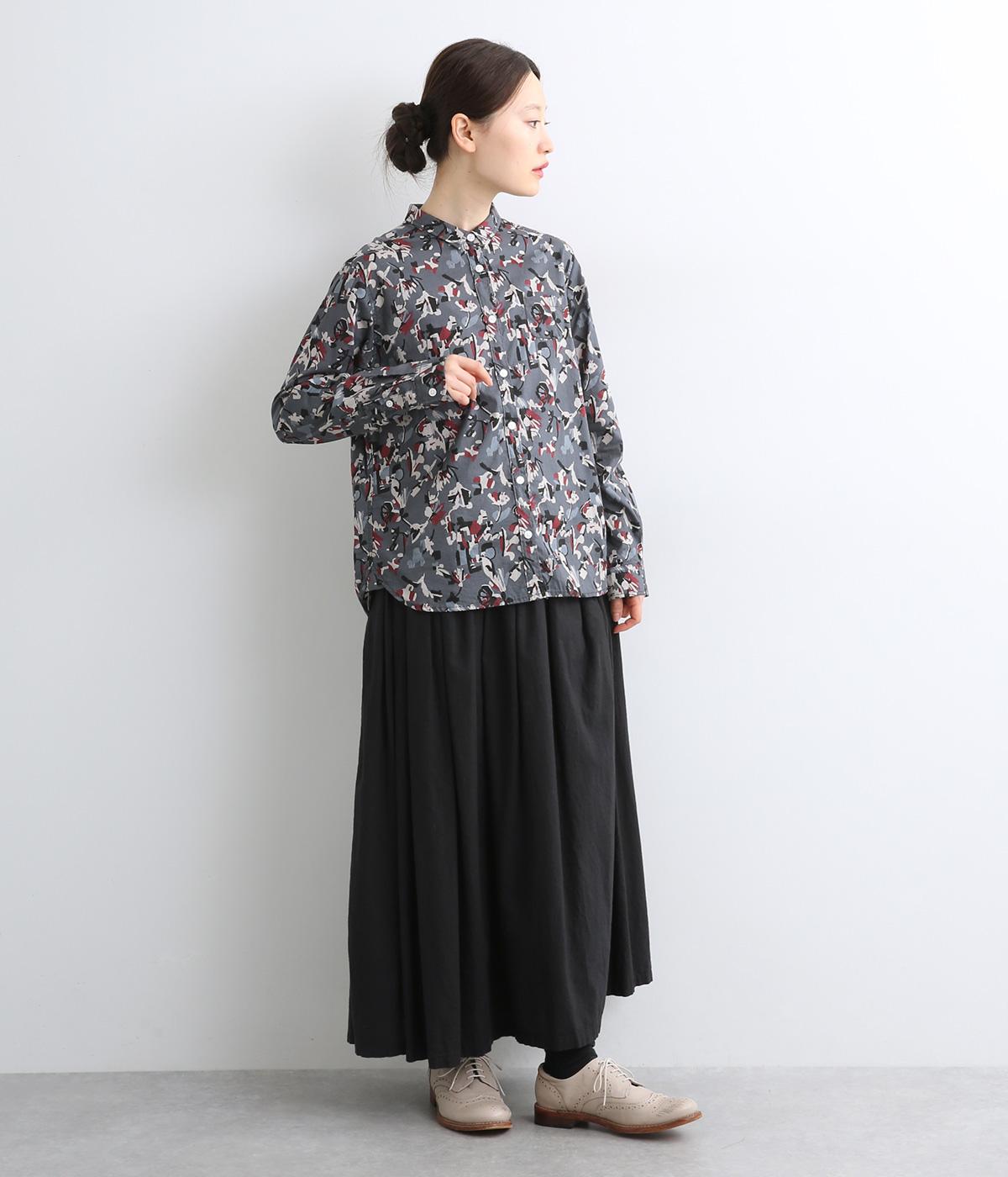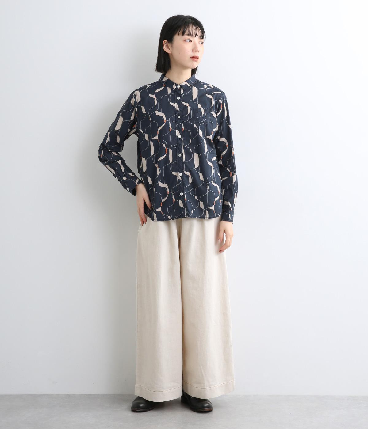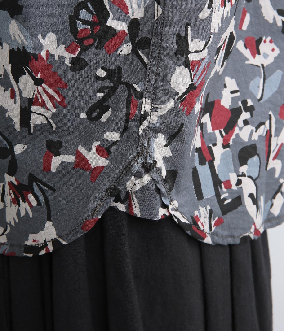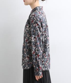 レトロな総柄プリントが着こなしのアクセントにぴったりなシャツです。柄をいかしたシンプルなシルエットは、ニットやスウェットのインナーとしても活躍します。胸元の小さなポケットもアクセントに。