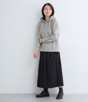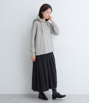やわらかく肌ざわりの良いふっくらとしたコットンミニ裏毛素材で仕上げました。肉厚すぎないので羽織りも合わせやすく、ロングシーズン着まわせます。