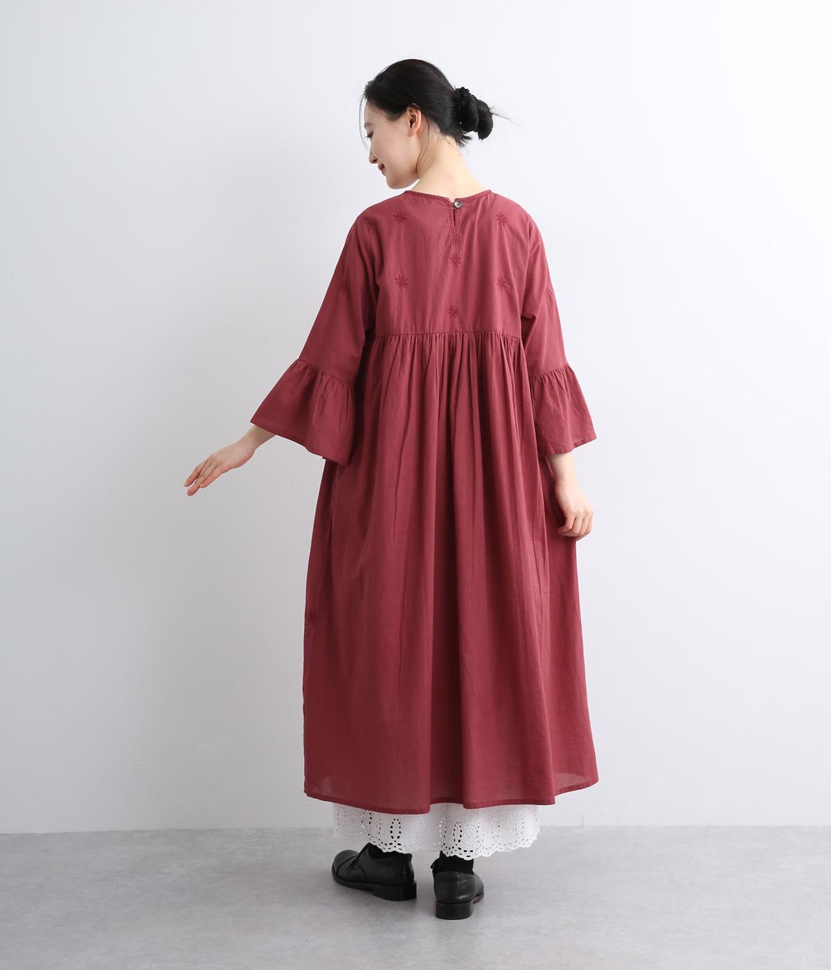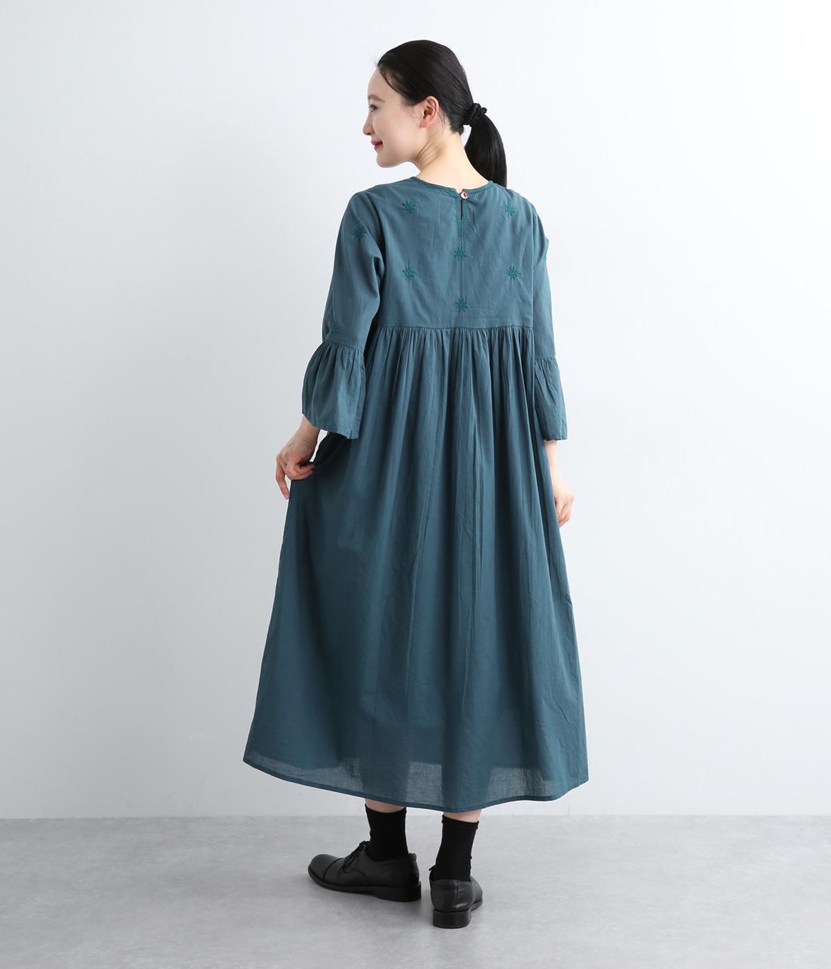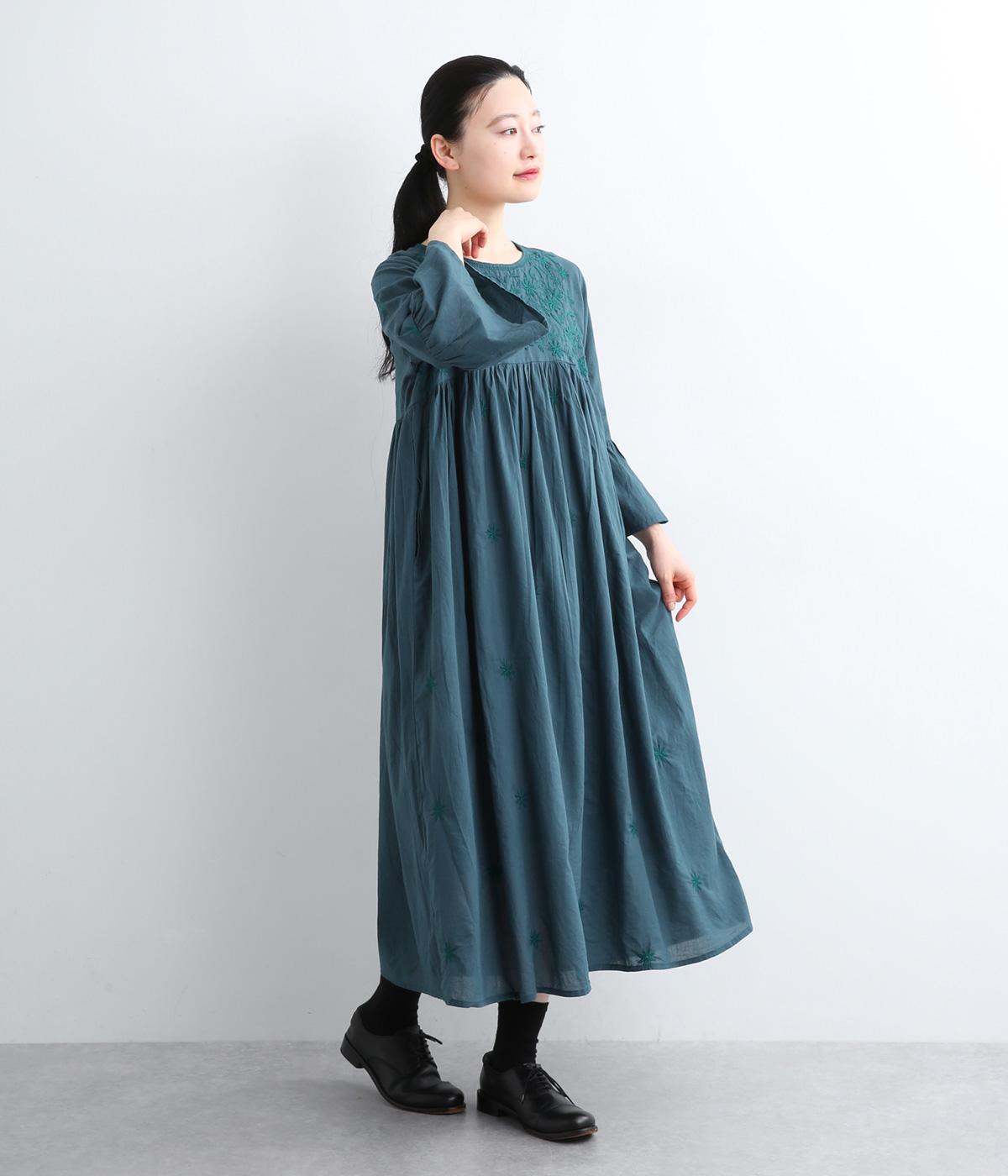 ヨーク下と袖に切り替えやギャザーを入れて、ふんわりとした女性らしいシルエットに仕上げたワンピース。刺しゅう色をベースと同色にすることで甘さをおさえ、着やすくしているのがポイントです。ネック後ろには着脱をアシストする涙開きをつけました。