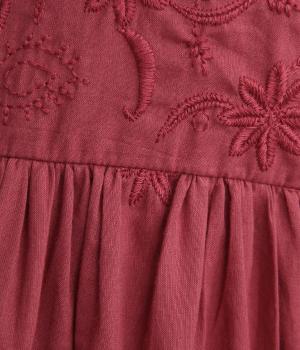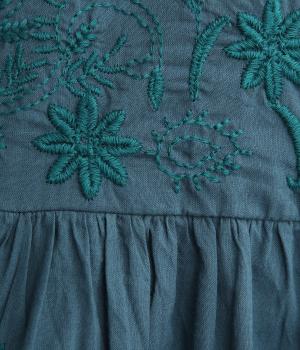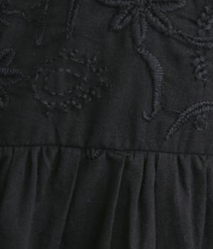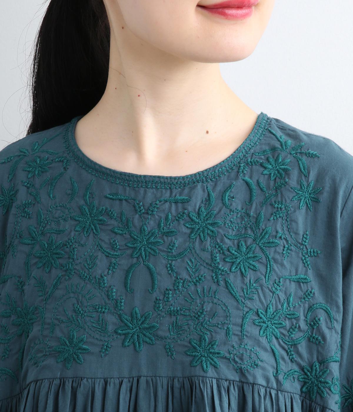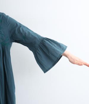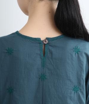 軽やかで通気性がよく、さらりとした心地よい肌触りのコットン生地。インドのラクノウ地方に古来から伝わる立体的で美しい手刺しゅうを、機械刺しゅうで再現しました。袖以外の部分に透け防止のコットン裏地をつけています。