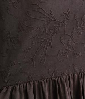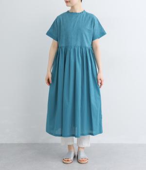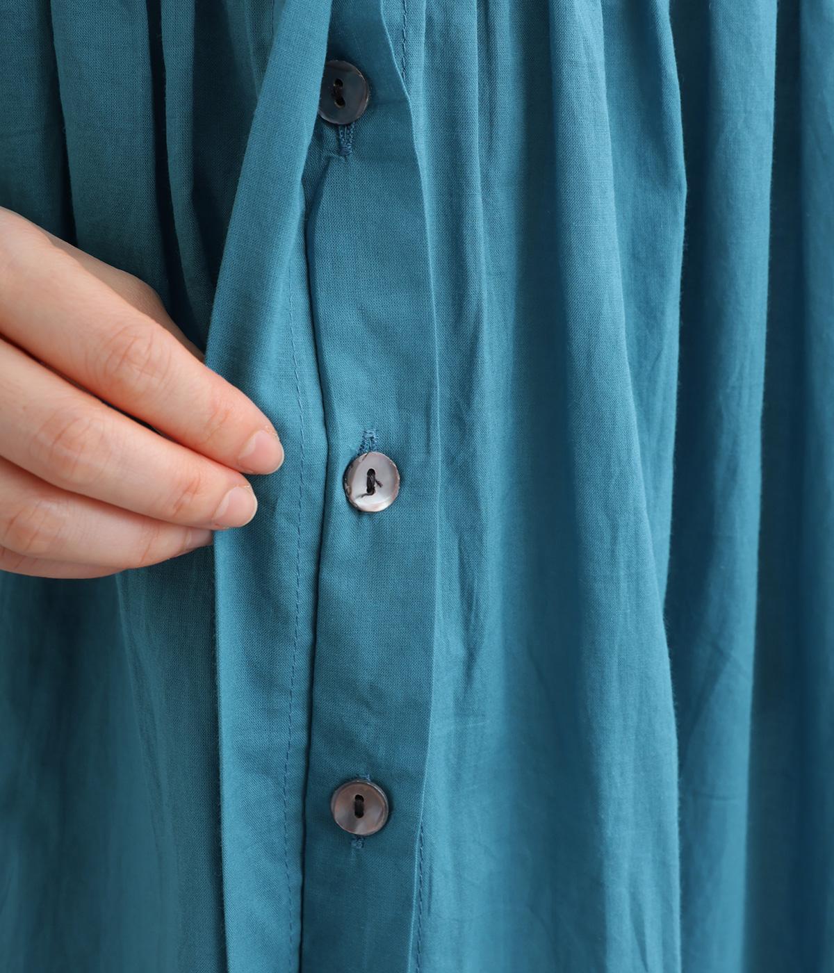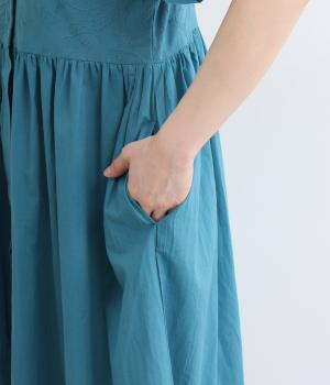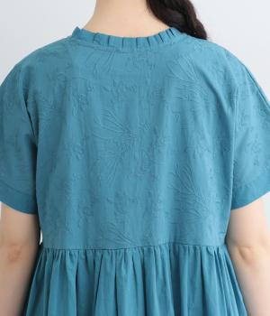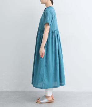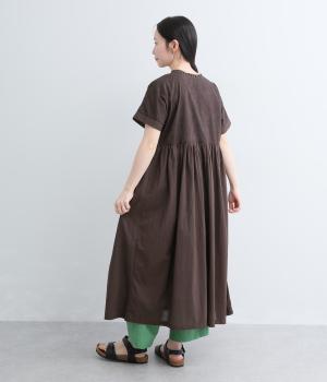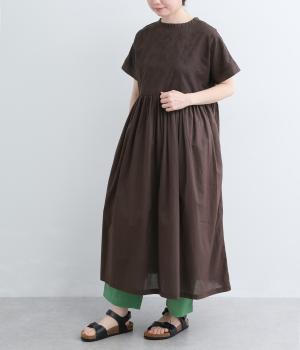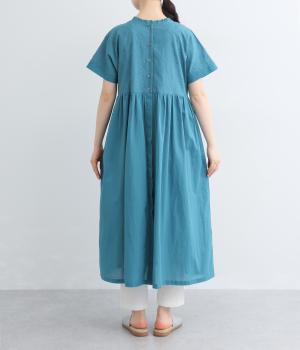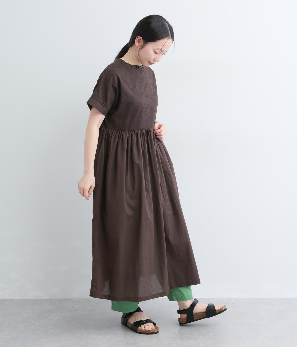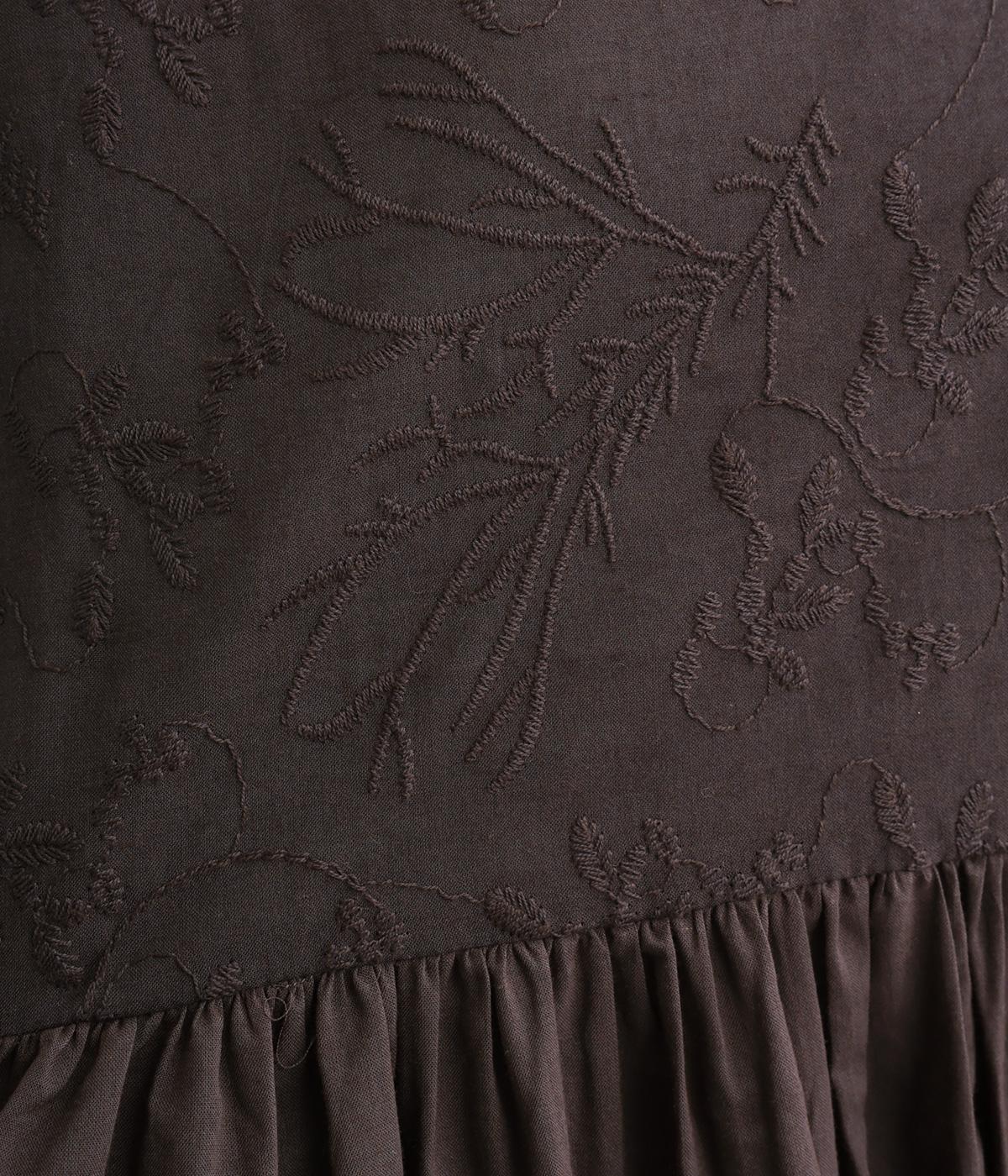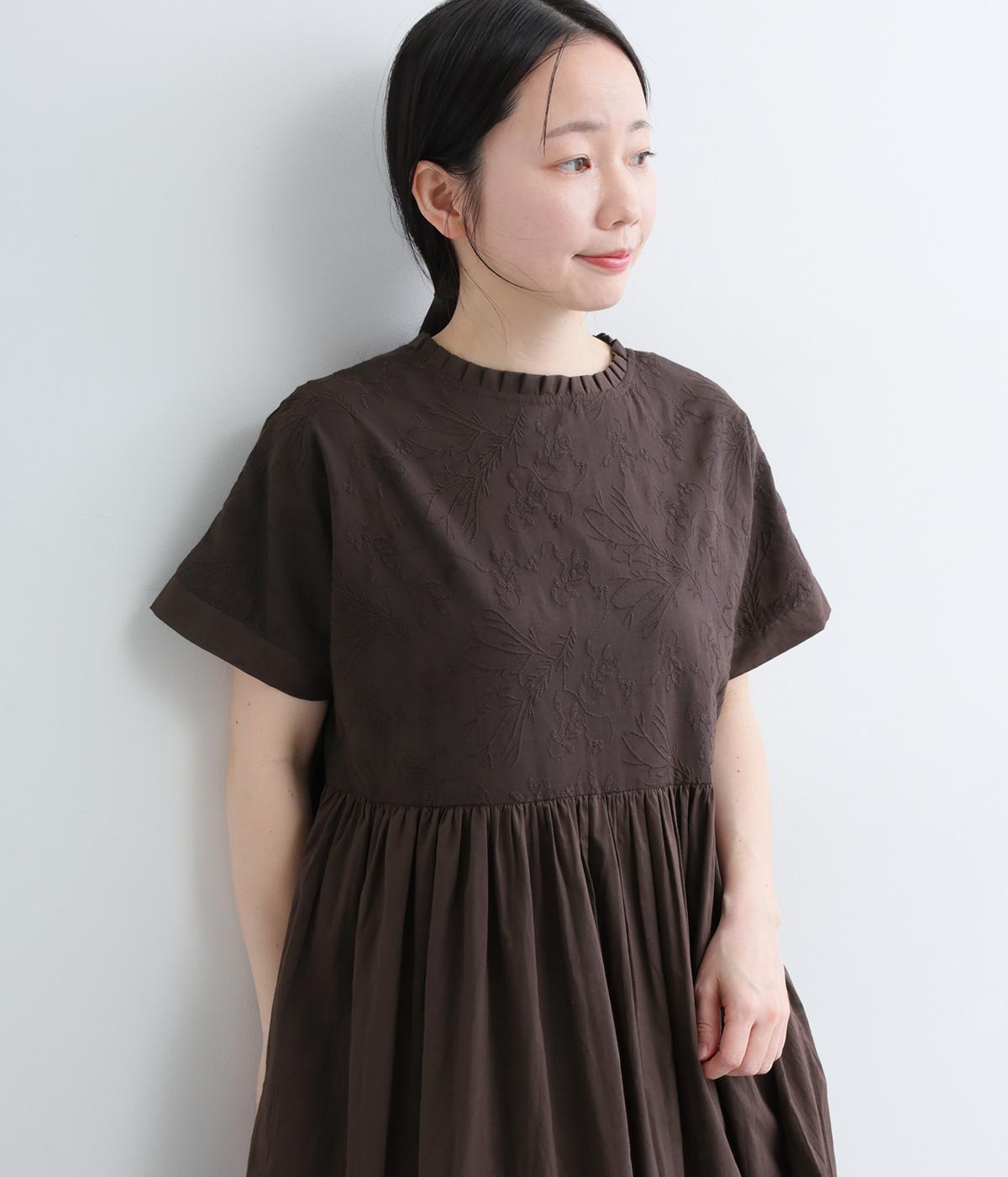前後2wayで着用でき、羽織りとしても活躍するワンピースです。落ち着いた色合いが繊細な刺しゅうを引き立て、大人のワードローブになじみます。手仕事の造形美をまとう、凛としてさわやかな佇まいの一枚です。