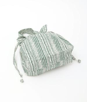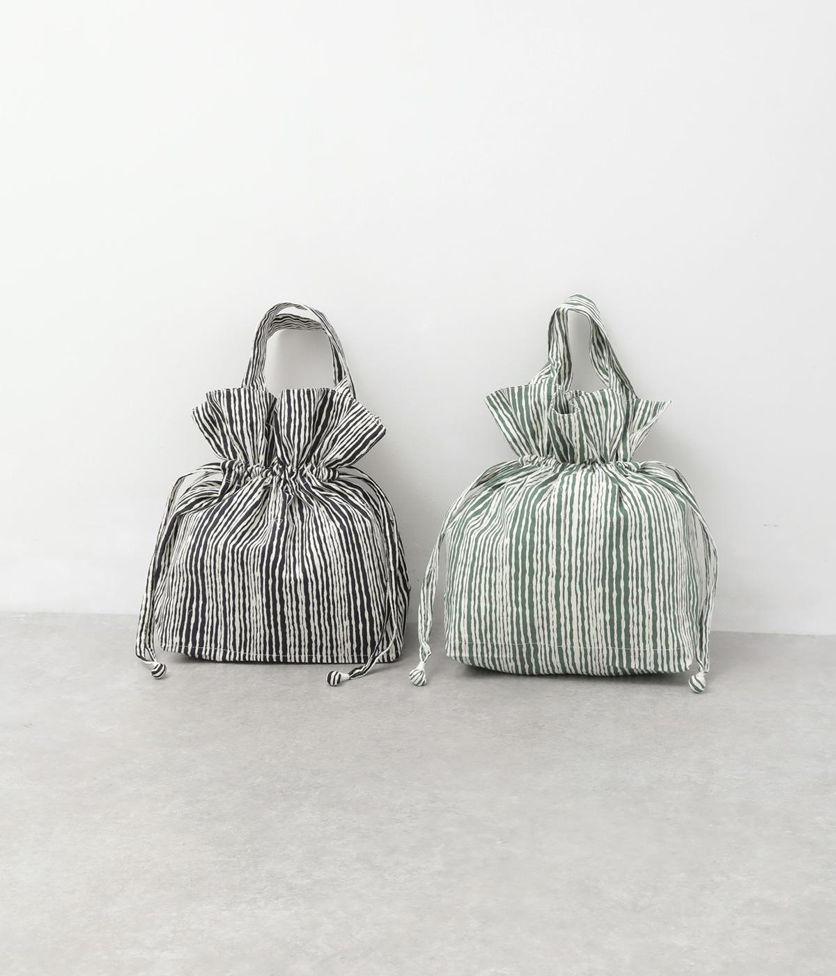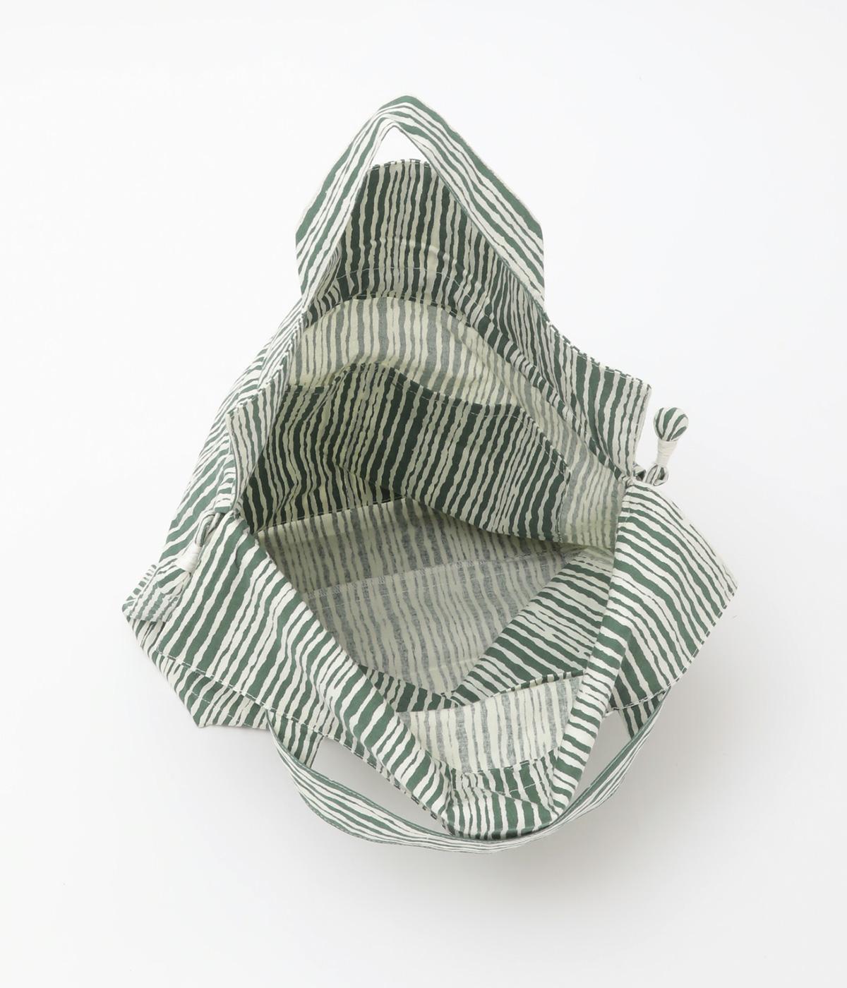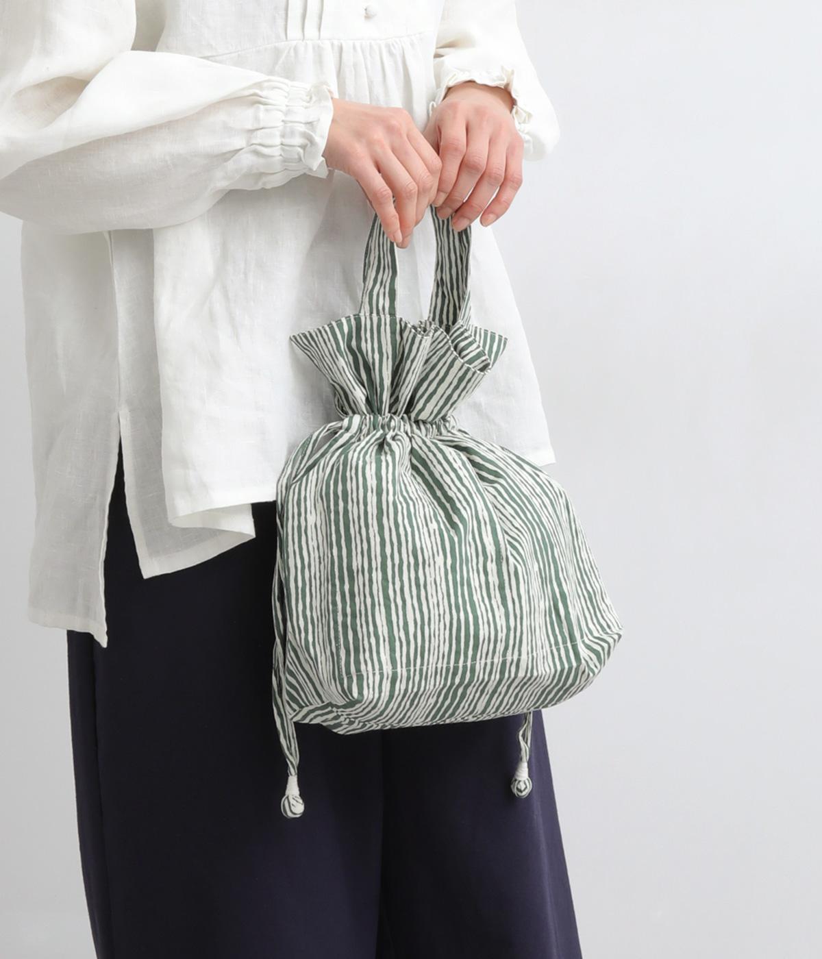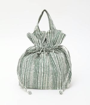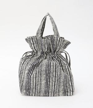 さわやかなストライプ柄にころんとした巾着フォルムがコーディネートのワンポイントに。口を開いてシンプルなトートバッグにしたり、かごバッグなどのインナーにしたりマルチに活躍。ポケットも豊富で小ぶりながら使い勝手抜群。