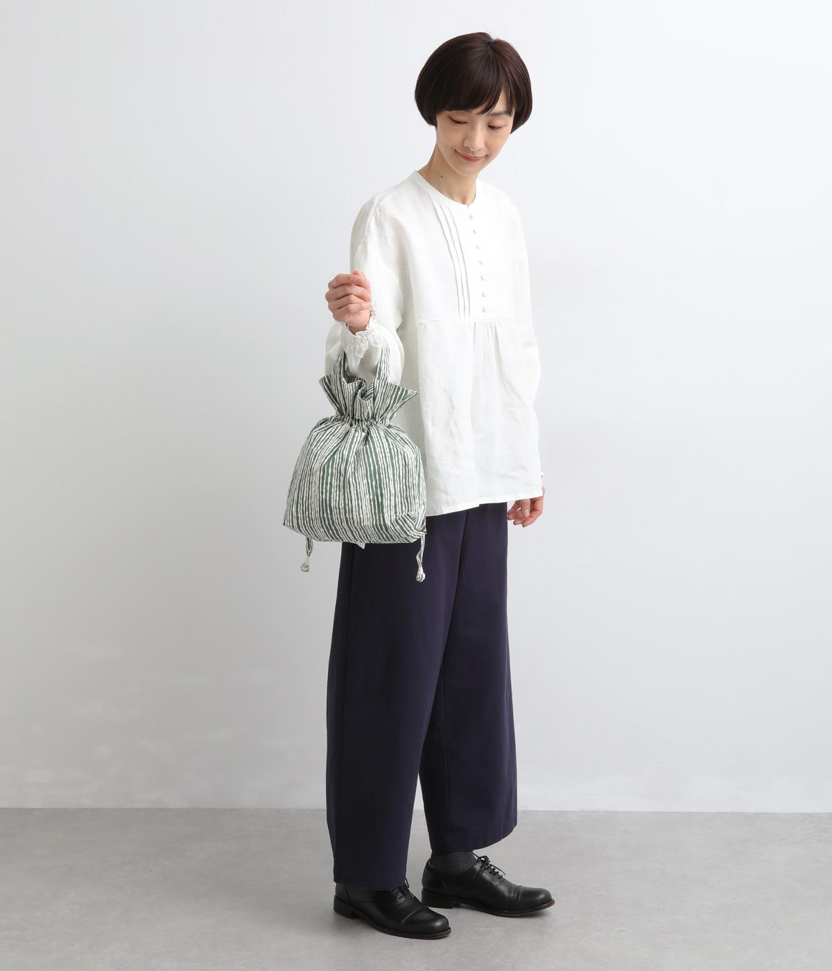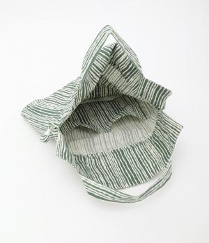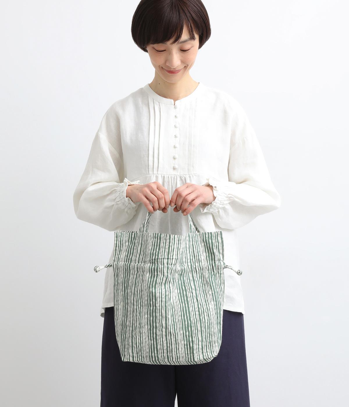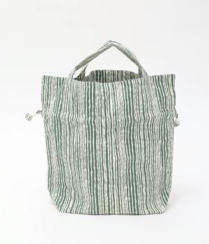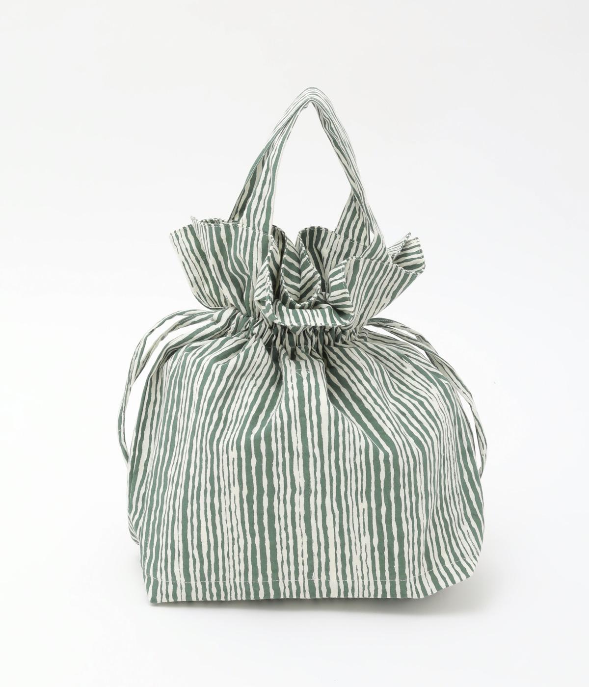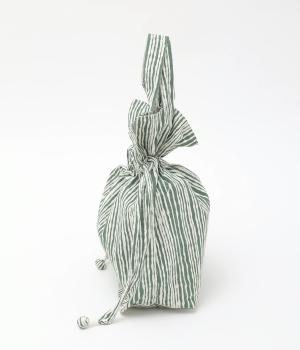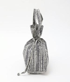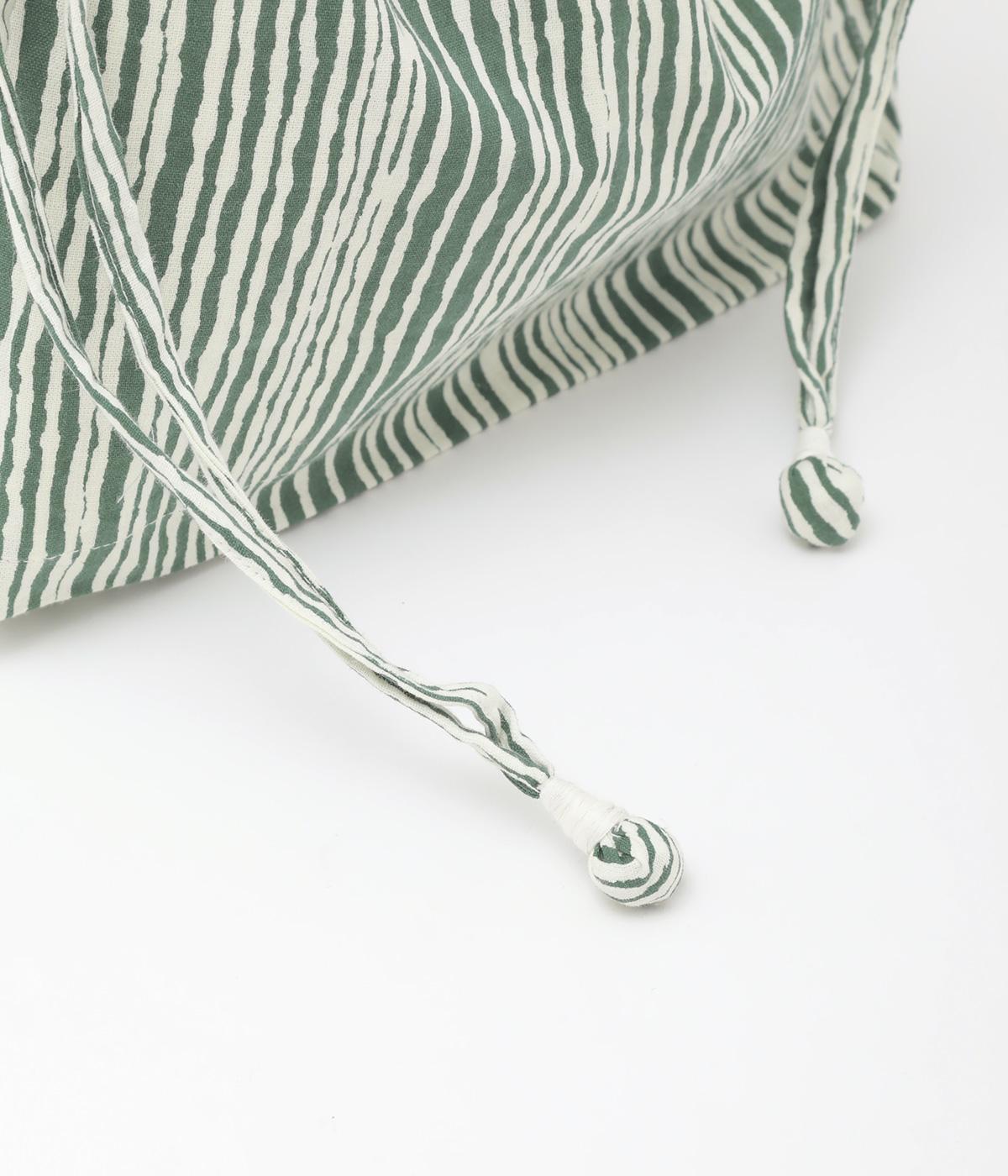 さわやかなストライプ柄にころんとした巾着フォルムがコーディネートのワンポイントに。口を開いてシンプルなトートバッグにしたり、かごバッグなどのインナーにしたりマルチに活躍。ポケットも豊富で小ぶりながら使い勝手抜群。