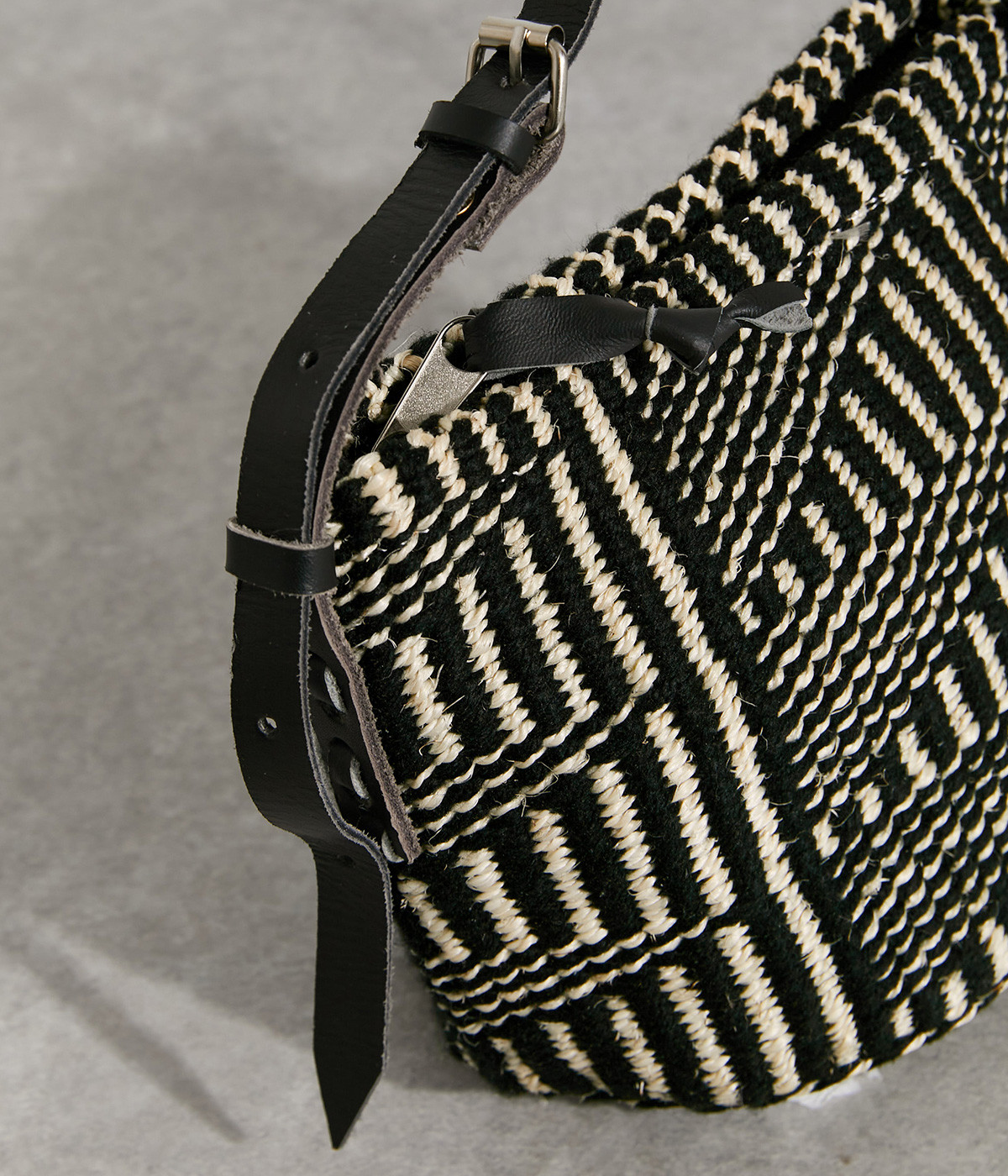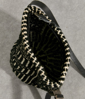 ナチュラルな編み込み模様が特徴のショルダーバッグです。モノトーンカラーでコーディネートに合わせやすく、柔らかいレザーのショルダーストラップがアクセントに。シンプルながらもエレガントな印象で、日常使いにぴったりの一品です。